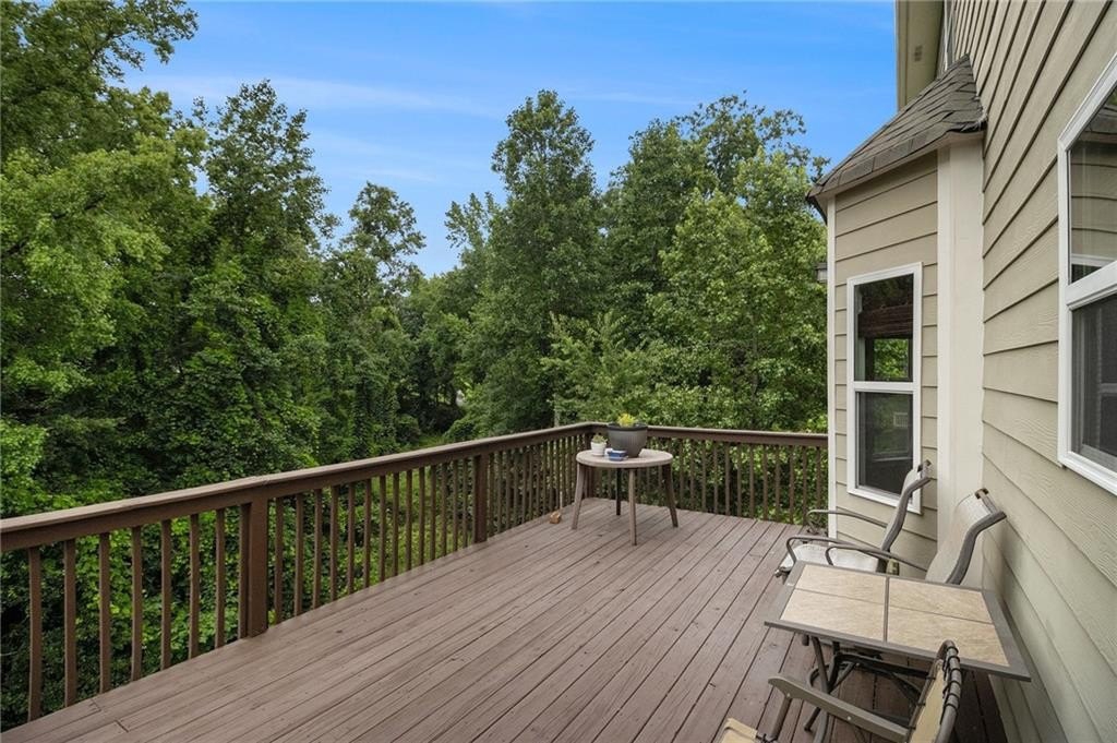Beautifully maintained home on a FULL BASEMENT with a double deck, across from the community amenities, and in the highly desired Forsyth County school district offering the perfect blend of classic finishes and spacious living. From the inviting curb appeal of the brick and cedar shaker accents, two car separate garage doors, and established landscaping, to the open-concept interior, this residence is ideal for both everyday life and entertaining. Inside, you're greeted by a two-story foyer with a wrought iron spindle staircase and views into open floorplan. Large windows, updated flooring as well as formal living and dining rooms. The heart of the home features an eat-in kitchen equipped with granite countertops, center island, and plenty of cabinet space flowing seamlessly into a spacious family room with a cozy fireplace. Enjoy morning coffee or dine under the stars for an easy indoor/outdoor living experience on the main level deck. Upstairs, you'll find generously sized bedrooms, including a spacious primary suite with a walk-in closet and an en-suite bath complete with a double vanity, soaking tub, and separate shower. Need more space? The home includes a full unfinished basement, offering endless possibilities for future expansion ADDING INSTANT EQUITY!! Imagine adding a fun entertainment space with billiards, maybe a media room, or even an apartment for multi-generational living. Basement also has great storage and a covered deck with stairs that lead to the backyard with a wooded backdrop for a private feel. Situated in a welcoming community with a pool and shallow tanning ledge, convenient to shopping, dining, and major highways making your daily routine both easy and enjoyable. Don't miss the opportunity to own this stylish and spacious home in one of the area's most sought-after neighborhoods!