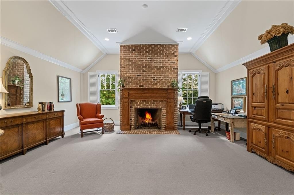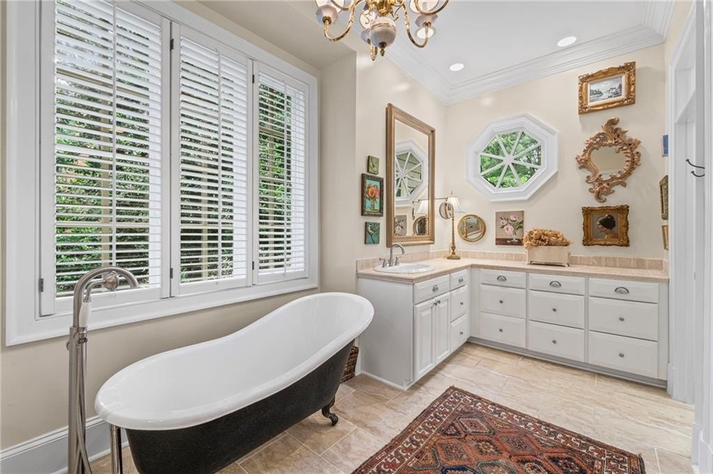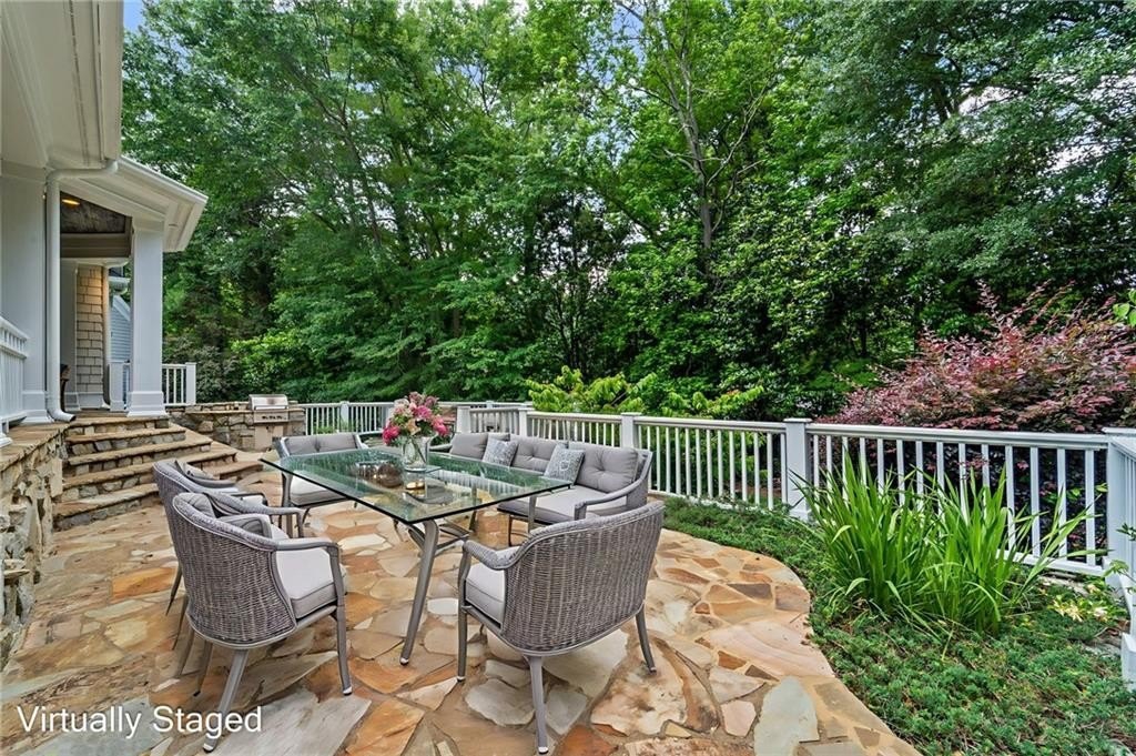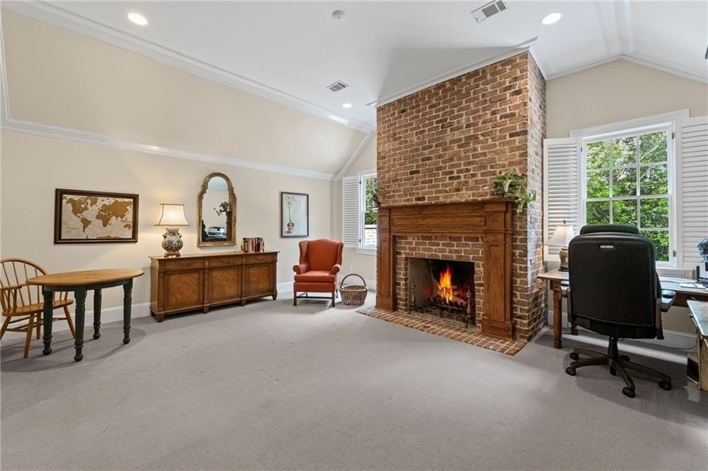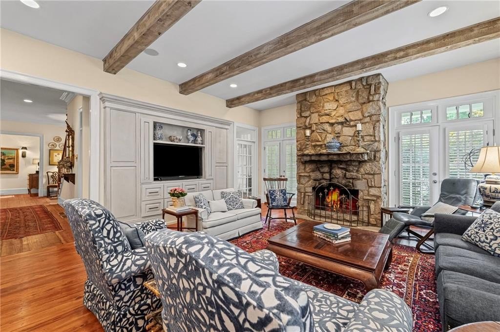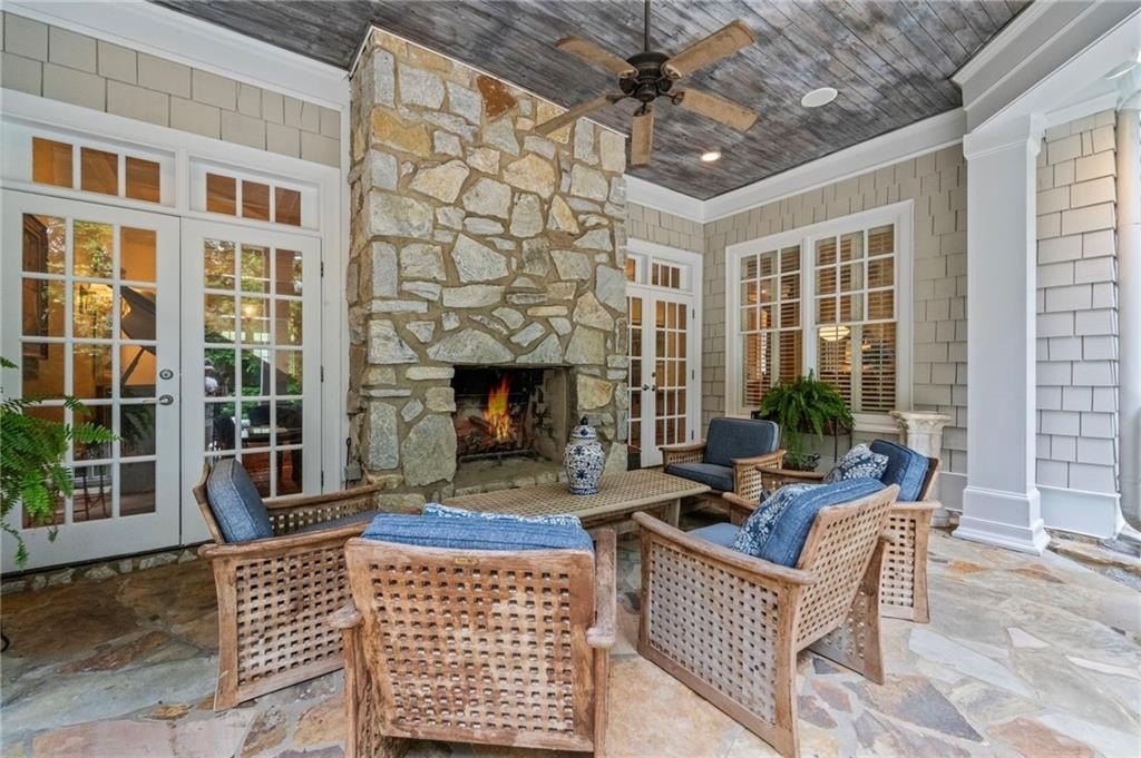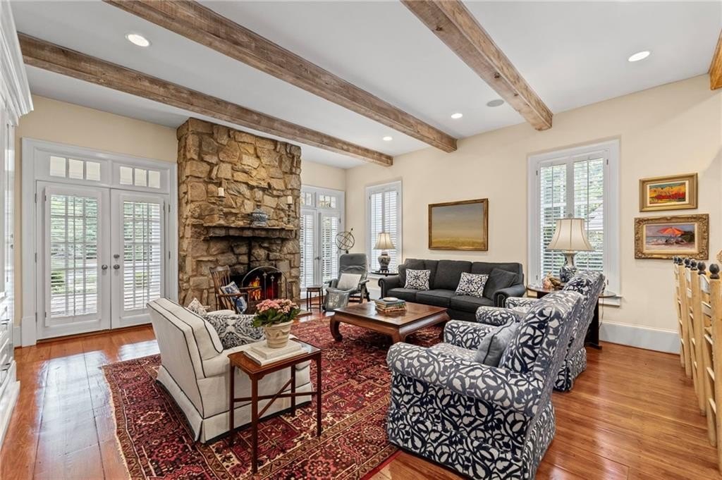 Welcome to an exceptional living experience, where timeless Southern charm seamlessly meets refined New England elegance. Nestled in the exclusive Bailey Estates neighborhood, this custom-built home has over 8000 sq. ft. 6 bedrooms and 7 bathrooms, and is set on a private 1.2-acre cul-de-sac lot. Included with this home is an 880 sq. ft. space, with split HVAC system, above the garage, that can be utilized as a studio, office, or an additional 7th bedroom complete with a full bath bringing the total number of baths to 7. The allure of a home often begins with the first glance, and this particular home does not disappoint. The exterior facade, adorned with a blend of stone and cedar shake siding, sets the tone for a residence that exudes both elegance and warmth. As you approach the entryway, the front porch extends a warm welcome. Upon entering the home, you are greeted by the stone floor in the foyer which is a testament to the craftmanship and character throughout. This home offers spacious, light-filled living areas featuring 12-foot ceilings, custom moldings, wide-plank heart pine floors and 6 fireplaces. To the right of the foyer is a library/study perfect for reading and relaxing. To the left is the dining room which seats 12 comfortably making it the perfect spot for intimate gatherings or extravagant dinner parties. As you continue inside the home, you find an elegant living room with coffered ceilings, fireplace and french doors leading outside to the stone patio complete with a cozy outdoor fireplace perfect for cool fall evenings. The heart of the home boasts a chef's kitchen designed for both functionality and design with dual islands, a sub-zero refrigerator, dual dishwashers, maple wood cabinets, a copper apron sink and walk in pantry. Enjoy an open view of the family room with a beamed ceiling, custom cabinetry, and a stone fireplace, for intimate gatherings. The breakfast room highlights beautiful hanging light pendants, plenty of space and overlooks a private backyard. The oversized primary bedroom on the main floor features coffered ceilings, lots of natural light and a spa-inspired ensuite with a soaking tub, separate shower, dual vanities and two large walk-in closets. Upon entering from the garage and through the covered breezeway/portico, you are greeted by a spacious laundry room equipped with a sink and can accomodate extra refrigerator adding to the overall efficiency of the home. The powder room is designed with style and convenience in mind, blending effortlessly into the main level's aesthetic. Take the stairs to the upper level where you'll find an open landing adorned with built-in bookcases. This floor boasts four generously sized bedrooms, each featuring a private bath to ensure both comfort and privacy. A media/study room with a wood-burning fireplace provides a serene space for work or relaxation. The expansive terrace level features a vast entertainment space, two additional flex rooms, a bedroom, full bath, and ample storage completing this versatile level, offering endless possibilities for customization. The terrace level seamlessly flows to the outdoors, featuring a walk-out stone patio and a private yard. Additional highlights include a spacious three car garage, recent house painting inside and out, repaved driveway, refinished kitchen floors and an irrigation system. Great location near Dunwoody Country Club, premier shopping and dining. Don't miss the opportunity to call this home!
