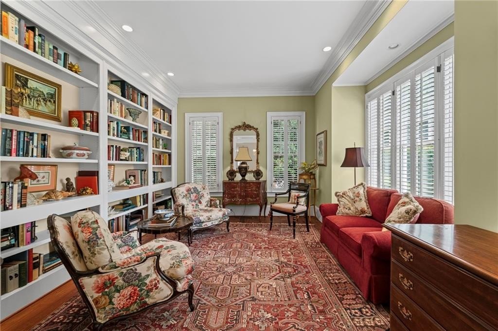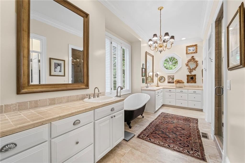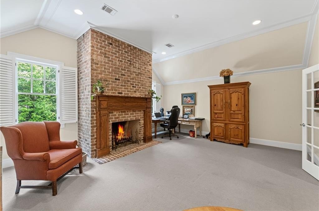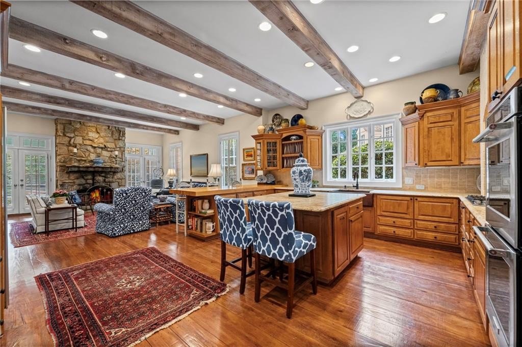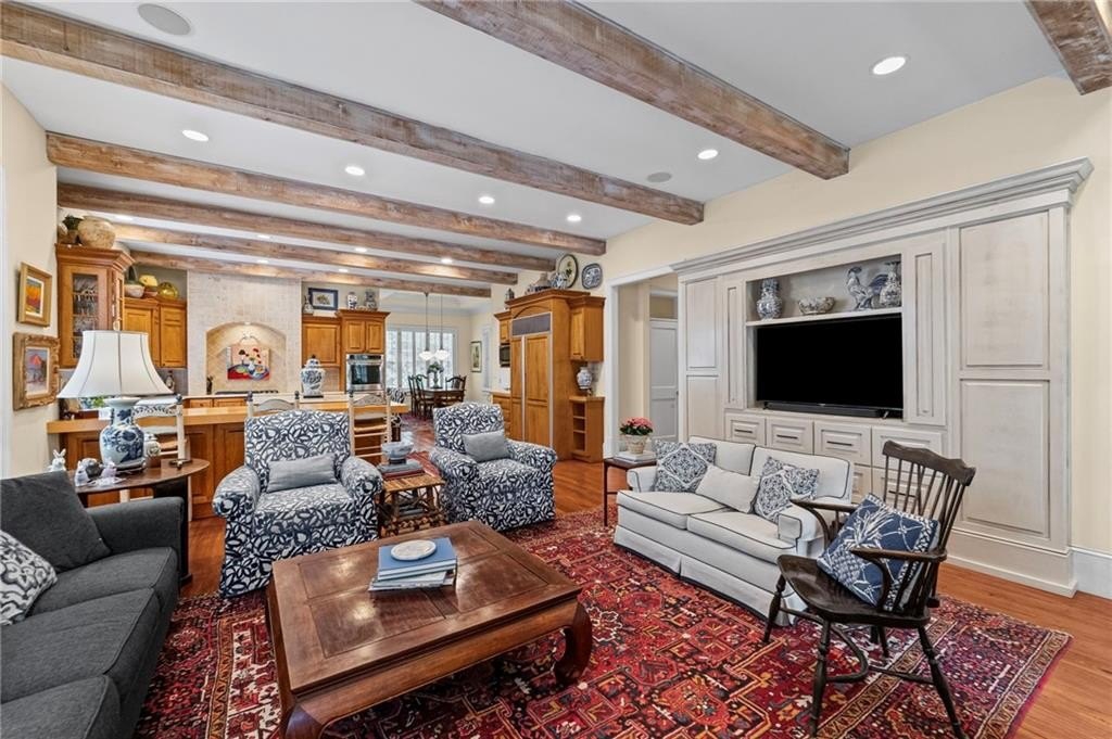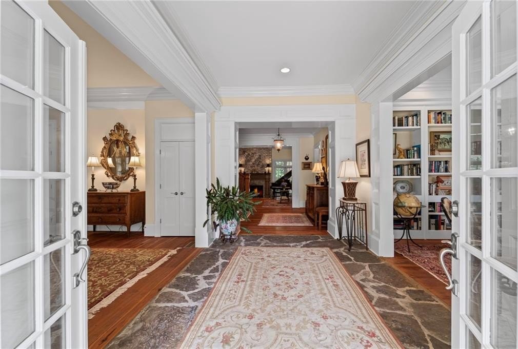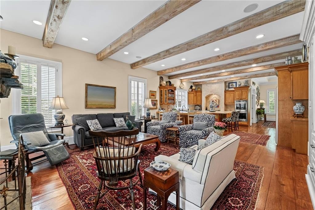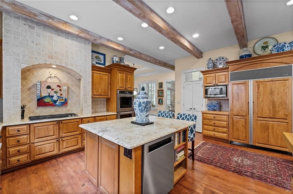 Welcome to an exceptional living experience, where timeless Southern charm seamlessly meets refined New England elegance. Nestled in the exclusive Bailey Estates neighborhood, this custom-built home has over 8000 sq. ft. 6 bedrooms and 7 bathrooms, and is set on a private 1.2-acre cul-de-sac lot. Included with this home is an 880 sq. ft. space, with split HVAC system, above the garage, that can be utilized as a studio, office, or an additional 7th bedroom complete with a full bath bringing the total number of baths to 7. The allure of a home often begins with the first glance, and this particular home does not disappoint. The exterior facade, adorned with a blend of stone and cedar shake siding, sets the tone for a residence that exudes both elegance and warmth. As you approach the entryway, the front porch extends a warm welcome. Upon entering the home, you are greeted by the stone floor in the foyer which is a testament to the craftmanship and character throughout. This home offers spacious, light-filled living areas featuring 12-foot ceilings, custom moldings, wide-plank heart pine floors and 6 fireplaces. To the right of the foyer is a library/study perfect for reading and relaxing. To the left is the dining room which seats 12 comfortably making it the perfect spot for intimate gatherings or extravagant dinner parties. As you continue inside the home, you find an elegant living room with coffered ceilings, fireplace and french doors leading outside to the stone patio complete with a cozy outdoor fireplace perfect for cool fall evenings. The heart of the home boasts a chef's kitchen designed for both functionality and design with dual islands, a sub-zero refrigerator, dual dishwashers, maple wood cabinets, a copper apron sink and walk in pantry. Enjoy an open view of the family room with a beamed ceiling, custom cabinetry, and a stone fireplace, for intimate gatherings. The breakfast room highlights beautiful hanging light pendants, plenty of space and overlooks a private backyard. The oversized primary bedroom on the main floor features coffered ceilings, lots of natural light and a spa-inspired ensuite with a soaking tub, separate shower, dual vanities and two large walk-in closets. Upon entering from the garage and through the covered breezeway/portico, you are greeted by a spacious laundry room equipped with a sink and can accomodate extra refrigerator adding to the overall efficiency of the home. The powder room is designed with style and convenience in mind, blending effortlessly into the main level's aesthetic. Take the stairs to the upper level where you'll find an open landing adorned with built-in bookcases. This floor boasts four generously sized bedrooms, each featuring a private bath to ensure both comfort and privacy. A media/study room with a wood-burning fireplace provides a serene space for work or relaxation. The expansive terrace level features a vast entertainment space, two additional flex rooms, a bedroom, full bath, and ample storage completing this versatile level, offering endless possibilities for customization. The terrace level seamlessly flows to the outdoors, featuring a walk-out stone patio and a private yard. Additional highlights include a spacious three car garage, recent house painting inside and out, repaved driveway, refinished kitchen floors and an irrigation system. Great location near Dunwoody Country Club, premier shopping and dining. Don't miss the opportunity to call this home!