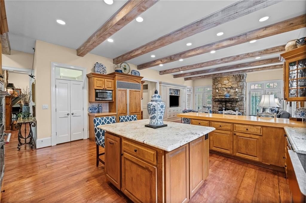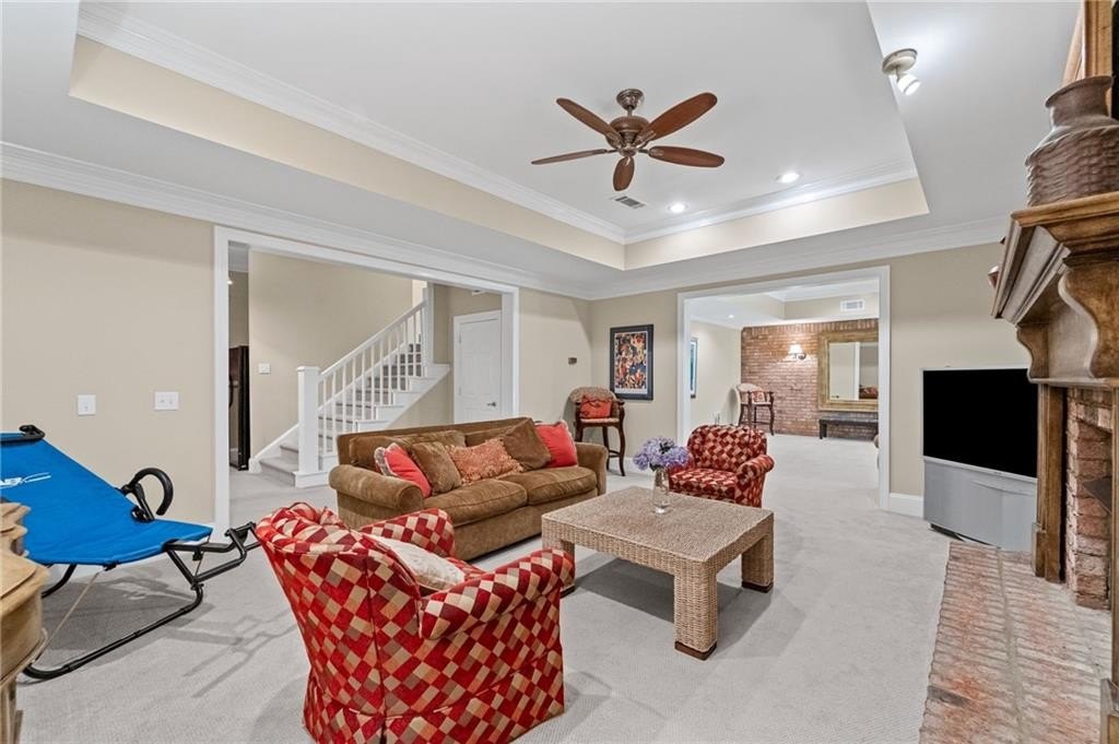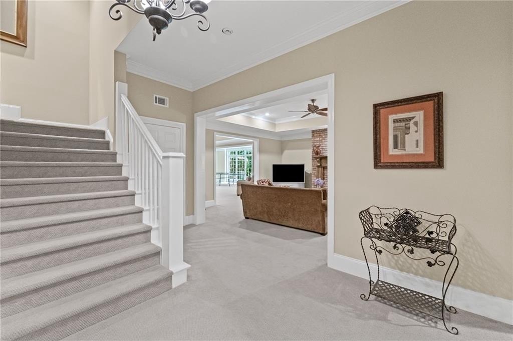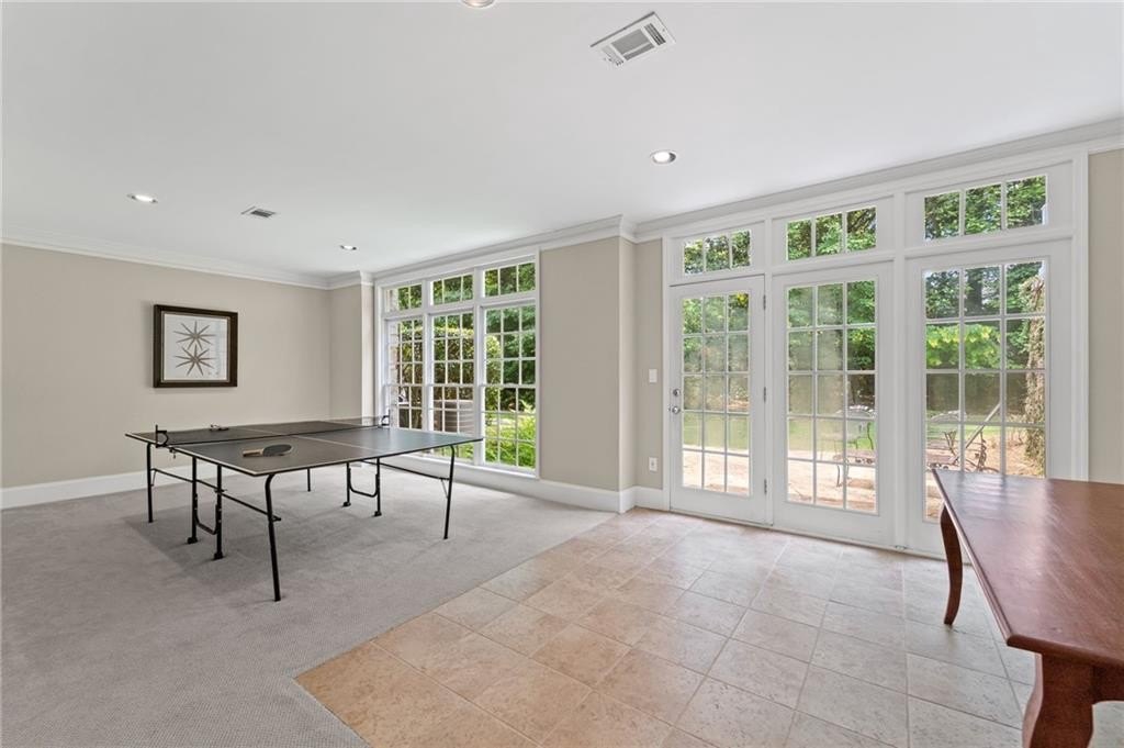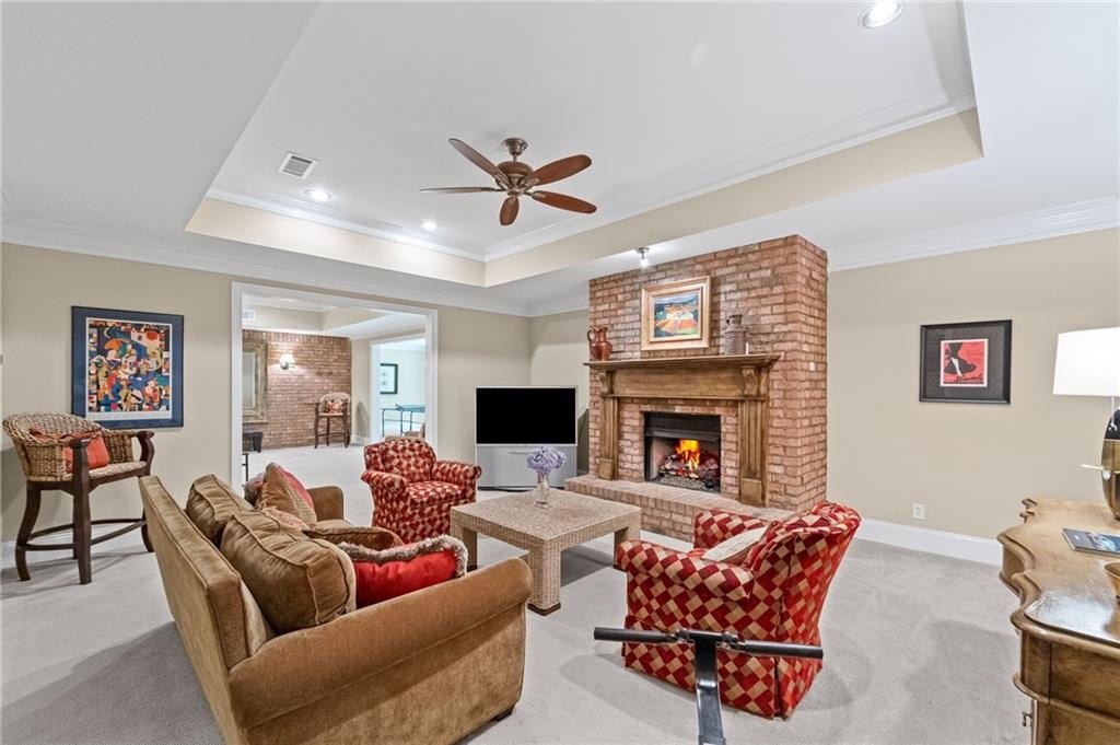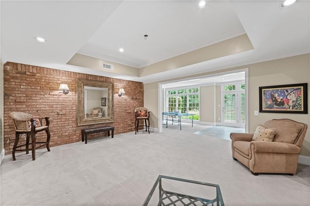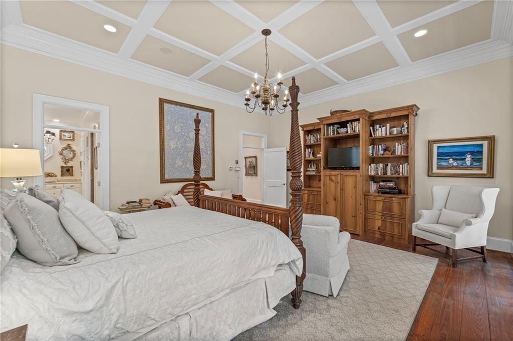 Welcome to an exceptional living experience, where timeless Southern charm seamlessly meets refined New England elegance. Nestled in the exclusive Bailey Estates neighborhood, this custom-built home has over 8000 sq. ft. 6 bedrooms and 7 bathrooms, and is set on a private 1.2-acre cul-de-sac lot. Included with this home is an 880 sq. ft. space, with split HVAC system, above the garage, that can be utilized as a studio, office, or an additional 7th bedroom complete with a full bath bringing the total number of baths to 7. The allure of a home often begins with the first glance, and this particular home does not disappoint. The exterior facade, adorned with a blend of stone and cedar shake siding, sets the tone for a residence that exudes both elegance and warmth. As you approach the entryway, the front porch extends a warm welcome. Upon entering the home, you are greeted by the stone floor in the foyer which is a testament to the craftmanship and character throughout. This home offers spacious, light-filled living areas featuring 12-foot ceilings, custom moldings, wide-plank heart pine floors and 6 fireplaces. To the right of the foyer is a library/study perfect for reading and relaxing. To the left is the dining room which seats 12 comfortably making it the perfect spot for intimate gatherings or extravagant dinner parties. As you continue inside the home, you find an elegant living room with coffered ceilings, fireplace and french doors leading outside to the stone patio complete with a cozy outdoor fireplace perfect for cool fall evenings. The heart of the home boasts a chef's kitchen designed for both functionality and design with dual islands, a sub-zero refrigerator, dual dishwashers, maple wood cabinets, a copper apron sink and walk in pantry. Enjoy an open view of the family room with a beamed ceiling, custom cabinetry, and a stone fireplace, for intimate gatherings. The breakfast room highlights beautiful hanging light pendants, plenty of space and overlooks a private backyard. The oversized primary bedroom on the main floor features coffered ceilings, lots of natural light and a spa-inspired ensuite with a soaking tub, separate shower, dual vanities and two large walk-in closets. Upon entering from the garage and through the covered breezeway/portico, you are greeted by a spacious laundry room equipped with a sink and can accomodate extra refrigerator adding to the overall efficiency of the home. The powder room is designed with style and convenience in mind, blending effortlessly into the main level's aesthetic. Take the stairs to the upper level where you'll find an open landing adorned with built-in bookcases. This floor boasts four generously sized bedrooms, each featuring a private bath to ensure both comfort and privacy. A media/study room with a wood-burning fireplace provides a serene space for work or relaxation. The expansive terrace level features a vast entertainment space, two additional flex rooms, a bedroom, full bath, and ample storage completing this versatile level, offering endless possibilities for customization. The terrace level seamlessly flows to the outdoors, featuring a walk-out stone patio and a private yard. Additional highlights include a spacious three car garage, recent house painting inside and out, repaved driveway, refinished kitchen floors and an irrigation system. Great location near Dunwoody Country Club, premier shopping and dining. Don't miss the opportunity to call this home!