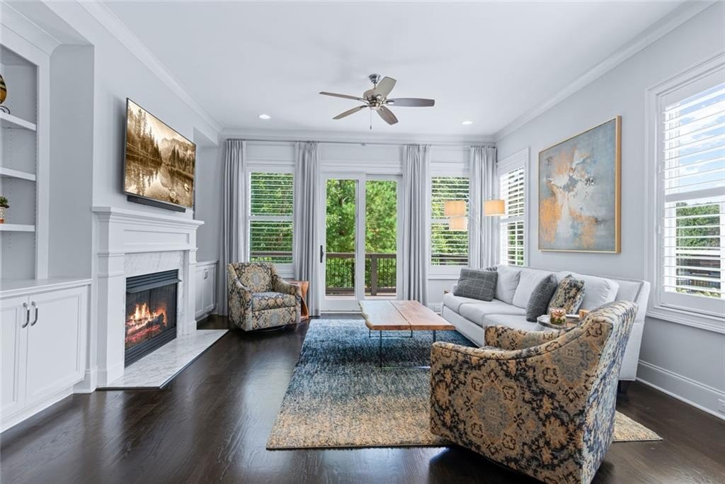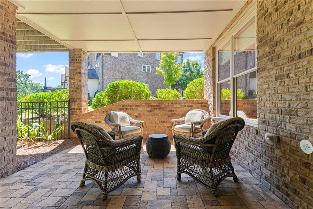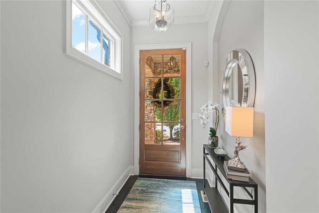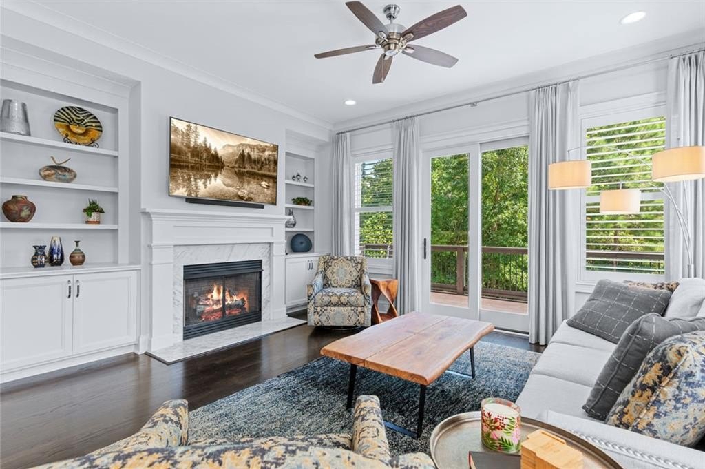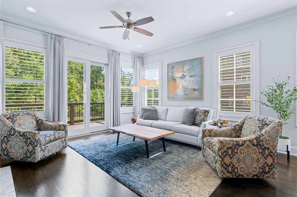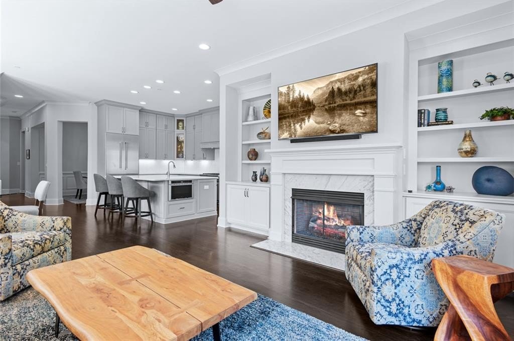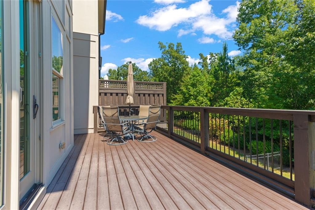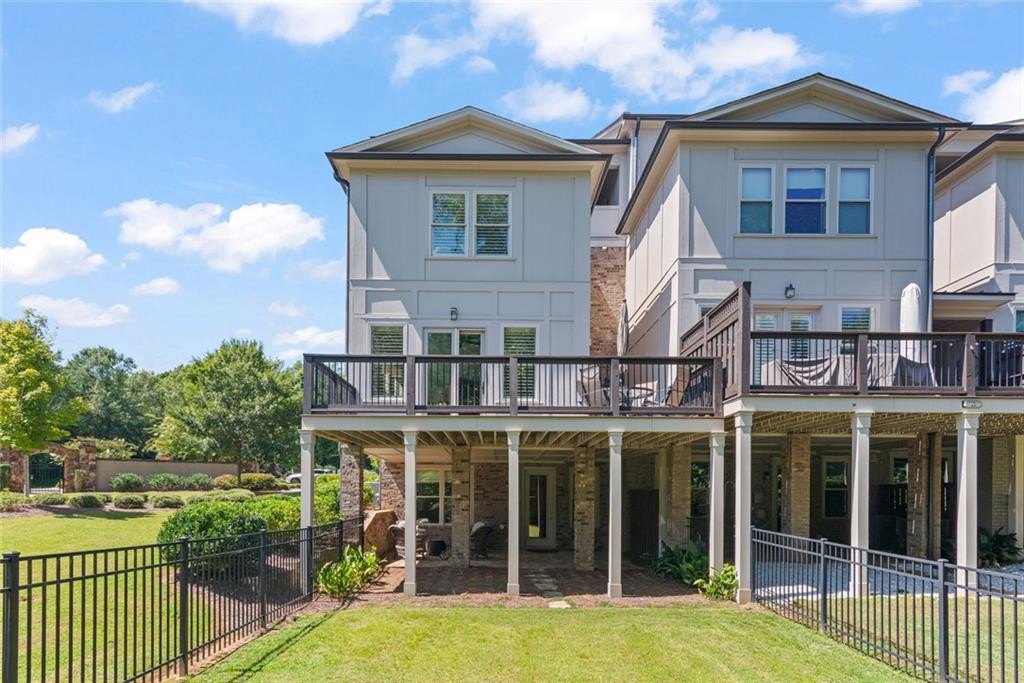 Positioned on one of the community’s largest end-unit lots, the home backs to lush woodlands with private trail access to Cochran Shoals and the Chattahoochee River.
