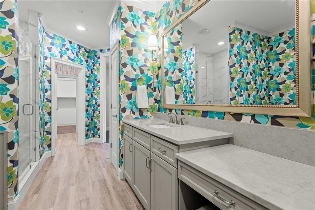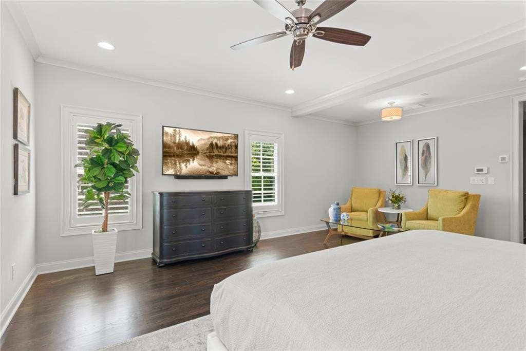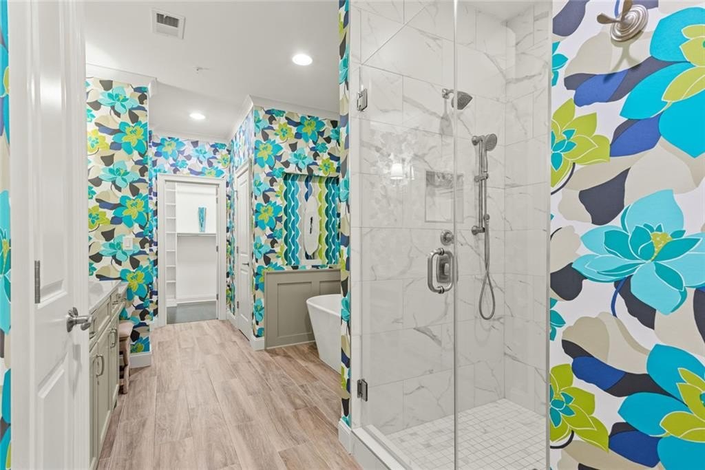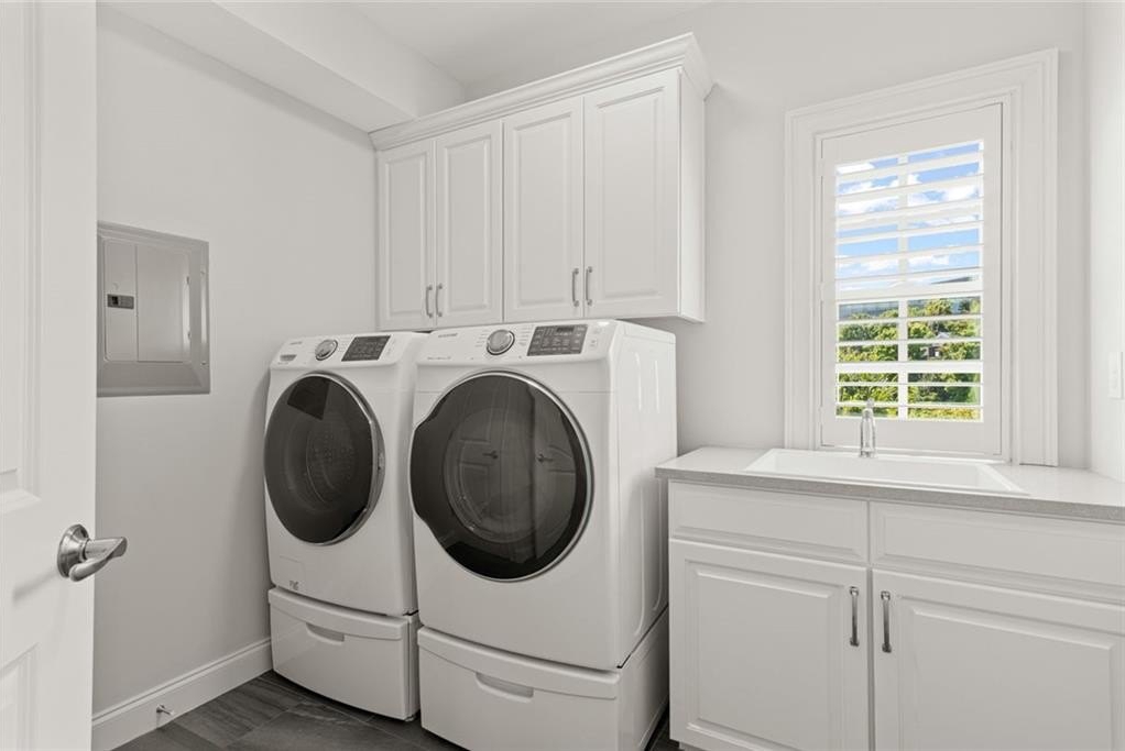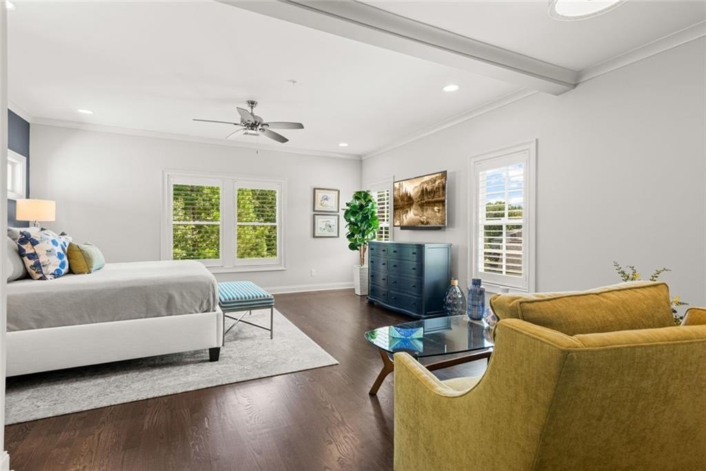 Upstairs, the expansive primary suite offers a peaceful retreat with a sitting area, dual walk-in closets, and a spa-inspired bath with soaking tub, His-n-Hers vanities, closets and water closets. A spacious ensuite bedroom and daylight laundry room with Samsung appliances and built-in storage complete the level.