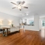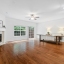 Step inside to find hardwood floors and a bright, open main living area that flows seamlessly into the updated white kitchen, complete with granite countertops and stainless steel appliances. The open floor plan sets the stage for both entertaining and relaxed evenings at home.