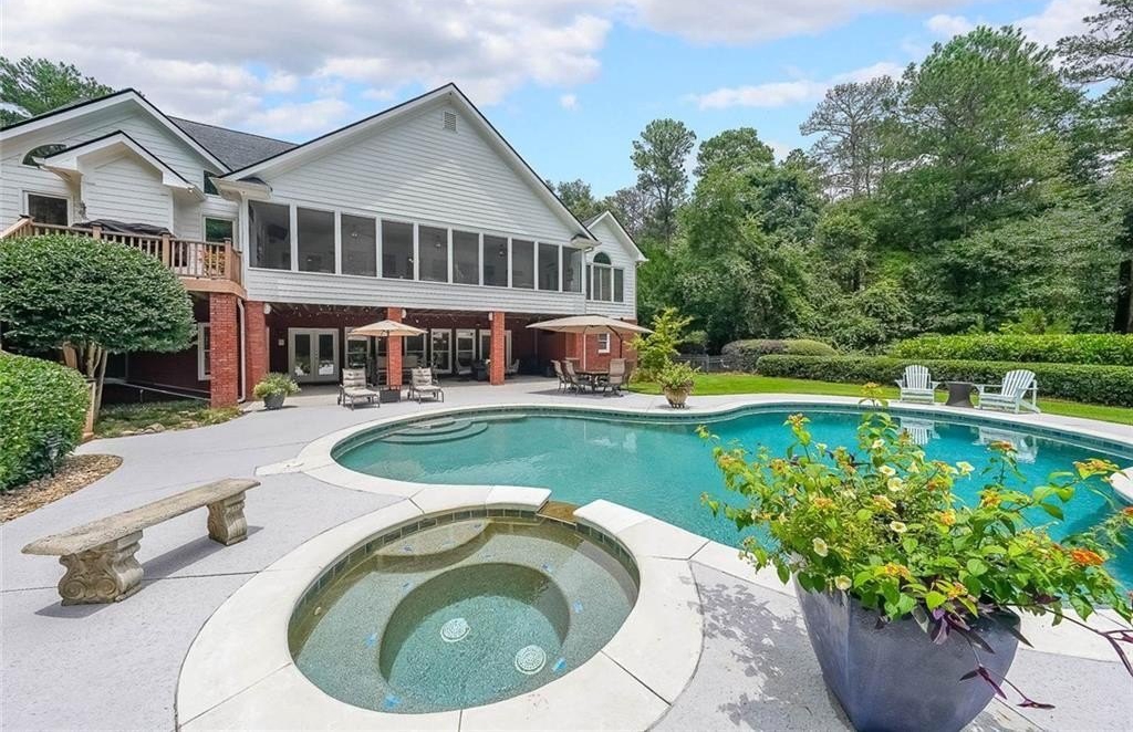 Gorgeous 7.27 Acre Secluded Gated Estate located just 30 minutes from Downtown Atlanta and Minutes to Shopping and Dining. This home is an Entertainers Paradise! Perfect for Multi Generational Living, This Immaculate Stunner is Truly Two Homes in One! Main Level Boasts Enormous Great Room with Bookcases and Fireplace, Separate Dining, Office, Impressive Kitchen includes Walk in Pantry, Wall oven AND Range, Icemaker and Vaulted Keeping Room with Fireplace. Owners Suite With Spa Style bath with Separate Vanities, Soaking Tub and Enormous Shower, Two Walk in Closets with Closet Storage Systems and Separate Sitting/Sunroom. Upper Level includes Bedroom Suite with Living Area, Full Bath, and Walk in Closet and Two Walk in attic Storage Area's. The IMPRESSIVE Terrace Level Offers an Open Concept Living/Dining/Pool Table Room, Exercise Room, FULL KITCHEN, Second Laundry Room, Two Bedroom Suites (Each with a full Bath and Walk in Closets) Half Bath, Darts Room, and Unfinished Flex Space. Outdoor Living Spaces Include a Covered Front Porch, Gigantic Screened Porch and Deck off Main Level, and Covered Porch off Terrace Level. The Majestic Backyard has an Inviting Heated Salt Water Pebble Tec Pool/Spa. Pool equipped with Upgraded Technology which can be Controlled from Your Phone! Aside from the 3 car garage with the main house, the detached 3 car garage is heated and cooled and is perfect for your "Cool Cars"!!! In addition, a 4 bay "Barn" (25x50) for all your other toys or to use for a home business. Also included is the Covered Awning (24x50) For your Motorhome/Boat with a 50amp hookup. The list of upgrades is EXTENSIVE, Custom Trim, Hardwoods, Upgraded Appliances, Irrigation , Plantation Shutters, Professional Landscaping and MORE! You have to see to appreciate! NEW ROOF JUST INSTALLED MAY 2025!!!