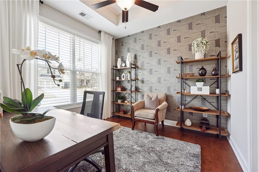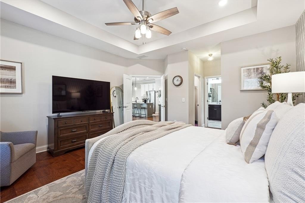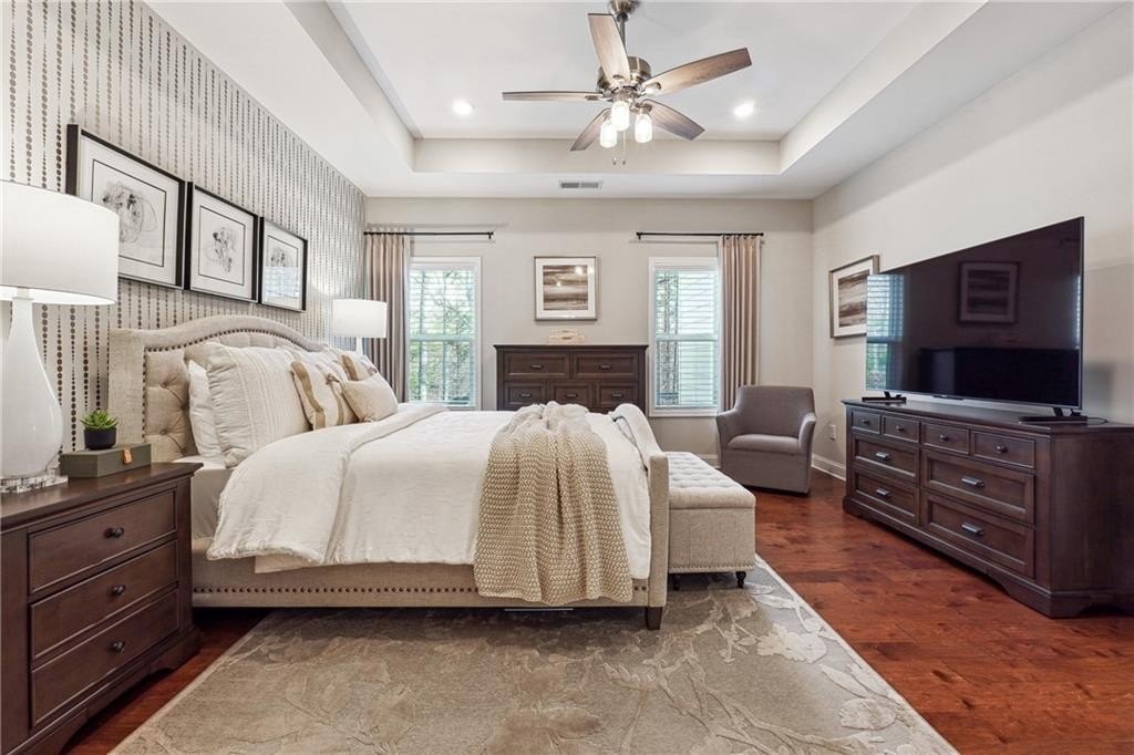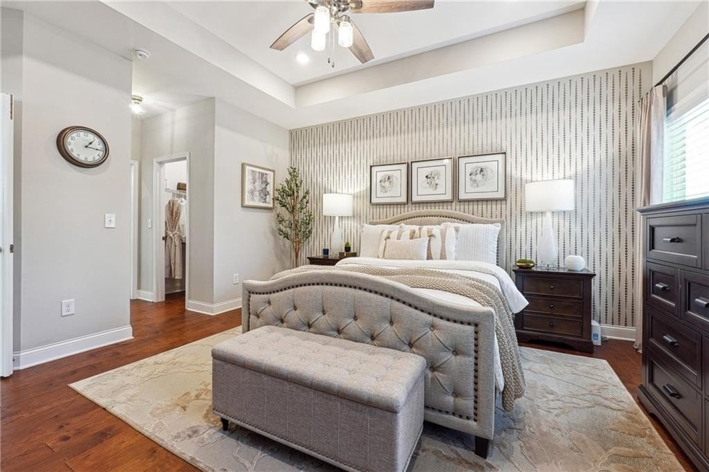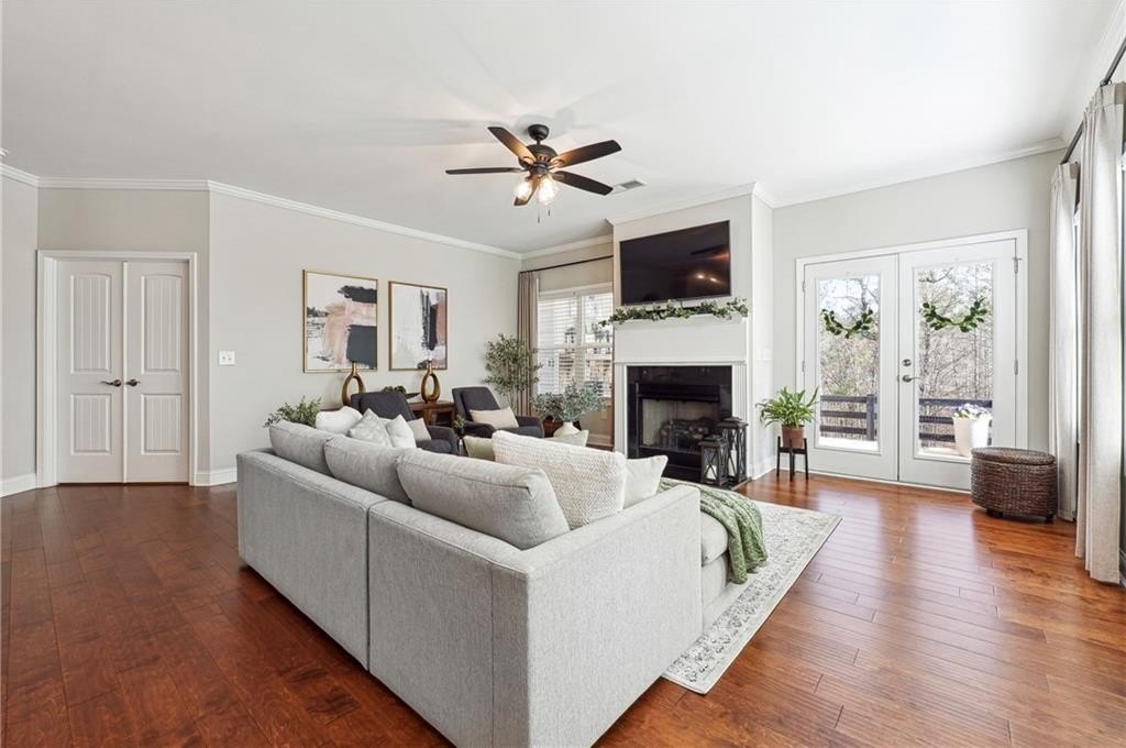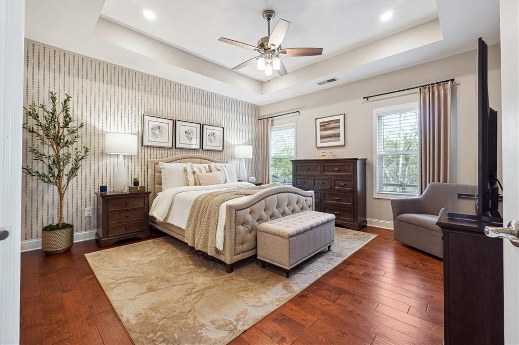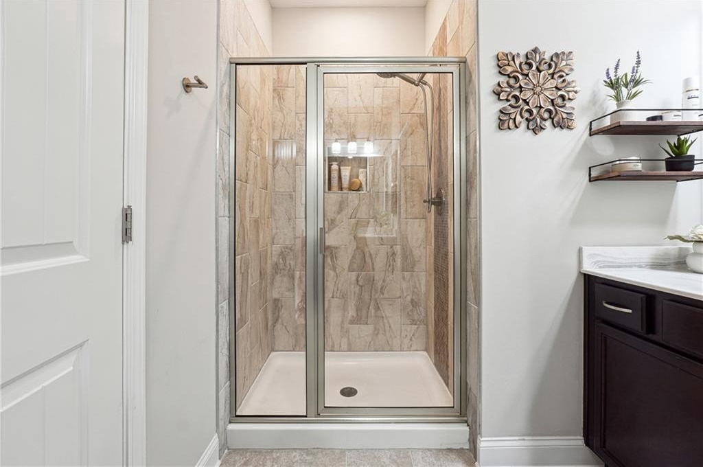 Welcome to this beautifully appointed 3 bedroom, 2 bath, single-level home in the highly sought-after NatureWalk active adult section of a vibrant, amenity-rich community. Blending comfort, style, and low-maintenance living, this home boasts rich hardwood floors, crown molding, and tasteful designer accents throughout. The open-concept layout is light-filled and inviting, anchored by a spacious great room with a cozy gas fireplace and upgraded lighting. The chef’s kitchen is a showstopper—featuring pristine white cabinetry, granite countertops, stainless steel appliances, a walk-in pantry, and elegant finishes that flow seamlessly into the dining and living areas. The primary suite is a true retreat, complete with a tray ceiling, two walk-in closets, and a spa-like bath offering dual vanities, a tiled shower, and beautiful tile flooring. A laundry/mud room with a built-in drop-zone bench adds everyday convenience, while two additional bedrooms provide flexible space for guests, an office, or hobbies.Step outside to a private, fenced backyard where a covered porch with a stunning stone fireplace overlooks peaceful wooded views—the perfect setting for relaxing or entertaining year-round. A two car garage, professional landscaping and exceptional curb appeal complete the package. Residents enjoy a low-maintenance lifestyle with lawn care, trash service and a full calendar of planned social events included. Community amenities abound—clubhouse, walking trails, golf cart paths, dog park, junior Olympic pool, pickleball and tennis courts, basketball courts, and a full-time lifestyle director. This is more than a home—it’s a lifestyle you’ll love coming back to every day.