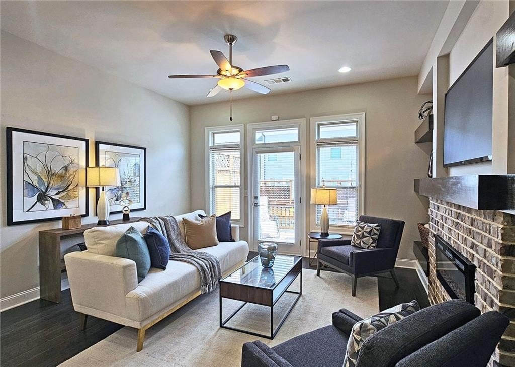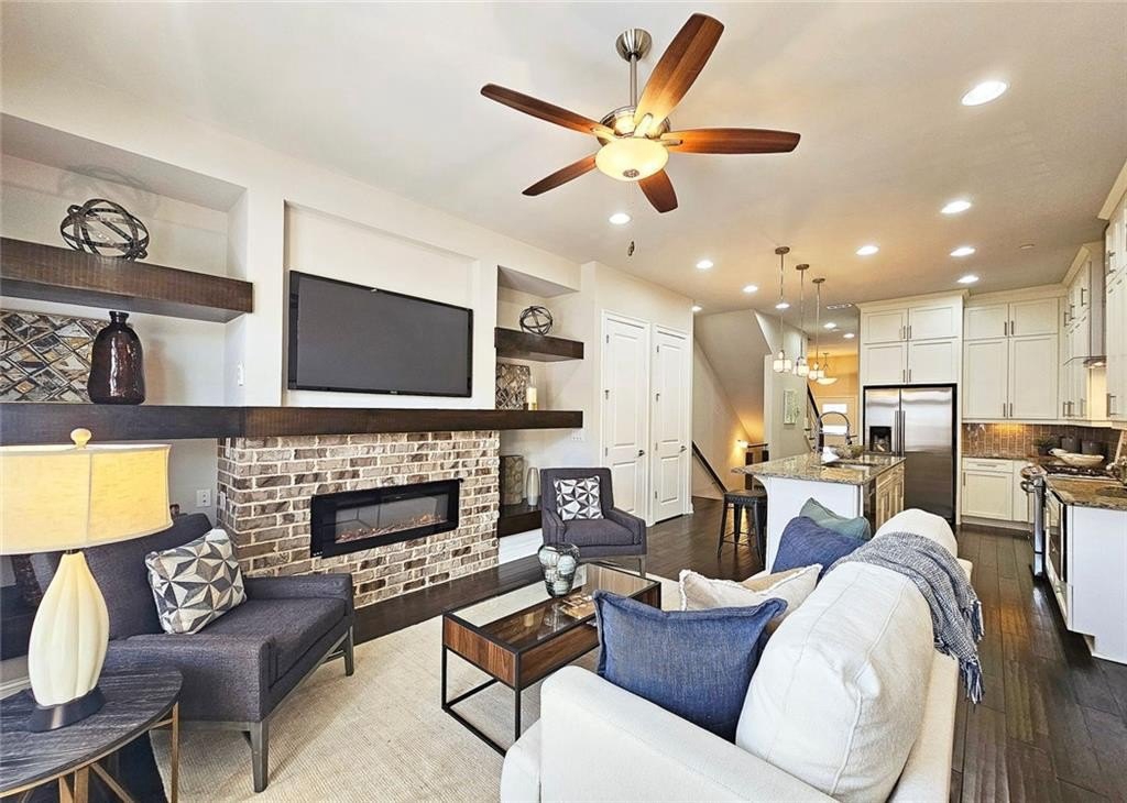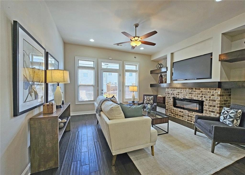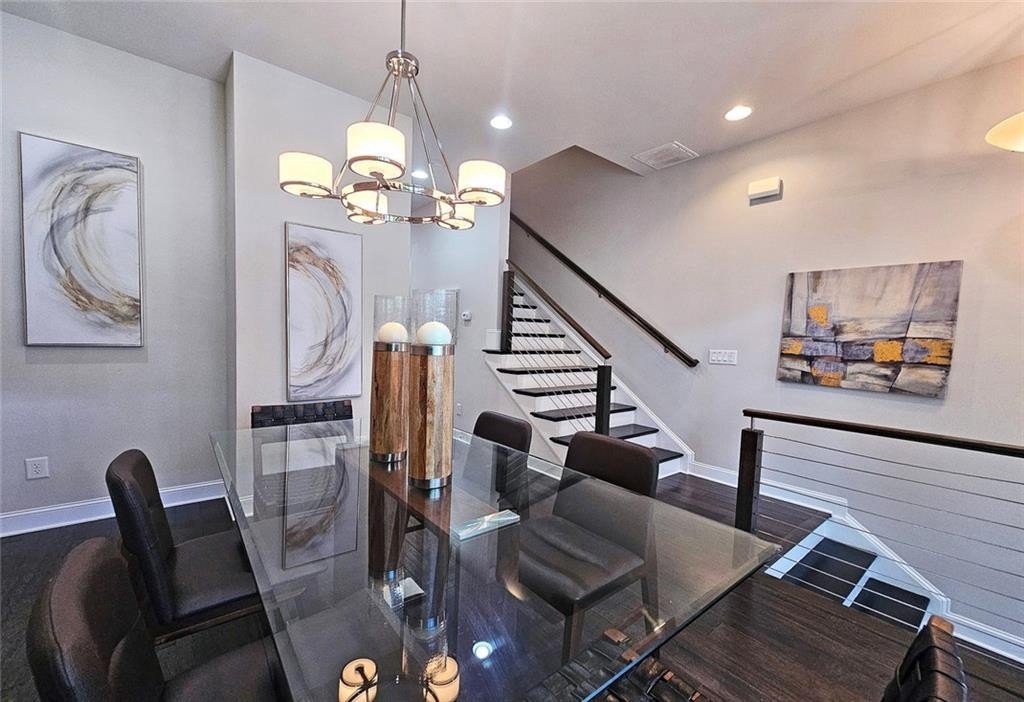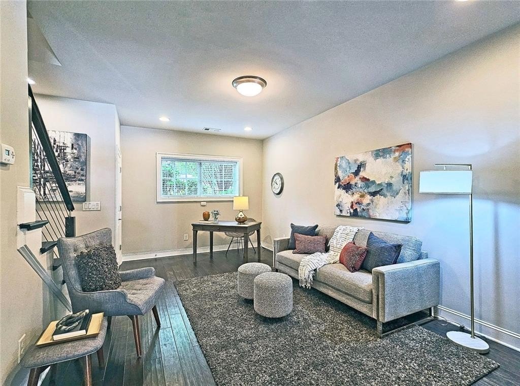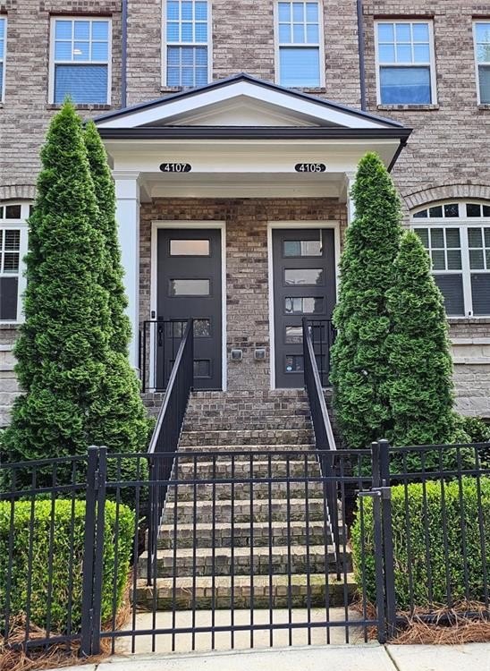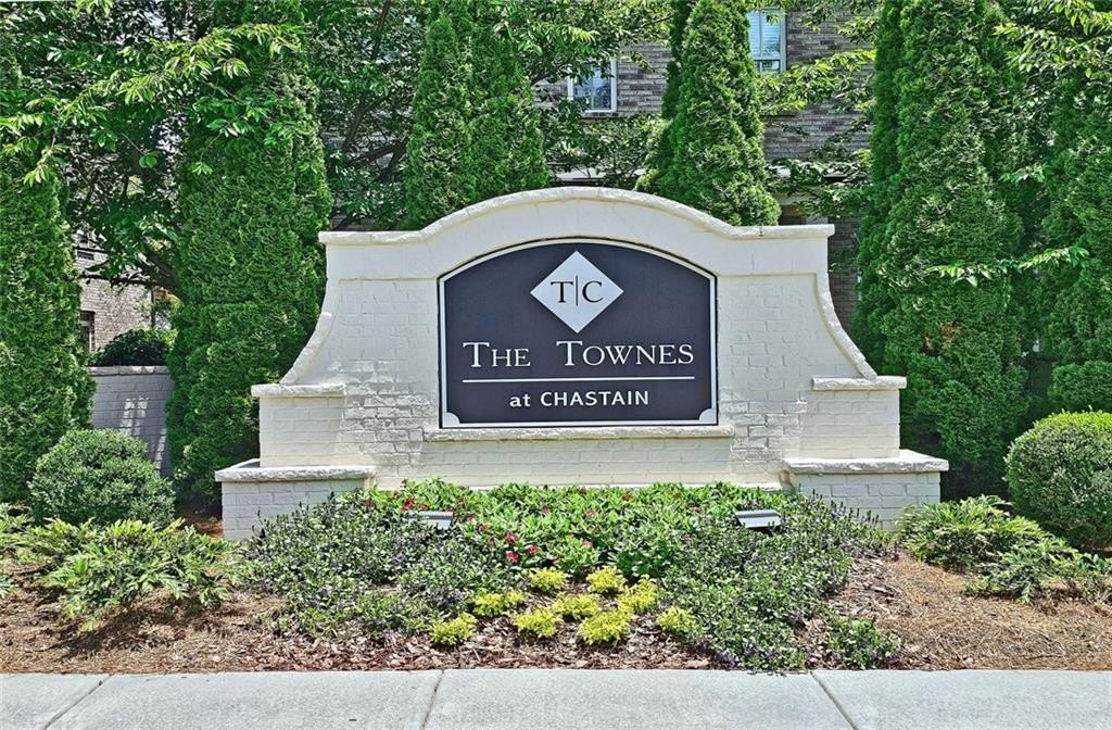 This incredible luxurious three level newer construction is in the coveted GATED "The Townes at Chastain" community in the city of Sandy Springs. You'll enjoy luxurious and low maintenance living. This home has quality design and finishes, plus a lifestyle great for entertaining. The spacious 2 bedroom/2 bath/2 1/2 baths townhouse screams designer. You'll enjoy a blend of luxury, comfort, and convenience with an ambiance which is inviting and sophisticated. LOCATION, LOCATION, LOCATION. You're in an ideal location with everything at your fingertips and moments from treasured Chastain Park & Amphitheater, great shopping, casual and fine dining, and entertainment. The exteriors are elegant with brick and cement siding. You'll enjoy a luxurious interior with over $40,000 in Builder upgrades, low maintenance, and an energy efficient lifestyle. A few energy efficient features: appliances, gas hot water heater, HVAC, thermostat, fully insulated walls, ceiling & attic, dual pane windows. You're "WOWED" upon entering with open concept living, bathed in abundant natural light, soaring 10" ceilings, upgraded decorator lighting, recessed lighting throughout, and beautiful upgraded wood floors throughout, (carpet in 2nd bedroom). There's an impressive front entrance to the building with gate, porch and welcoming foyer. Take foyer to a lovely formal dining room with great windows, chandelier, and upgraded brick wall. The dreamy chef's kitchen, is the heart of the home, has abundant white custom cabinets all the way to the ceiling, and under cabinet lighting, Countertops are beautiful, chiseled edge granite, ceramic tile backsplash, stainless energy efficient appliances, large island, breakfast bar, and pantry. Spacious family room has floating shelving, an upgraded brick wall, and a cozy modern electric fireplace with flame and mood lighting settings. Everyone will enjoy the relaxing deck off the family room. The main floor powder room has lovely upgrades with two decorative glass tile walls, wood cabinetry, and oversized sink. Upper level has two en-suites with a desirable roommate floor plan. Both bedrooms have upgraded 10' tray ceilings. The stately master en-suite has great windows, huge closet, and spa-like master bath with upgraded vaulted ceiling, dual vanities, wood cabinetry, and huge walk-in frameless glass shower with dual showerheads. The secondary bedroom en-suite with 10' tray ceiling has a large walk-in closet, and private tile bath. Laundry closet is conveniently located upstairs-washer/dryer remain. You'll love the additional space on the terrace level with a wonderful bonus room/flex space, powder room, and one car garage with custom epoxy flooring. A security system is in place. "The Townes at Chastain" is a walkable lifestyle community with a sparkling community pool, outdoor grill area, and peaceful seating areas in the community. In 2019, the subdivision was named "Community of the Year" by the GA Home Builders Association. THIS TOWNHOUSE HAS IT ALL!