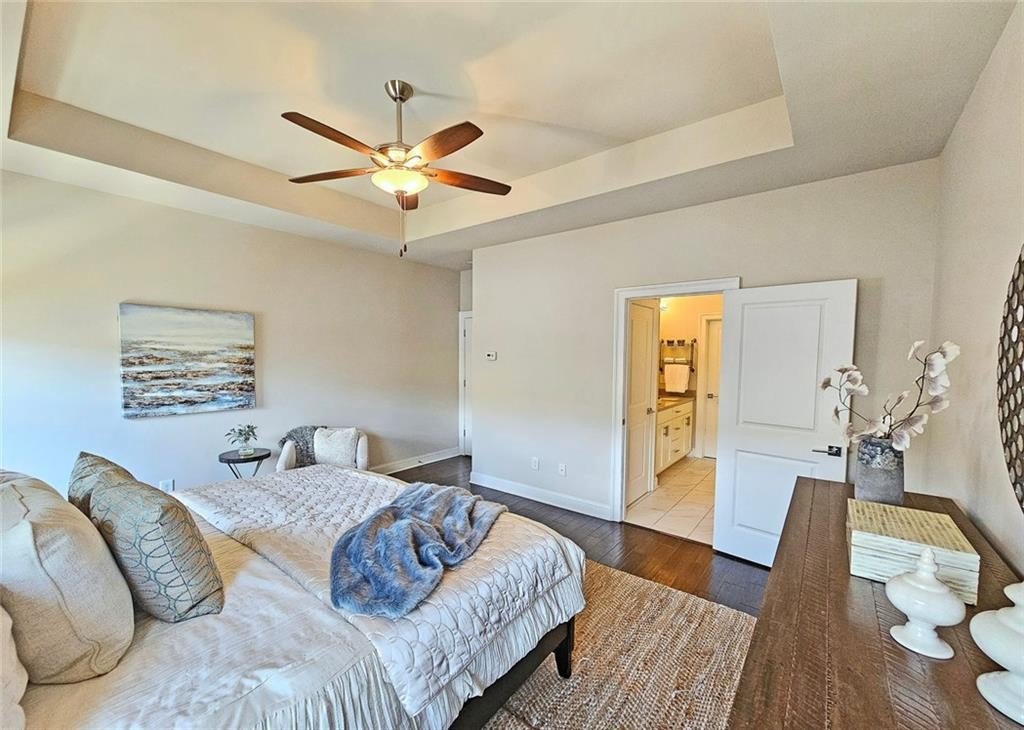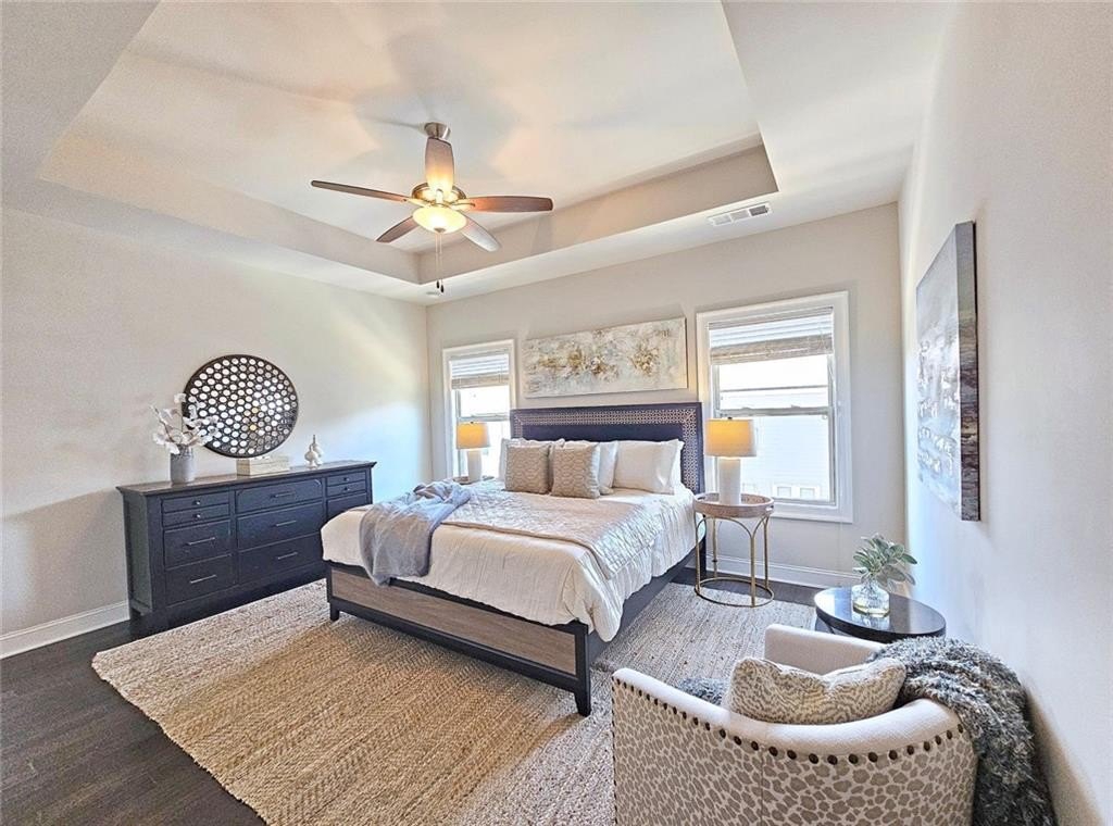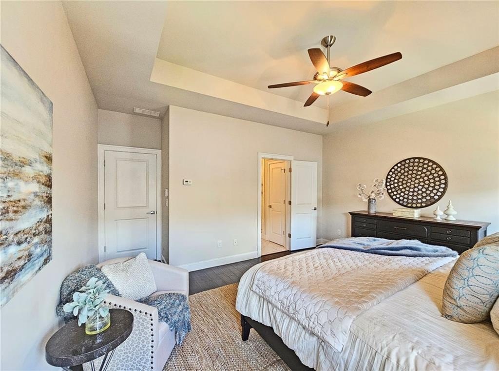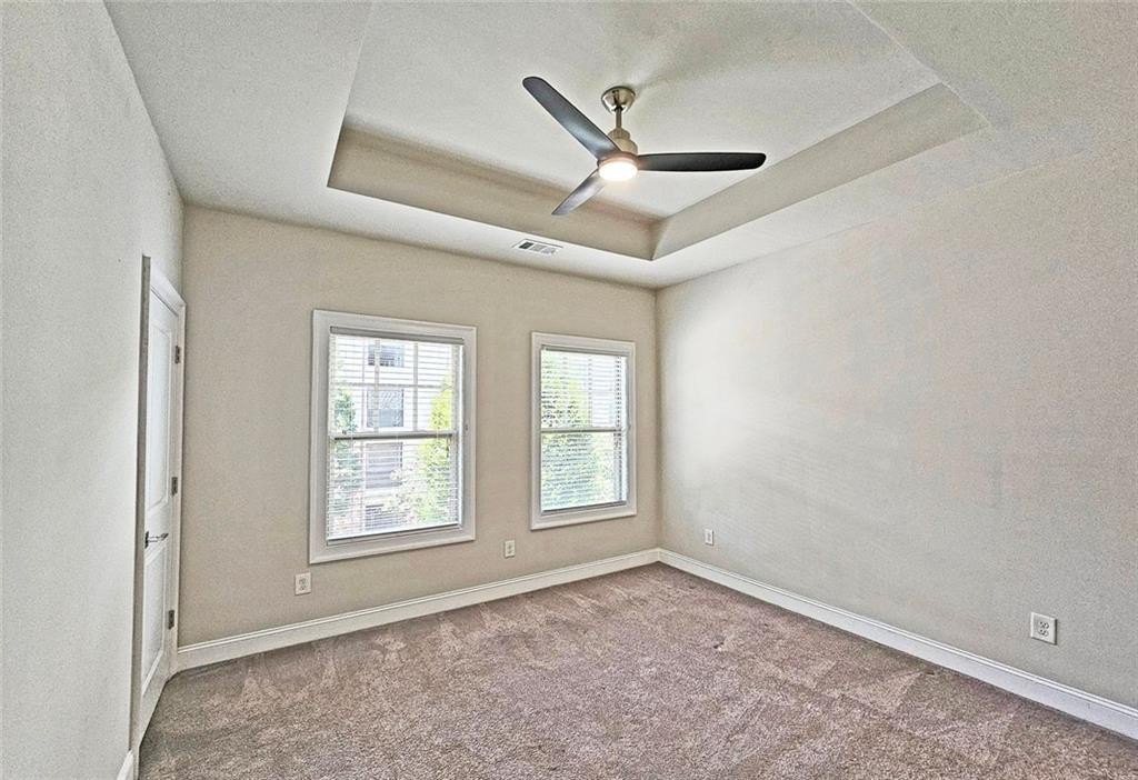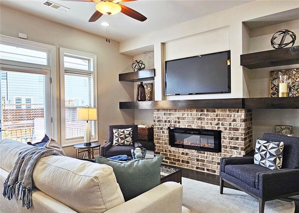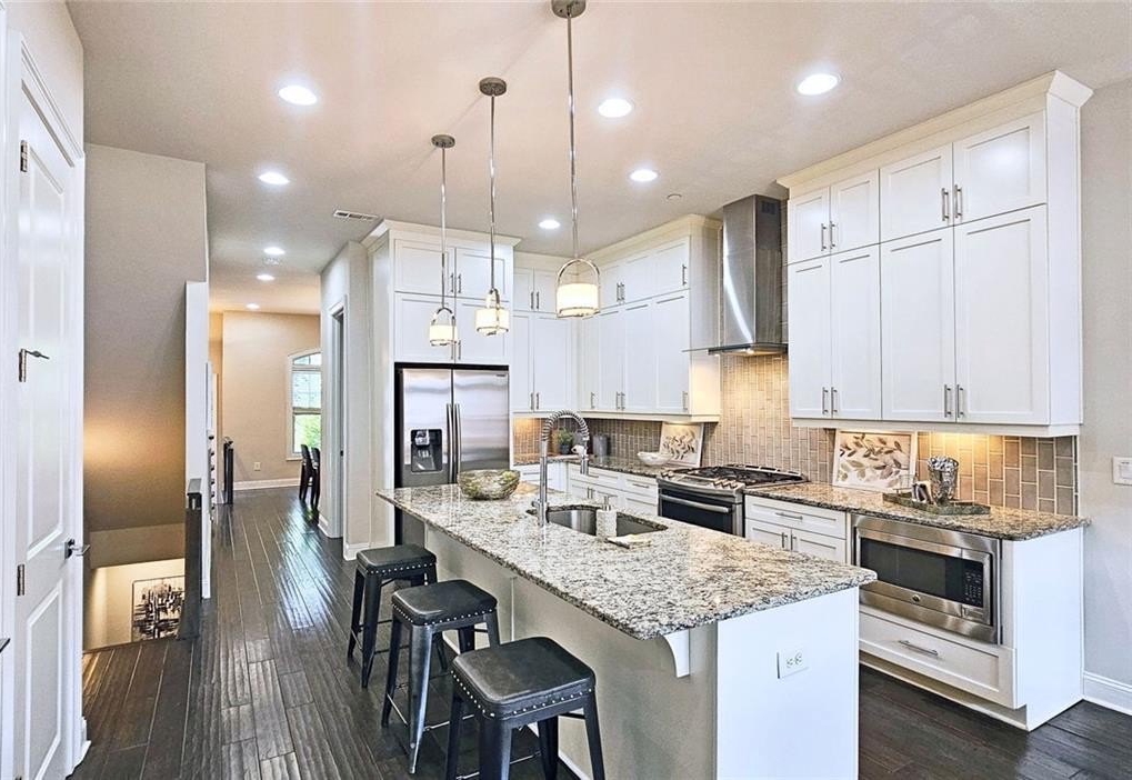 This incredible luxurious three level newer construction is in the coveted GATED "The Townes at Chastain" community in the city of Sandy Springs. You'll enjoy luxurious and low maintenance living. This home has quality design and finishes, plus a lifestyle great for entertaining. The spacious 2 bedroom/2 bath/2 1/2 baths townhouse screams designer. You'll enjoy a blend of luxury, comfort, and convenience with an ambiance which is inviting and sophisticated. LOCATION, LOCATION, LOCATION. You're in an ideal location with everything at your fingertips and moments from treasured Chastain Park & Amphitheater, great shopping, casual and fine dining, and entertainment. The exteriors are elegant with brick and cement siding. You'll enjoy a luxurious interior with over $40,000 in Builder upgrades, low maintenance, and an energy efficient lifestyle. A few energy efficient features: appliances, gas hot water heater, HVAC, thermostat, fully insulated walls, ceiling & attic, dual pane windows. You're "WOWED" upon entering with open concept living, bathed in abundant natural light, soaring 10" ceilings, upgraded decorator lighting, recessed lighting throughout, and beautiful upgraded wood floors throughout, (carpet in 2nd bedroom). There's an impressive front entrance to the building with gate, porch and welcoming foyer. Take foyer to a lovely formal dining room with great windows, chandelier, and upgraded brick wall. The dreamy chef's kitchen, is the heart of the home, has abundant white custom cabinets all the way to the ceiling, and under cabinet lighting, Countertops are beautiful, chiseled edge granite, ceramic tile backsplash, stainless energy efficient appliances, large island, breakfast bar, and pantry. Spacious family room has floating shelving, an upgraded brick wall, and a cozy modern electric fireplace with flame and mood lighting settings. Everyone will enjoy the relaxing deck off the family room. The main floor powder room has lovely upgrades with two decorative glass tile walls, wood cabinetry, and oversized sink. Upper level has two en-suites with a desirable roommate floor plan. Both bedrooms have upgraded 10' tray ceilings. The stately master en-suite has great windows, huge closet, and spa-like master bath with upgraded vaulted ceiling, dual vanities, wood cabinetry, and huge walk-in frameless glass shower with dual showerheads. The secondary bedroom en-suite with 10' tray ceiling has a large walk-in closet, and private tile bath. Laundry closet is conveniently located upstairs-washer/dryer remain. You'll love the additional space on the terrace level with a wonderful bonus room/flex space, powder room, and one car garage with custom epoxy flooring. A security system is in place. "The Townes at Chastain" is a walkable lifestyle community with a sparkling community pool, outdoor grill area, and peaceful seating areas in the community. In 2019, the subdivision was named "Community of the Year" by the GA Home Builders Association. THIS TOWNHOUSE HAS IT ALL!