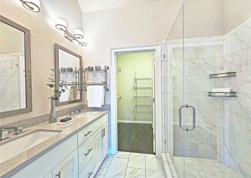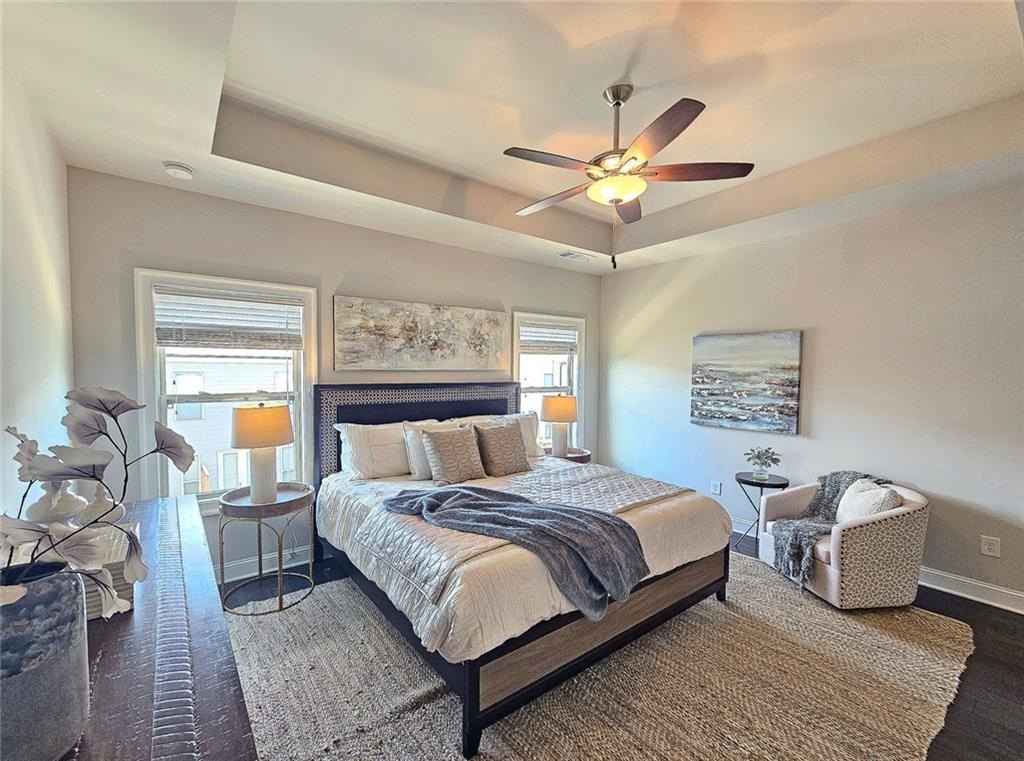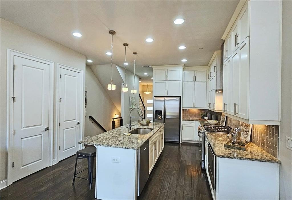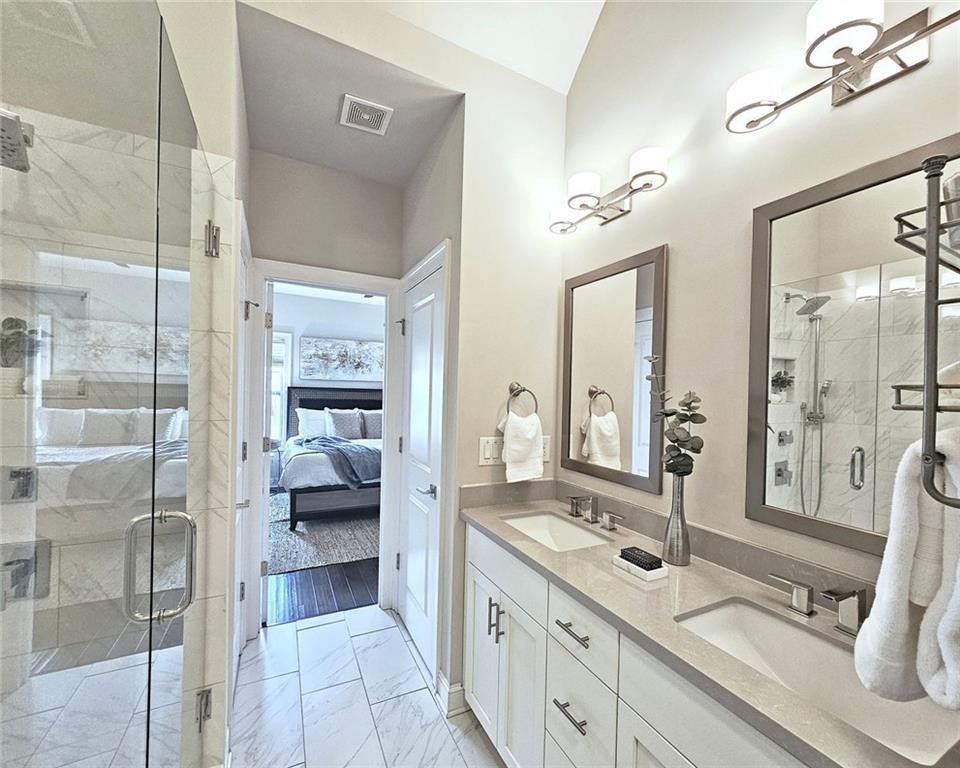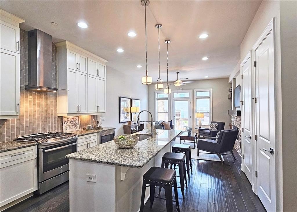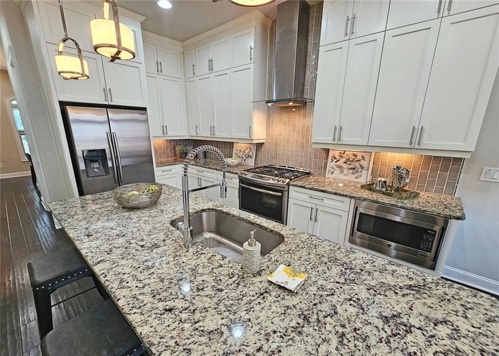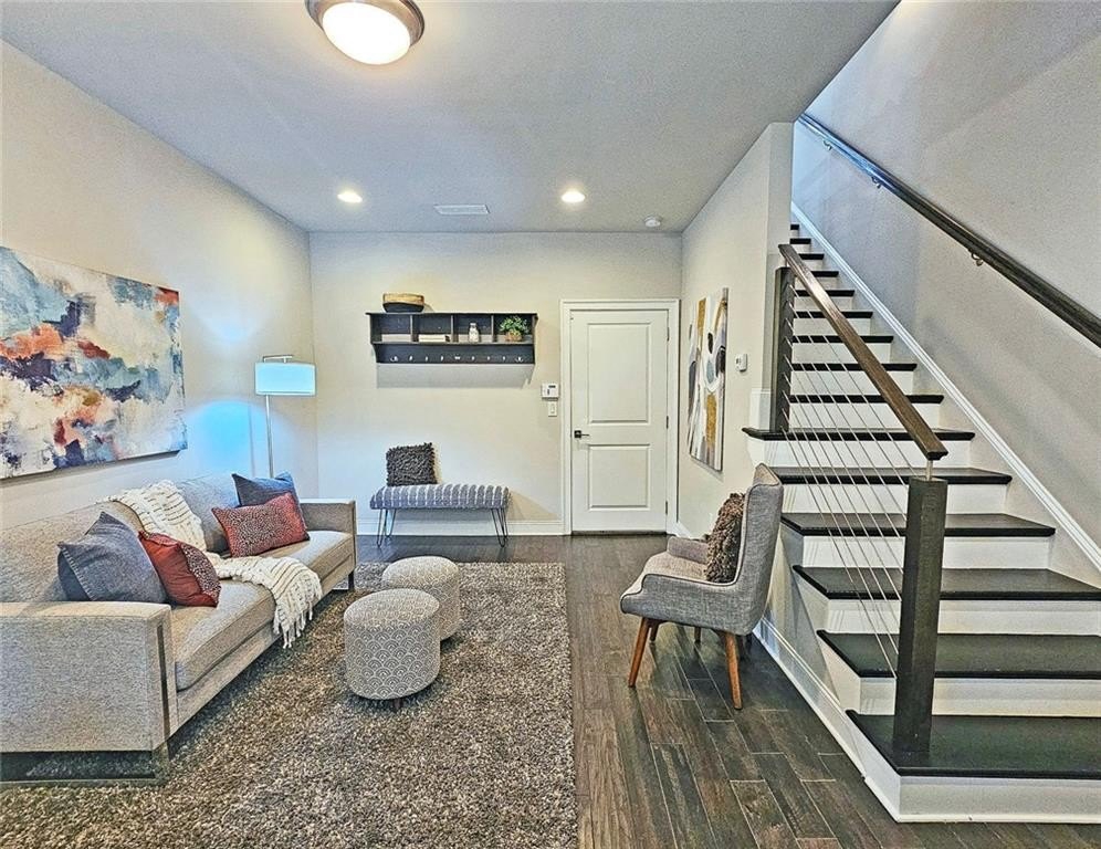 This incredible luxurious three level newer construction is in the coveted GATED "The Townes at Chastain" community in the city of Sandy Springs. You'll enjoy luxurious and low maintenance living. This home has quality design and finishes, plus a lifestyle great for entertaining. The spacious 2 bedroom/2 bath/2 1/2 baths townhouse screams designer. You'll enjoy a blend of luxury, comfort, and convenience with an ambiance which is inviting and sophisticated. LOCATION, LOCATION, LOCATION. You're in an ideal location with everything at your fingertips and moments from treasured Chastain Park & Amphitheater, great shopping, casual and fine dining, and entertainment. The exteriors are elegant with brick and cement siding. You'll enjoy a luxurious interior with over $40,000 in Builder upgrades, low maintenance, and an energy efficient lifestyle. A few energy efficient features: appliances, gas hot water heater, HVAC, thermostat, fully insulated walls, ceiling & attic, dual pane windows. You're "WOWED" upon entering with open concept living, bathed in abundant natural light, soaring 10" ceilings, upgraded decorator lighting, recessed lighting throughout, and beautiful upgraded wood floors throughout, (carpet in 2nd bedroom). There's an impressive front entrance to the building with gate, porch and welcoming foyer. Take foyer to a lovely formal dining room with great windows, chandelier, and upgraded brick wall. The dreamy chef's kitchen, is the heart of the home, has abundant white custom cabinets all the way to the ceiling, and under cabinet lighting, Countertops are beautiful, chiseled edge granite, ceramic tile backsplash, stainless energy efficient appliances, large island, breakfast bar, and pantry. Spacious family room has floating shelving, an upgraded brick wall, and a cozy modern electric fireplace with flame and mood lighting settings. Everyone will enjoy the relaxing deck off the family room. The main floor powder room has lovely upgrades with two decorative glass tile walls, wood cabinetry, and oversized sink. Upper level has two en-suites with a desirable roommate floor plan. Both bedrooms have upgraded 10' tray ceilings. The stately master en-suite has great windows, huge closet, and spa-like master bath with upgraded vaulted ceiling, dual vanities, wood cabinetry, and huge walk-in frameless glass shower with dual showerheads. The secondary bedroom en-suite with 10' tray ceiling has a large walk-in closet, and private tile bath. Laundry closet is conveniently located upstairs-washer/dryer remain. You'll love the additional space on the terrace level with a wonderful bonus room/flex space, powder room, and one car garage with custom epoxy flooring. A security system is in place. "The Townes at Chastain" is a walkable lifestyle community with a sparkling community pool, outdoor grill area, and peaceful seating areas in the community. In 2019, the subdivision was named "Community of the Year" by the GA Home Builders Association. THIS TOWNHOUSE HAS IT ALL!