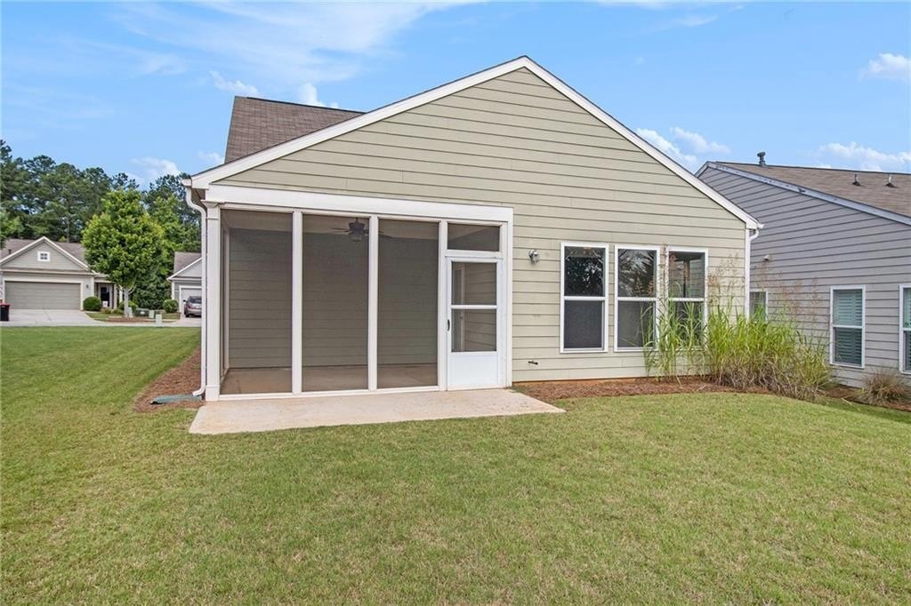Welcome to this beautifully maintained 2-bedroom home featuring a convenient master suite on the main level and a private upstairs loft—perfect as a guest bedroom or additional living space. The master suite offers a spacious full bath with a double vanity, while a half bath is located just off the kitchen for added convenience. At the entrance, you'll find a flexible bonus room ideal for a formal dining area, home office, or hobby space. A cozy sitting area at the front door is framed by attractive landscaping, creating a warm and inviting welcome. The gourmet kitchen is equipped with stainless steel appliances, recessed lighting, and modern fixtures. Enjoy easy-maintenance windows that snap out for simple cleaning and take in serene backyard views from your fully screened sun porch. Step outside to a brick patio - perfect for relaxing or entertaining guests. This intimate open floor plan is ideal for comfortable everyday living and easy entertaining. The community offers an active lifestyle with amenities such as golf, a clubhouse, swimming pool, tennis courts, walking and biking trails, and on-site security.