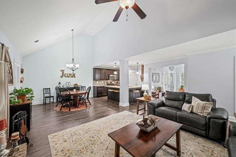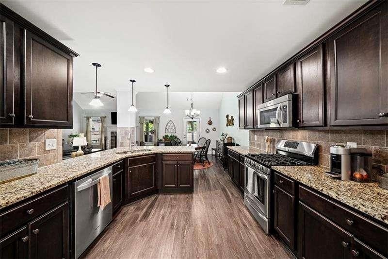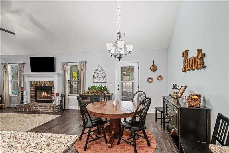 Charming Downtown Dawsonville Home for Sale Discover this beautifully maintained 1.5-story home in the heart of downtown Dawsonville, not too far from shopping, restaurants, and the incredible North Georgia Mountains.Formal Dining just off the Welcoming Foyer- Wide entryway with a staircase leading upstairs, accompanied by a convenient half bathroom on the main floor,Great Room is Bright two-story great room with hardwoods, featuring a charming fireplace, located just off the Kitchen is updated with stainless steel appliances, gas stove, and solid surface countertops, walk in pantry,plus a cozy breakfast area opens up to the Great Room. Just of the Breakfast room is the Screen Porch , private fenced back yard. Walk in Laundry Room located on the Main floor . Primary bedroom on the Main with a luxurious en-suite bathroom, soaking tub, walk-in shower, and double vanities, plus a generous walk-in closet. Upstairs are 3 additional bedrooms, a loft area, and a full bathroom, plenty of closets for extra storage !!Enjoy a covered front porch & a screened porch that overlooks a beautifully landscaped, private backyard.**Extras:** Includes a generator for added peace of mind! New construction home goingin at the 600's.