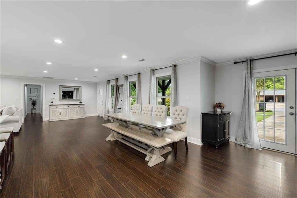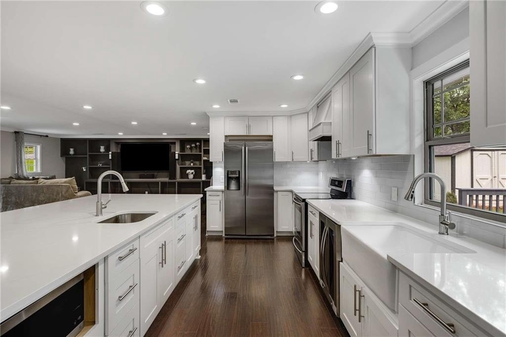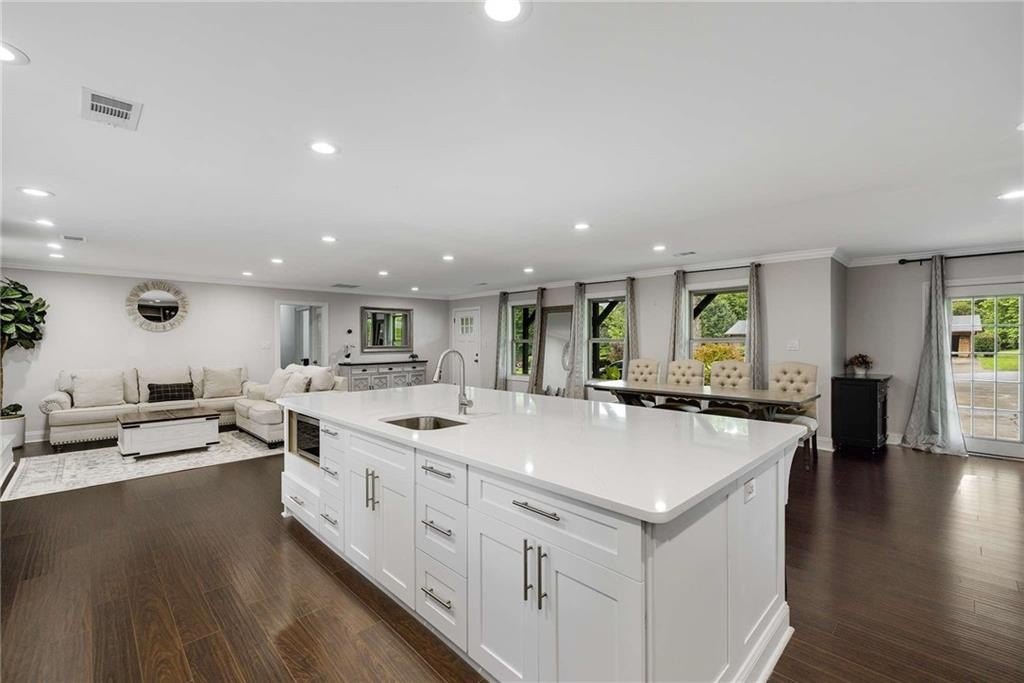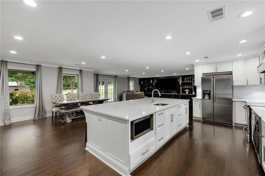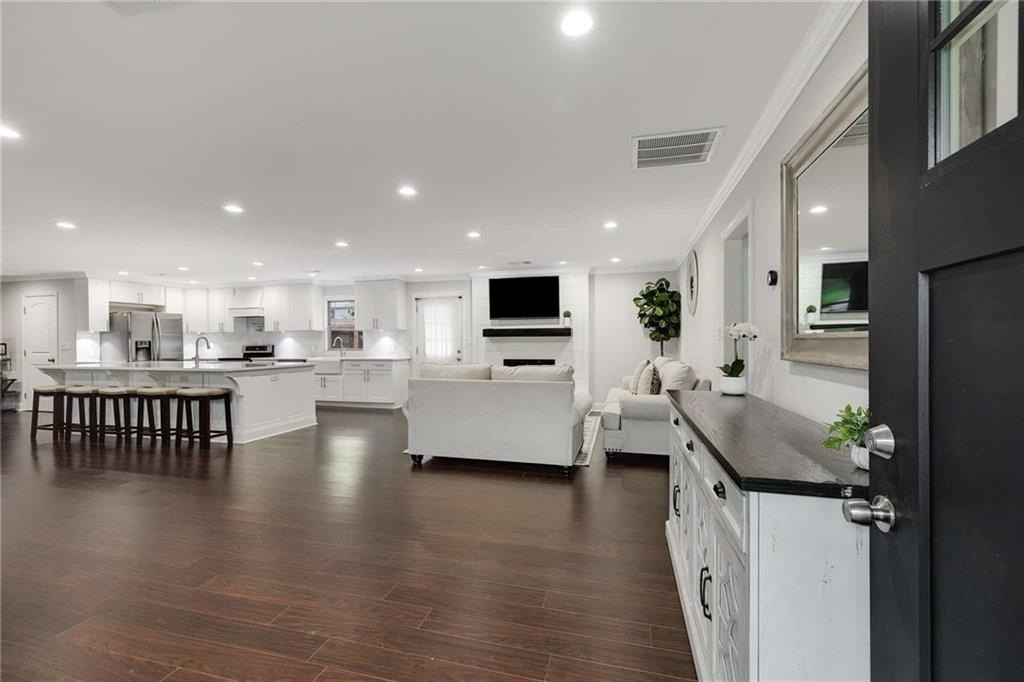 Discover a modern retreat where comfort meets character — all tucked into a peaceful Snellville neighborhood. This fully renovated ranch-style beauty blends designer upgrades with inviting outdoor spaces, creating the perfect setting for stylish living and everyday ease. Step inside to a light-filled, open-concept layout with rich wood-style floors, a soft neutral palette, and airy vibes throughout. The heart of the home — a stunning gourmet kitchen — features gleaming quartz countertops, crisp white cabinets, stainless steel appliances, and a large island that flows effortlessly into the living and dining areas. Whether you’re hosting a dinner party or cozying up for a movie night, this space is built to impress. The spa-like bathroom adds a touch of luxury with double vanities, LED-lit mirrors, and timeless tile finishes. Each bedroom feels fresh, calm, and move-in ready — perfect for families, downsizers, or first-time buyers.