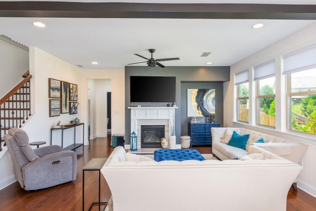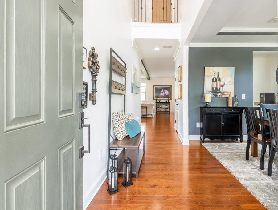 Seller contribution of $5,000 towards buyer's CLOSING COSTS is being offered! Move-in ready perfection awaits in this stunning Hampton Station swim/tennis gem! Step into a bright foyer leading to a dining room with tray ceiling and clerestory windows, a gourmet kitchen with new appliances, eat-at island, walk-in pantry and breakfast area overlooking a sunlit family room with cozy fireplace. A main-level office with coffard ceiling and half bath add convenience. Upstairs, the primary suite boasts a tray ceiling, flex space, and luxurious bath with dual vanity, separate tub, and shower, plus four secondary bedrooms (one en-suite), a dual-vanity full bath, and laundry with dual access. The finished terrace level offers entertainment space, a large bedroom suite with full bath, sitting area, and backyard access. Enjoy a newly re-stained deck, private backyard with no rear neighbor, three-car garage, and upgrades like a new roof, carpet, lighting, hardware, and Levelor shades. All in a vibrant community!
