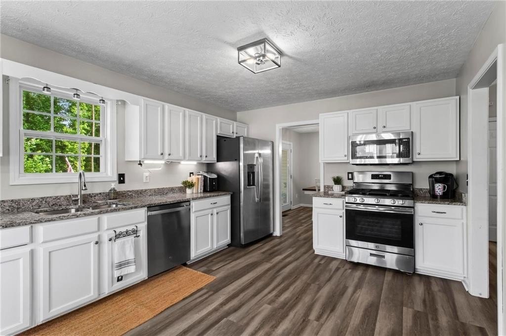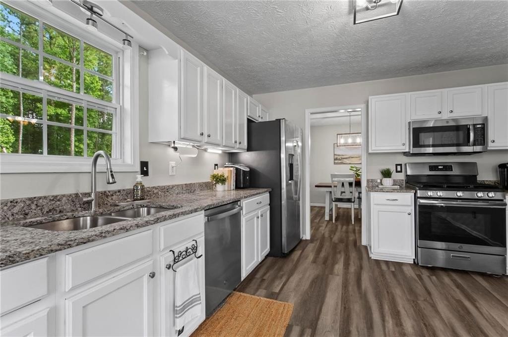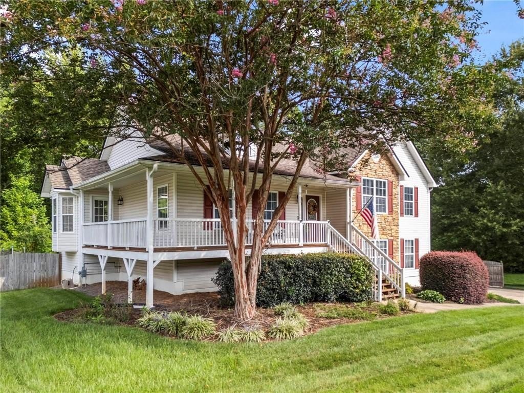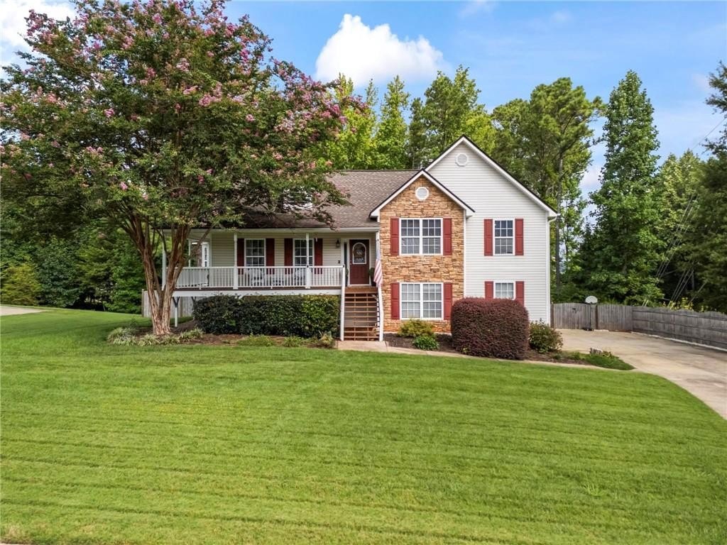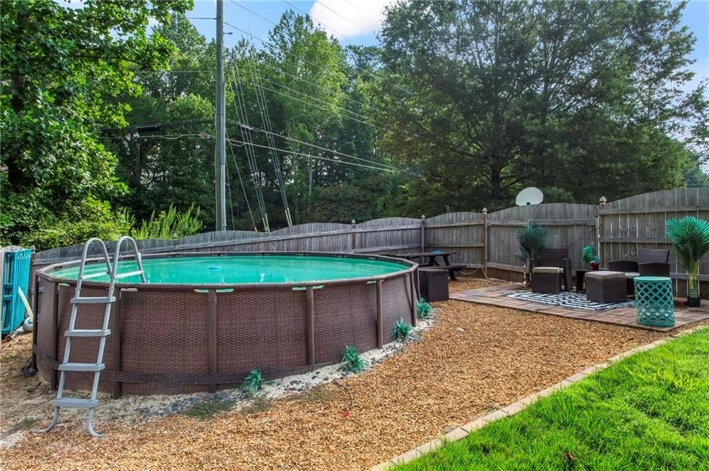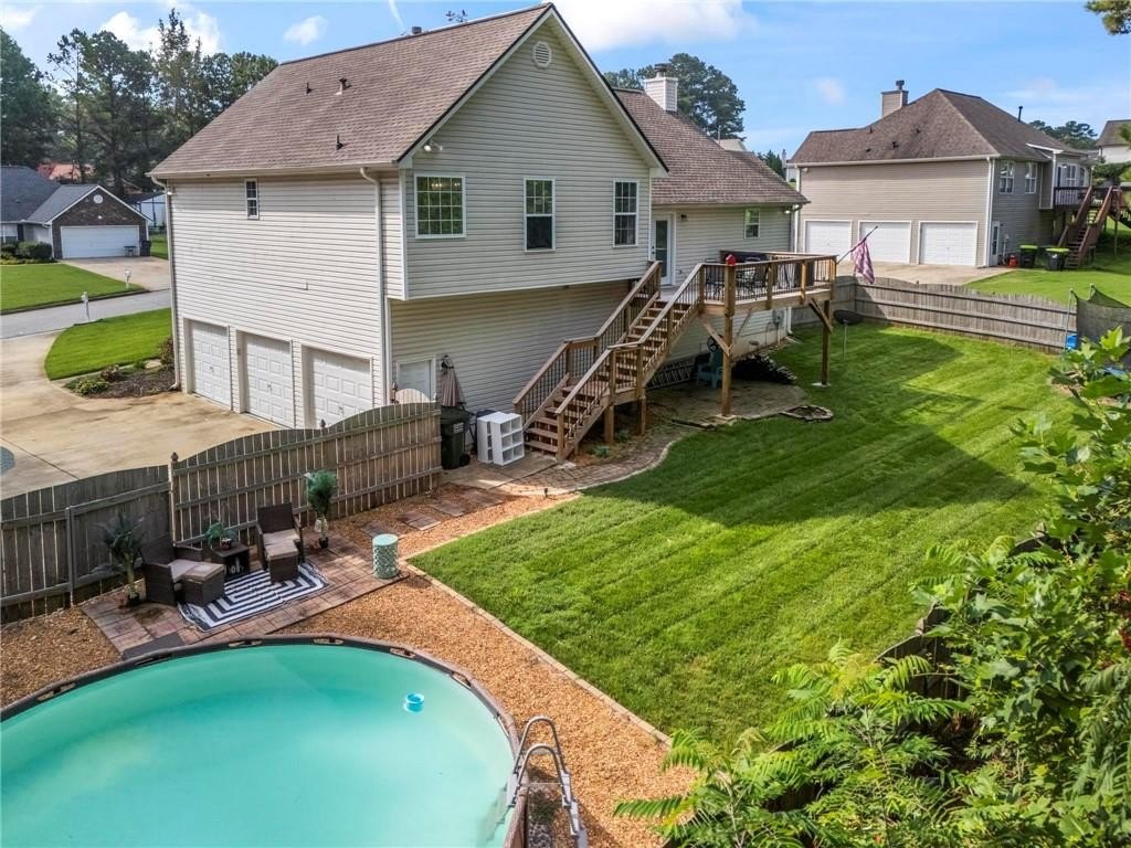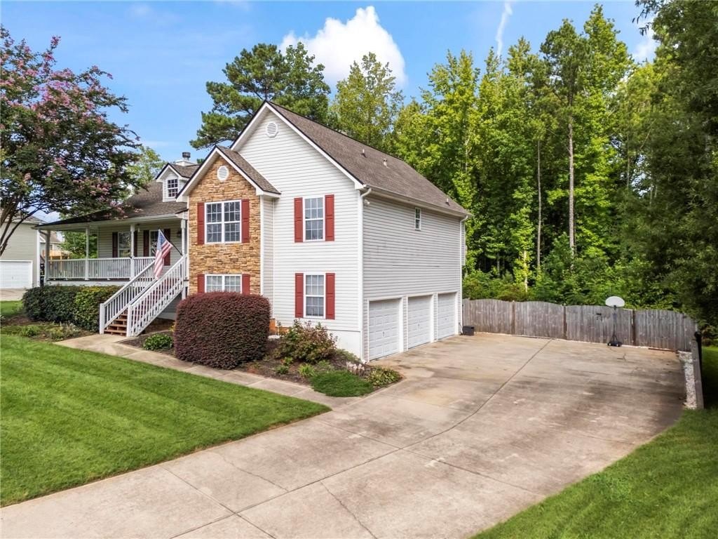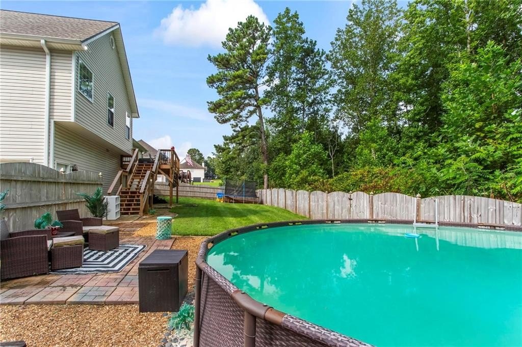 Located in the sought-after North Paulding district, this 3 bedroom, 2 bathroom home features a rare 3-car garage, wrap-around front porch, and an unfinished basement with tall ceilings—perfect for storage or finishing into additional living space. Inside, the spacious living room with fireplace opens into the dining room and updated kitchen with white cabinets, granite countertops, and under-cabinet lighting. Both bathrooms were fully renovated in 2024, and durable LVP flooring has been installed throughout the main living spaces. The fully fenced backyard features an 18’ above-ground pool (installed 2021), and has plenty of space to play. A new back deck with expanded footprint was built in 2024, making the outdoor area ideal for entertaining. The home sits on a large, flat lot that extends well beyond the current fence line (that could easily be extended as the area was cleared and graded just a few years ago). Recent upgrades include new French doors with built-in blinds, new blinds throughout most of the home, updated light fixtures, enhanced landscaping with stone borders and pavers. The home also comes with updated pool equipment, including a pump, sand filter, cover, brush, skimmer, and vacuum, plus a brand-new backup pool pump purchased in 2025 that is still in the box. A new dishwasher (2023) and upgraded exterior lighting add further value. With no HOA and close proximity to schools, shopping, and dining, this home combines convenience, charm, and value in one exceptional package! Call/Text to schedule your showing today!