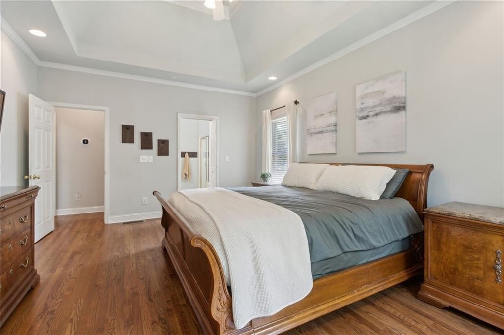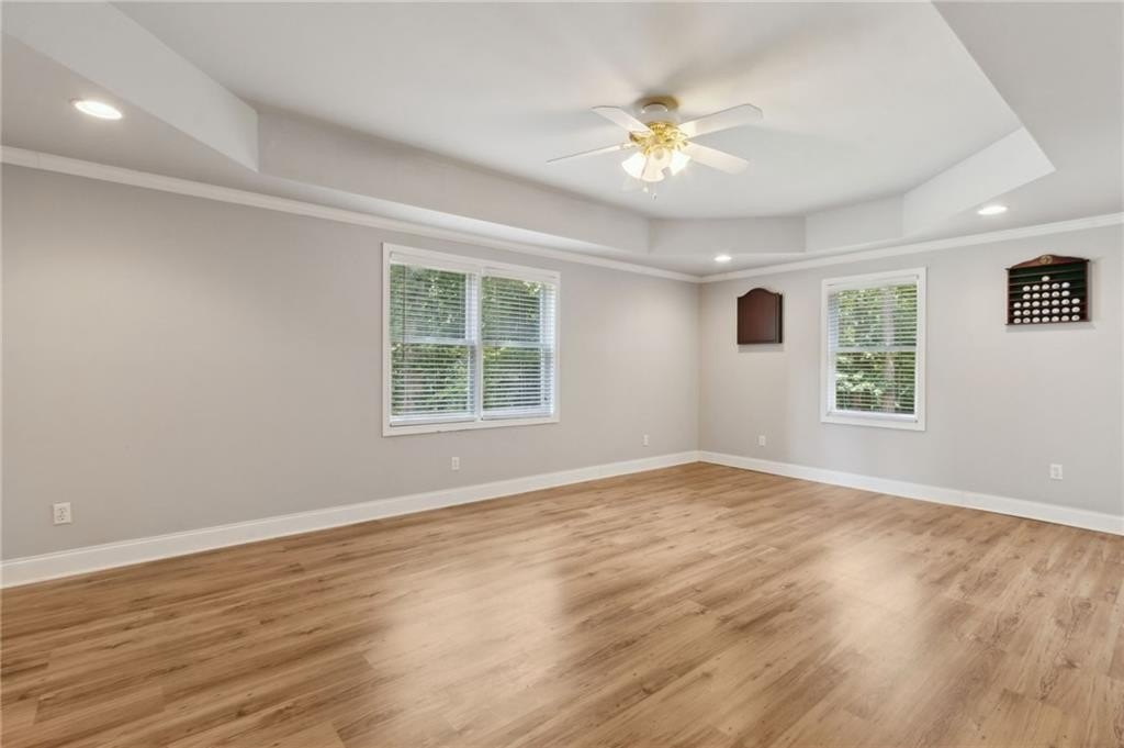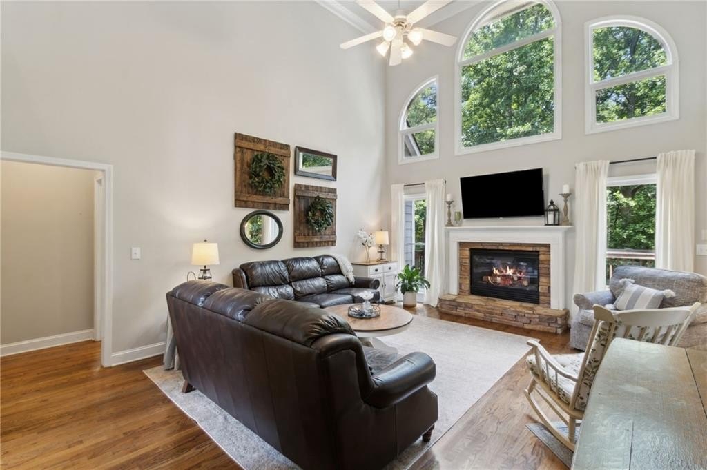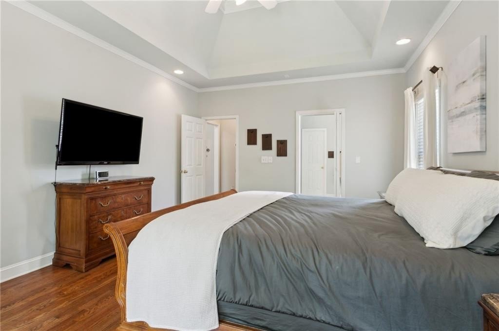Beautiful Home in Sought-After Swim, Tennis & Golf Community! Welcome to this stunning home nestled in one of the area's most desirable neighborhoods. Located just steps from the Trophy Club of Apalachee Golf Course, this property backs up to the scenic 2nd fairway, offering both privacy and a nice view. Step into a dramatic 2-story foyer that opens into a light-filled 2-story great room featuring a cozy gas fireplace, gleaming hardwood floors, and a wall of windows. The formal dining room impresses with elegant tray ceilings, detailed crown molding, chair rail, and shadow box trim. The spacious eat-in kitchen is a chef's delight, complete with a center island, white cabinetry, granite countertops, tile backsplash, and stainless-steel appliances. The primary suite on the main level is a true retreat with a deep tray ceiling, hardwood floors, and views of the private backyard. The luxurious primary bath boasts vaulted ceilings, double vanities, tile flooring, a separate Jacuzzi tub, a shower, and a walk-in closet. Also on the main level is a versatile office or second bedroom with access to a full bathroom-perfect for guests or a home workspace. A large laundry room with cabinets, tile floors, and natural light completes the main level. Upstairs, you'll find spacious secondary bedrooms, including one with its own en-suite full bath-ideal for guests or family. The finished basement expands your living space with a large recreation room, an additional room that can serve as a bedroom, a full bathroom, and unfinished areas for storage or workshop needs. Enjoy the wooded backyard that backs up to the golf course, providing a peaceful and scenic setting. All this is just minutes from top-rated public and private schools, shopping, dining, and more.