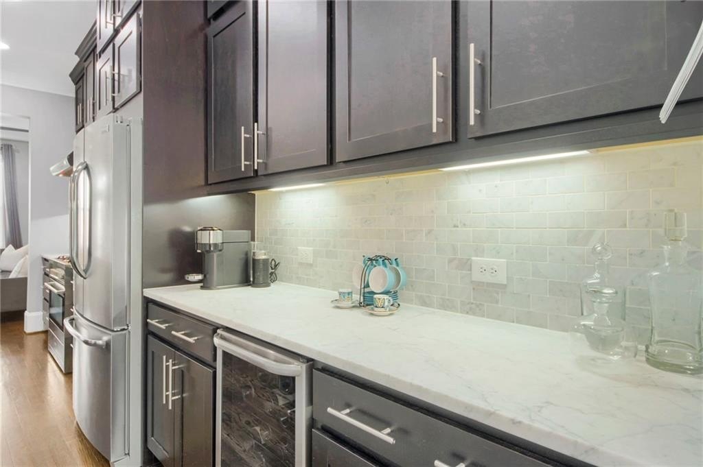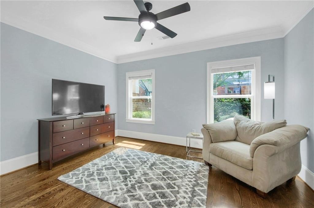 Real, site-finished hardwood floors throughout in this elegant 3BR/3.5BA brownstone with private courtyard. This home delivers rich site-finished hardwoods on every level, creating a cleaner, more luxurious, and more investment-savvy choice. Set in gated Brownstones at Central Park in Historic Old Fourth Ward, you're minutes from the BeltLine, Ponce City Market, Krog Street Market, and multiple mixed-use redevelopments underway ahead of World Cup 2026. Your new home is positioned at the heart of Atlanta's next big growth wave. The open main level is made for entertaining: 10' ceilings, coffered living room with gas fireplace, built-ins, surround sound, and French doors to a covered deck for grilling and dining. The chef's kitchen features freshly refinished marble counters, stainless appliances, a Butler's pantry, and a wine fridge which is perfect for everything from weeknight meals to cocktail parties. Upstairs, the oversized primary suite lives like a boutique hotel: sitting room opening to a private deck, spa bath with body-jet shower and jetted tub, and a customized walk-in closet. A secondary en-suite bedroom on this level is ideal for guests, an office, or a roommate. The terrace level adds a third private suite with generous closet space, great for long-term guests or a quiet office. Everyday living is easy: oversized two-car garage with built-in storage, tankless water heater, and a fenced front yard maintained for you. HOA dues include water, exterior maintenance (recently painted exteriors), landscaping, and access to the community pool, dog park, guest parking, and green spaces. All the benefits of a yard with none of the yard work. Step outside the gates and you're on the BeltLine in minutes. Cold brew at Ponce before work, pickleball courts (coming soon) and parks in the afternoon, Krog Street dinners and O4W nightlife after dark. Weekends mean Freedom Barkway dog park, the Farmer's Market, and easy access to major in-town venues for the sports enthusiast. Brownstones at Central Park offers the walkable, social, low-maintenance lifestyle Atlanta insiders crave-paired with an all-hardwood, move-in-ready interior that stands out from neighboring listings and is perfectly positioned to benefit from the next chapter of O4W growth. Ready for the O4W experience and a smarter long-term play? Book your private showing at 328 Brownstones Circle today.