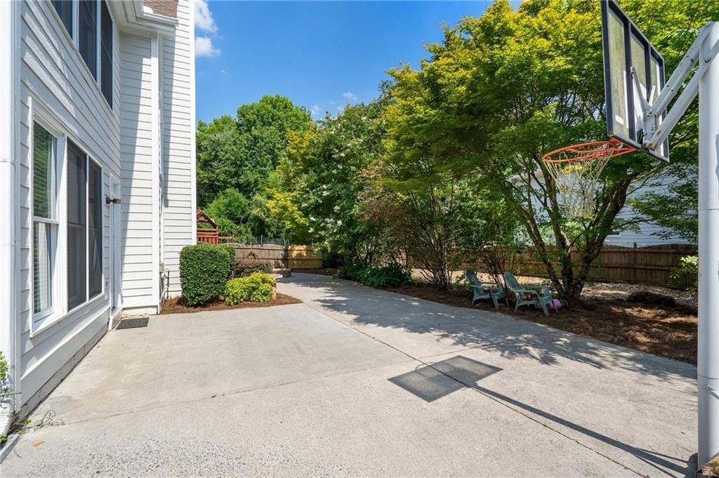 The fully fenced, flat backyard is perfect for play and relaxation, complete with an expansive concrete patio ideal for basketball, summer gatherings, or low-maintenance outdoor living.