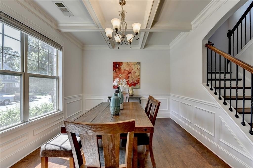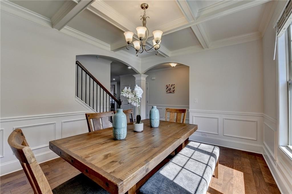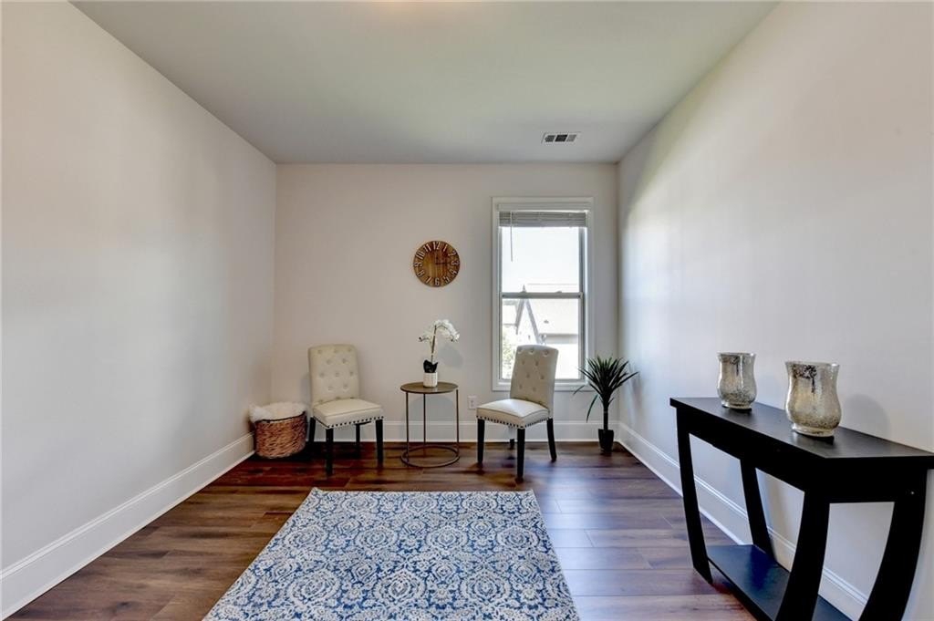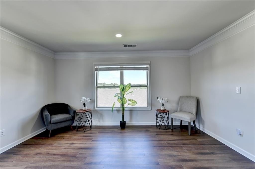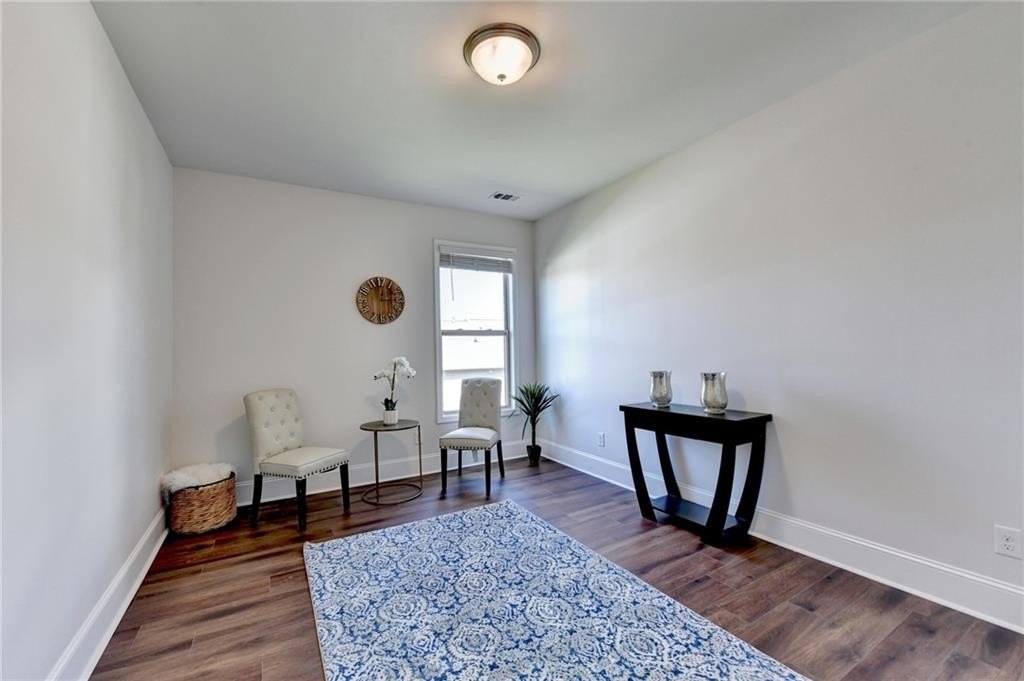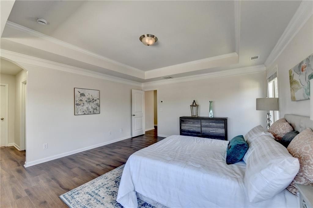 Upstairs, retreat to the expansive primary suite featuring tray ceilings and a cozy sitting area, perfect for a private lounge or media space. The spa-like en-suite bath includes dual vanities, a garden tub, separate shower, and a large walk-in closet. Three additional generously sized bedrooms, a shared full bath, and a laundry room complete the upper level. Recent upgrades include over $25,000 in luxury vinyl plank (LVP) flooring and fresh interior paint.