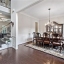 To the left, a cozy office or library with its own fireplace offers the perfect space for work or quiet reading. To the right, the formal dining room is ideal for entertaining, comfortably seating up to 12 guests and featuring elegant tray ceilings that add a touch of sophistication.