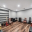 The main-level bedroom with full bath is ideal for guests or multi-generational living. The luxurious owner’s suite includes a private sitting area, oversized walk-in closet, private deck access, and direct entry to the laundry room. The finished basement offers in-wall A/V wiring, a custom stone bar with granite top and wine fridge, and a 500-bottle wine closet with custom iron door. A music room with double-wall sound attenuation adds flexible space.