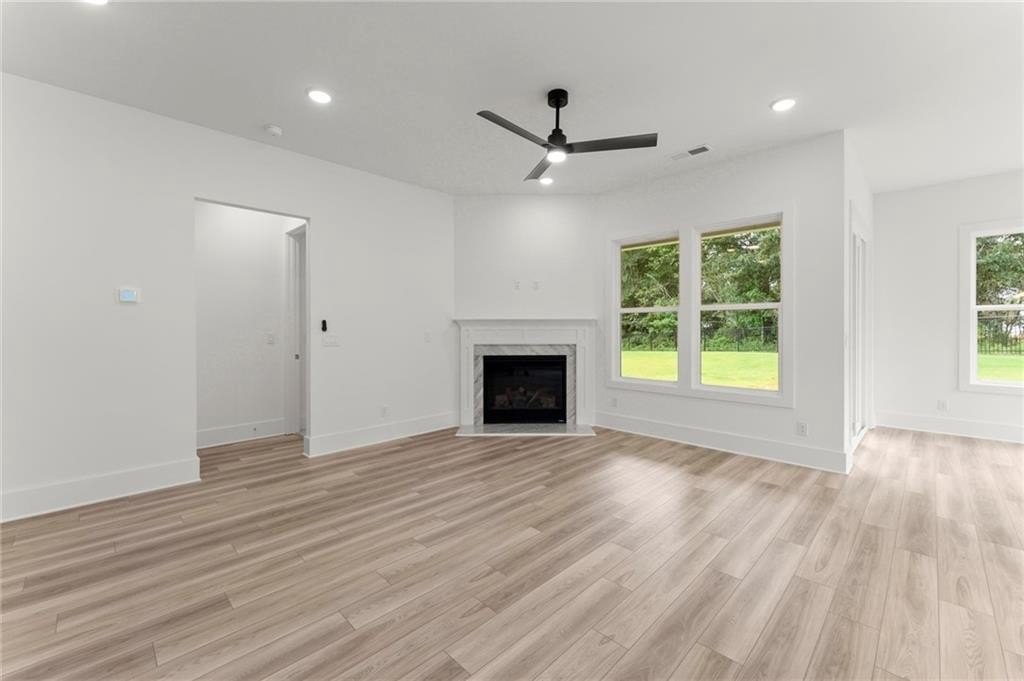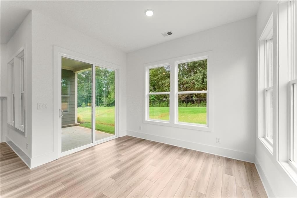Welcome to Hillgrove Preserve, a thoughtfully designed new home community near the Powder Springs and Marietta line, built by family-owned Brock Built Homes, proudly celebrating over 40 years of craftsmanship across Atlanta. The Venice plan is a stunning 1.5-story ranch-style home that combines luxurious main-level living with the flexibility of added space upstairs. The main level features 10-foot ceilings, a bright sunroom, flex room, and a chef-inspired kitchen with a large quartz island, ceiling-height cabinetry, wall oven and microwave, gas cooktop with vented hood, under-cabinet lighting, and designer finishes throughout. The open family room centers around a 42" fireplace, creating the perfect gathering space. The owner's suite on the main level offers a spa-like retreat with quartz countertops and a zero-entry shower. Upstairs, a private bedroom, full bath, and spacious loft provide an ideal setup for guests or multi-generational living. Additional highlights include luxury vinyl plank flooring throughout the main living areas, white oak stair treads, a covered rear porch, welcoming front porch, and a three-car garage. Set within the sought-after Hillgrove High School district, Hillgrove Preserve offers a peaceful setting near shopping, dining, golf, and recreation, with easy access to trails, parks, and more. Move-in ready-schedule your appointment today! Photos are of the actual home. Property is on Supra. Agent now on-site.