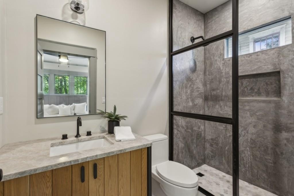 A Beautifully Renovated Modern Bungalow in Historic Grant Park, where Classic Charm meets Contemporary Comfort in one of Atlanta's most beloved neighborhoods. Perfectly positioned just moments from Grant Park, Zoo Atlanta, and the ever-growing Southside BeltLine, this home places some of Atlanta's most beloved destinations right outside your door. Enjoy weekends strolling to the Grant Park Farmers Market, grabbing dinner at The Beacon, or picking up local favorites at Bennett's Market and Deli with breweries, coffee shops, and award-winning dining all close by. A charming Covered Front Porch welcomes you inside to Light-Filled Interiors where Hardwood Floors flow seamlessly through the Living Room, Dining Room, and Chef's Kitchen, creating an inviting and open feel ideal for everyday living and entertaining. The Kitchen is a true showstopper, featuring Custom Floor-to-Ceiling Cabinetry, Quartz Countertops & Backsplash, a Large Island with Breakfast Bar, and Abundant Storage equal parts beautiful and functional. The Primary Suite offers a peaceful retreat with a Private Ensuite Bathroom highlighted by a sleek Glass Shower. Two Additional Bedrooms share a beautifully updated Hall Bathroom with Dual Vanities and a Tiled Tub/Shower, providing comfort and flexibility for guests, family, or a Home Office. Step outside to the Expansive Rear Deck overlooking a Large, Private Backyard complete with a Storage Shed perfect for entertaining, gardening, pets, or simply unwinding in your own urban oasis. Blending Classic Bungalow Character with Modern Updates throughout, this Grant Park gem delivers style, comfort, and walkable convenience in one of Atlanta's most vibrant and sought-after neighborhoods.