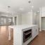 The heart of the home is found on the second level, where the chef’s kitchen, dining, and living areas seamlessly flow together. The gourmet kitchen boasts quartz countertops, full-height custom cabinetry, and top-tier KitchenAid appliances, complemented by a central island ideal for entertaining. Relax in the family room beside the fireplace or step out onto the expansive deck, offering serene views of the vibrant cityscape.