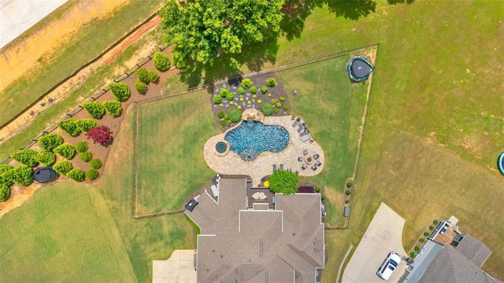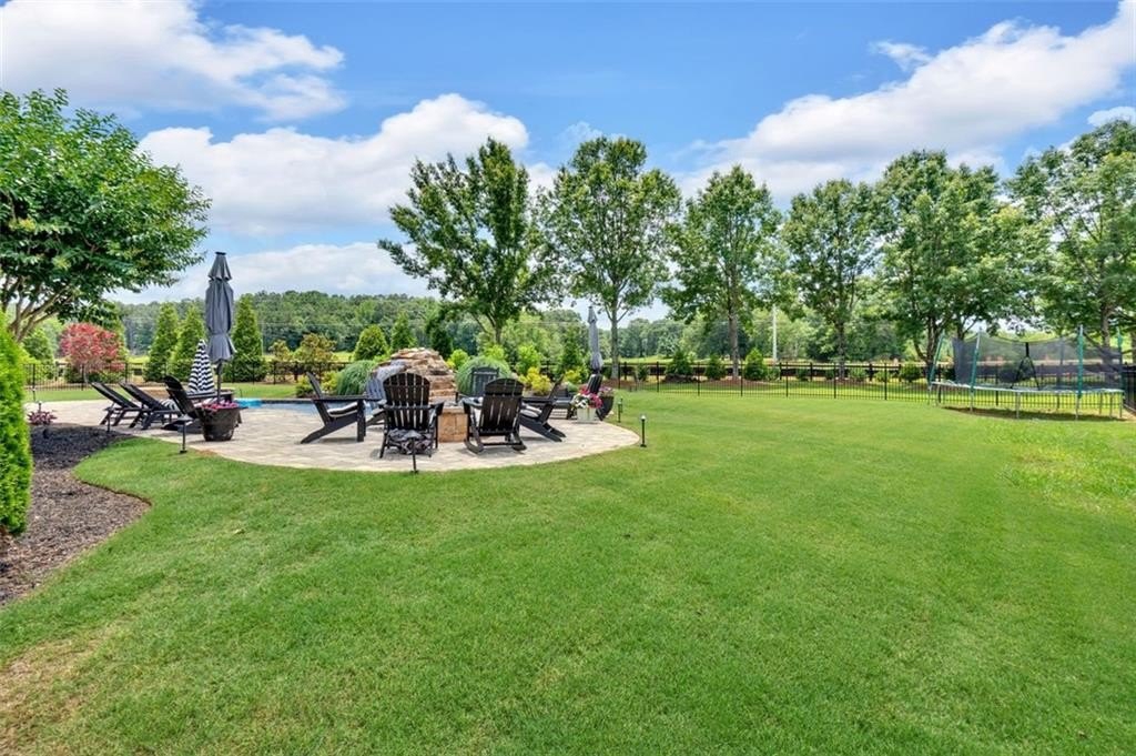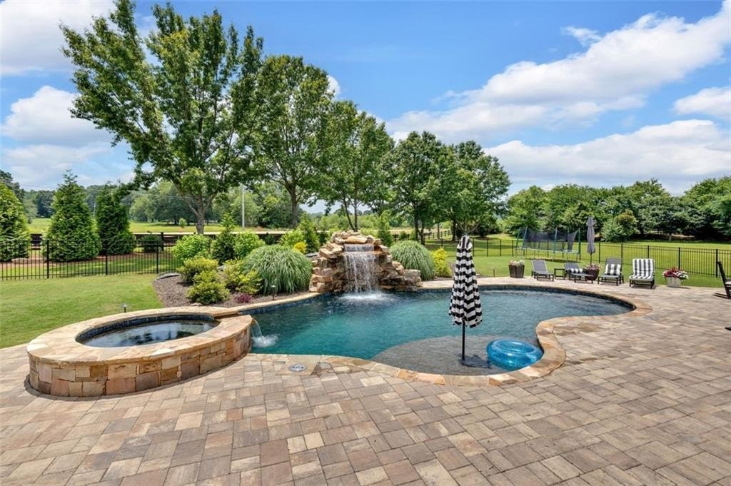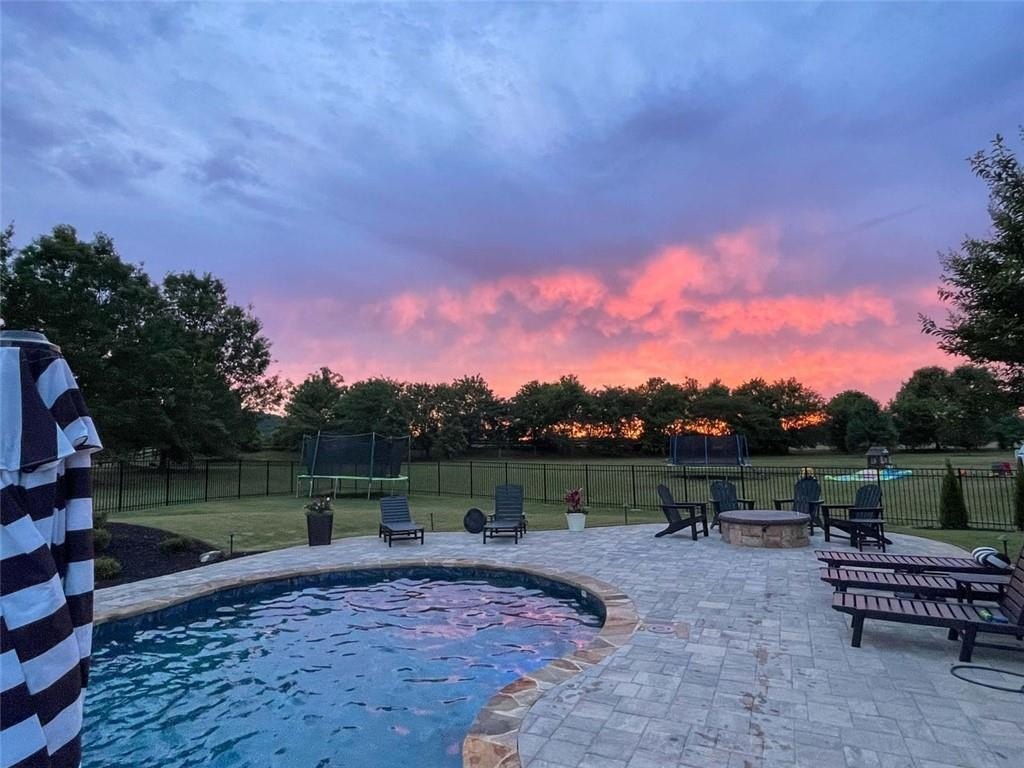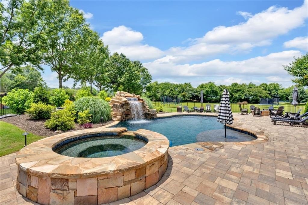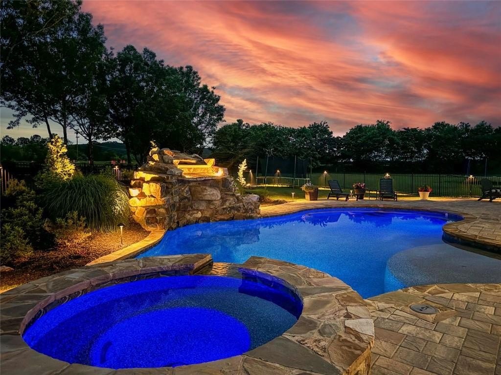 This exceptional home features a backyard oasis that truly sets it apart. Enjoy your own private retreat complete with a custom Pebble Tec saltwater pool, tranquil waterfall feature, elegant gas fire pit, and lush, professional landscaping. The ambiance extends well into the evening with executive landscape lighting in both the front and back, creating the perfect setting for entertaining or relaxing under the stars.