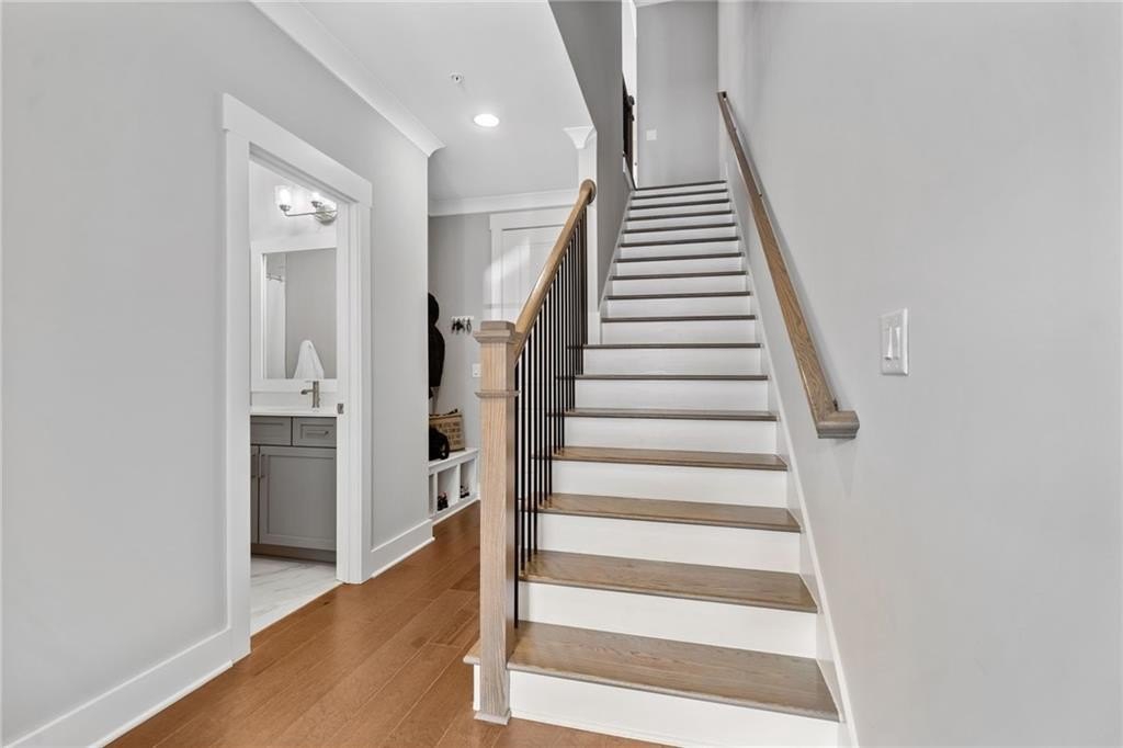 The best value in the neighborhood! Discover elevated living in the heart of South on Main, just steps from the vibrant shops, restaurants, and entertainment of Downtown Woodstock. This exceptional 3-bedroom, 3.5-bath townhome goes above and beyond new construction, showcasing upscale finishes and thoughtful upgrades throughout. Wide-plank luxury vinyl flooring flows through the home, complemented by an oversized two-car garage with built-in storage and a spacious attic-already in place and ready to be finished for additional living space if desired. The open-concept design includes a flexible entry-level guest suite with a full bath, ideal for visitors or a private home office. The chef's kitchen is a showstopper, featuring custom cabinetry, premium appliances including a built-in refrigerator and espresso machine, and refined designer details. Upstairs, unwind in the expansive primary suite with custom walk-in closets and a spa-inspired bath highlighted by elegant cabinetry and finishes. Outdoor living shines with a covered second-level front deck plus an additional rear open-air deck-perfect for morning coffee or evening gatherings. Enjoy the ultimate combination of style, comfort, and walkability in one of Woodstock's most sought-after communities. South on Main offers resort-style amenities including a pool, clubhouse, parks, rentable garden plots, amphitheater, dog park, scenic walking trails, and a cozy fire pit area.