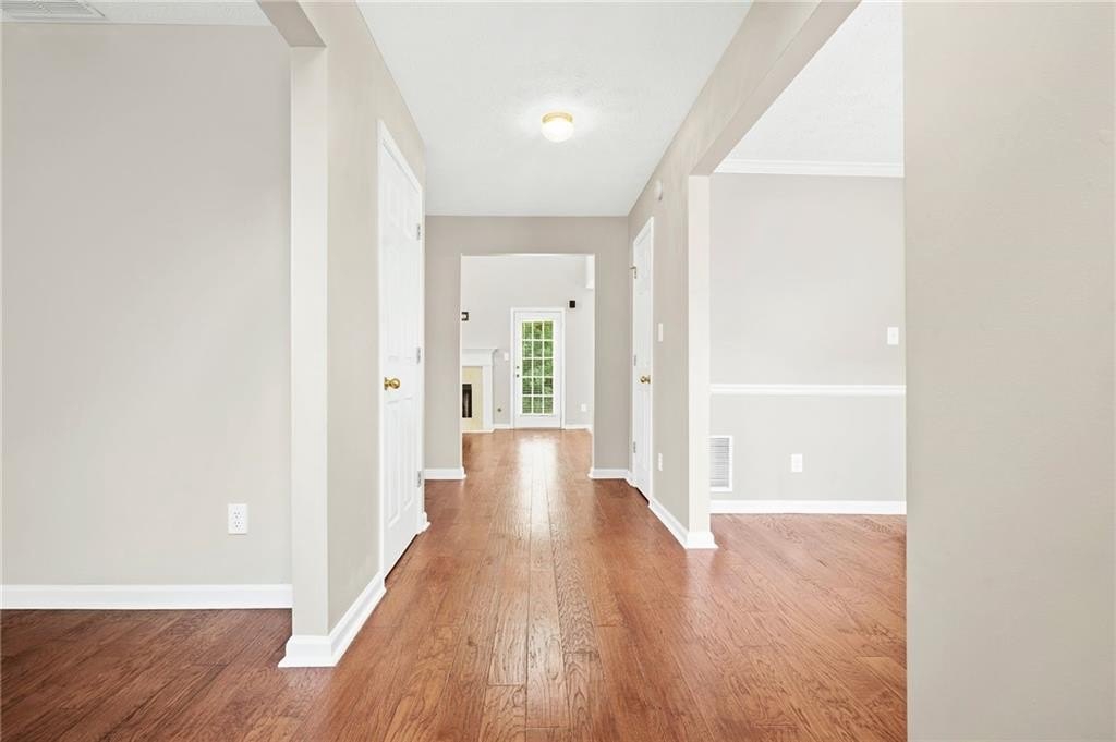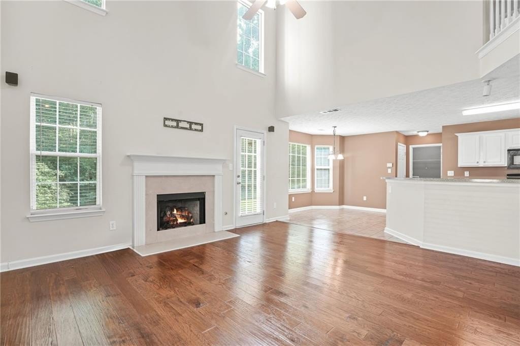 Welcome to 5706 Spring Mill Circle, a spacious and well-maintained 4-bedroom, 2.5-bathroom home located in the heart of Lithonia, GA. Boasting over 2,300 square feet, this two-story residence offers a thoughtful layout perfect for both everyday living and entertaining. Step inside to discover hardwood floors throughout the main level, a formal dining room for special gatherings, and a bright sunroom ideal for relaxing or working from home. The kitchen features classic white cabinetry, tiled floors, a gas grill cooktop, and overlooks the expansive living room with soaring ceilings, a cozy gas fireplace, and a built-in surround sound system for the ultimate media experience. Also on the main level are a convenient laundry room and a half bath. Upstairs, the oversized primary suite impresses with tray ceilings, a large ensuite bath with double vanities, separate tub and shower, and a spacious walk-in closet with a window for natural light. Three additional bedrooms offer plenty of space for family, guests, or a home office. The upstairs hallway provides an open view to both the front foyer and living area below, adding to the home's open and airy feel. Located in a quiet, established neighborhood, this home offers peaceful suburban living with convenient access to I-20, I-285, Stonecrest Mall, Arabia Mountain trails, parks, dining and schools. With solid bones and incredible potential, this home is move-in ready with room for your personal touch. Don't miss the chance to make this gem your own!