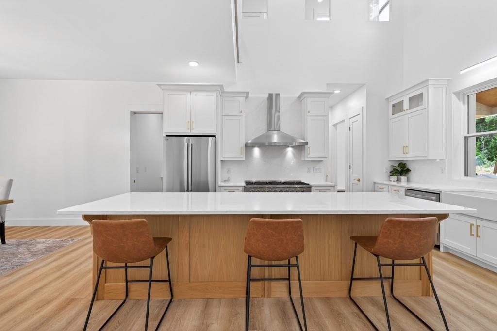 LOCATION, LOCATION, LOCATION!! This custom-built master-on-main home is located in the HIGHLY SOUGHT AFTER BUFORD CITY SCHOOL DISTRICT, with the added bonus of lower Hall County taxes! Nestled on a private 1.15-acre lot and set back from the road with a 350-foot paved driveway, this one-of-a-kind property offers both seclusion and convenience-just a few minutes from Lake Lanier, schools, shopping, restaurants, downtown Buford, and I-985. As you step inside the main level, you're greeted by soaring 10-foot ceilings that create a bright and open atmosphere. A formal dining room sets the tone for elegant entertaining, while the heart of the home-a massive designer kitchen-boasts stunning quartz countertops, an oversized 11-foot island, an 8-burner gas range, and a walk-in pantry featuring custom cabinetry. Just off the kitchen, you'll find a convenient mudroom and half bath. The living room is truly a showstopper with its 22-foot vaulted ceilings, a dramatic floor-to-ceiling fireplace, and custom built-in shelving. The owner's suite, located on the main level, is a private retreat complete with direct access to a spacious 722-square-foot covered deck. The en-suite offers a spa-like experience with an oversized soaking tub, a massive walk-in shower equipped with dual shower heads and built-in Bluetooth speaker, and a large double vanity. Also on the main level is a beautifully crafted home office with custom built-in cabinetry, ideal for those working remotely. The laundry room is thoughtfully placed on the main floor and includes a convenient laundry chute from the upper level. Upstairs, you'll find four generously sized bedrooms, each with access to two Jack-and-Jill bathrooms that feature floor-to-ceiling tiled showers. A large bonus room offers endless possibilities-from a playroom to a home theater or guest suite. The unfinished daylight basement adds an additional 2,083 square feet and is already stubbed for a full bath and wet bar or second kitchen, allowing you to expand the living space to suit your needs. Outdoor living is just as impressive, with a 722-square-foot covered back deck overlooking a sprawling, flat backyard that's perfect for entertaining or adding a pool. The home also features a tankless water heater, and a 930-square-foot three-car tandem garage with brand-new epoxy flooring. This is truly a rare opportunity to own a one-of-a-kind home in the nationally top-rated Buford City School District. Thoughtfully designed, impeccably built, and ideally located-this home checks every box. Come see it before it's gone!