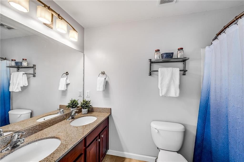 Need help with closing costs, a rate buy-down, or HOA allowances? Let's talk. Discover this stylish, move-in ready three-story townhome in the heart of the Upper Westside, offering unbeatable access to Buckhead, Vinings, Midtown, and the airport. Located in a gated community just minutes from Publix, Topgolf, and popular dining and shopping, this home blends comfort, style, and convenience. Step inside to brand new hardwood floors and plush new carpet throughout. The open-concept main level is perfect for everyday living and entertaining, featuring a bright family room with access to a covered front porch and a modern kitchen with granite countertops, a large island, stainless steel appliances, and French doors that open to a private back deck. All three spacious bedrooms feature private en-suite bathrooms, plus a convenient half bath on the main level for guests. The lower level offers a versatile flex space ideal for a home office, guest suite, or workout room, complete with a full bath and large closet. Enjoy resort-style amenities in this secure community, including a pool, dog park, and on-site security. A one-car garage plus driveway parking makes coming home easy.