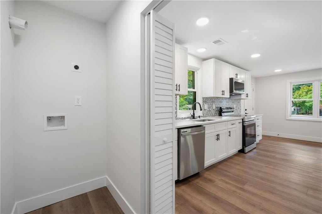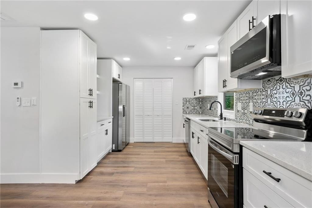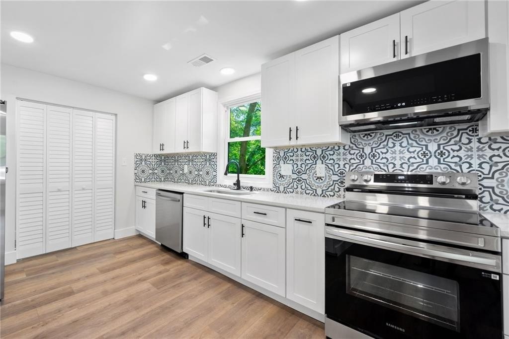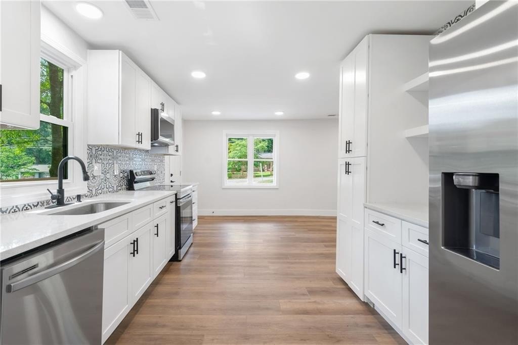 THIS HOME QUALIFIES FOR A CONVENTIONAL LOAN WITH 100% FINANCING AND NO PMI AT A VERY COMPETITIVE INTEREST RATE. REACH OUT FOR DETAILS. This beautifully remodeled stepless ranch is truly move-in ready, offering the perfect blend of style, comfort, and convenience. Every major component has been replaced — including all new electrical, HVAC, plumbing, roof, and water heater — giving you peace of mind for years to come. Step inside to a bright, open layout filled with modern finishes, from sleek flooring and contemporary lighting to a designer kitchen with stainless steel appliances and updated cabinetry. The spacious floor plan offers easy, single-level living with no stairs. Enjoy a private, fully fenced backyard with a large storage shed, perfect for tools, hobbies, or extra storage. Whether you’re relaxing outdoors or hosting friends, this backyard is ready for it all. Located within walking distance of Peachcrest Elementary and just minutes from the interstate, this home offers unbeatable access to schools, shopping, dining, and everything metro Atlanta has to offer. Don’t miss your chance to own a like-new home in an established neighborhood — modern comfort, prime location, and no work needed!