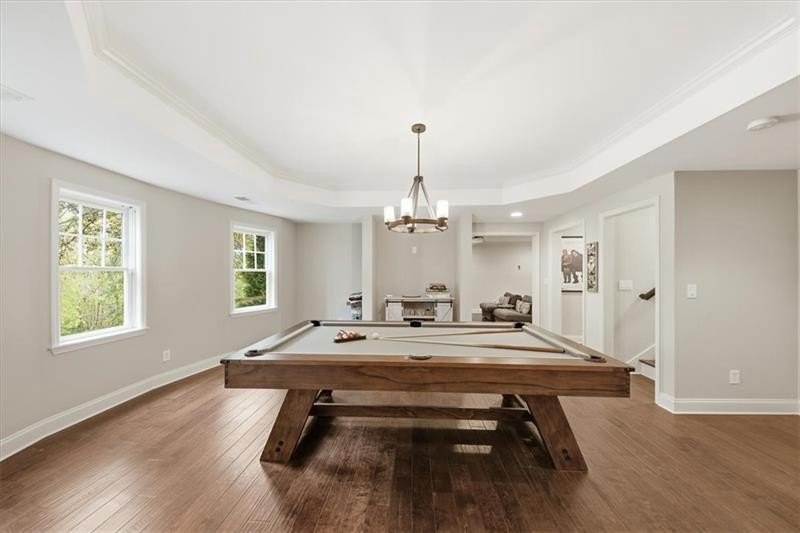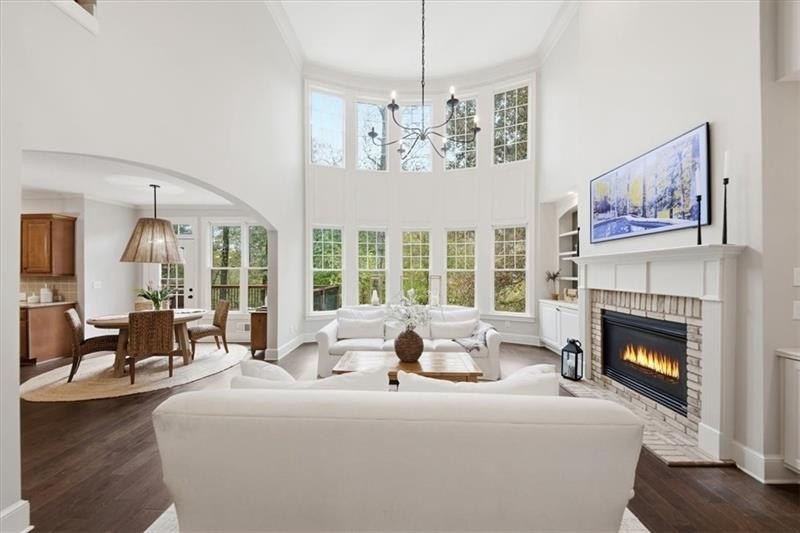 Resort-Style Living in a the exclusive Woodmont Golf and Country Club. Set within one of Cherokee County's most desirable country club neighborhoods, this exceptional home combines timeless craftsmanship, modern upgrades, and resort-style amenities. New roof and gutters, November, 2025; that's a $35,000 upgrade! Perfectly positioned on a beautifully landscaped lot, the property features a sparkling saltwater pool & spa, lush green space, and an additional yard/rec area beyond the horse fence-ideal for a play area, mini soccer field, or garden retreat. Inside the home features soaring ceilings, a wall of windows, and new designer lighting from Pottery Barn. The upgraded floor plan offers expansive living areas with larger rooms, bay windows, and taller ceilings that create an elevated sense of scale. The open-concept, eat-in kitchen with island flows effortlessly into the fireside family room-an entertainer's dream with dramatic views of the pool, spa and private yard. An oversized dining room accommodates 12 people easily, formal living room or private office, and guest suite complete the main level. Upstairs, the luxurious primary suite is a true retreat, featuring a spacious sitting area, spa-inspired bath, and dual walk-in closets. A large adjoining bonus room offers endless possibilities-it can easily be transformed into a custom closet, private lounge, or home office. Secondary bedrooms are generously sized and filled with natural light, providing flexibility for family, guests, or creative use. The finished terrace level extends the home's versatility with an expansive recreation area, a media room, gym, or playroom, along with a possible bedroom, finished, full bathroom, and space for a future kitchenette-ideal for an au pair or in-law suite. Outdoors, enjoy a private oasis with a heated saltwater pool and spa, sun deck for sunbathing, and an open green space for play or entertaining. Mature landscaping and serene views enhance the feeling of a true retreat. Located in an amenity-rich country club community offering championship golf, tennis, swimming, and two onsite restaurants, this home delivers the perfect balance of leisure and luxury. Just minutes from Roswell, Milton, and Alpharetta, it offers the best of Cherokee County living with access to top schools, shopping, and dining.