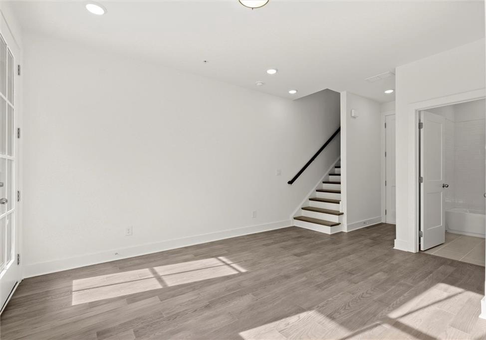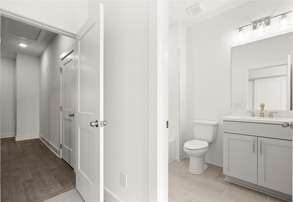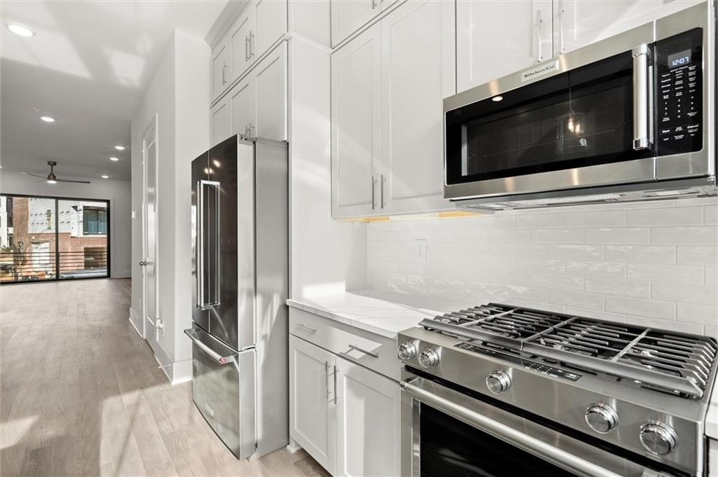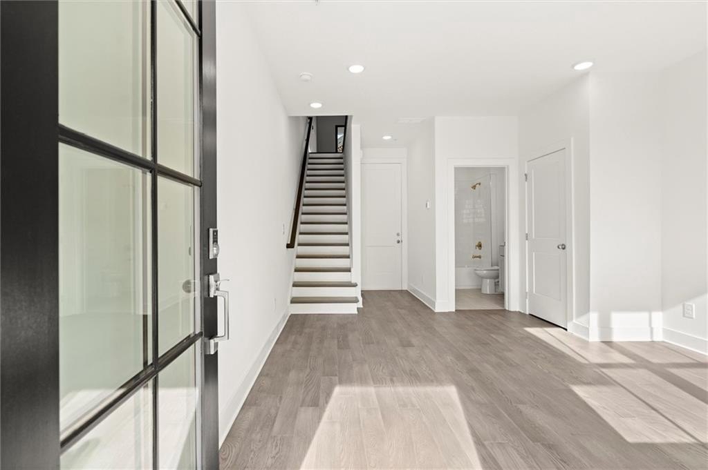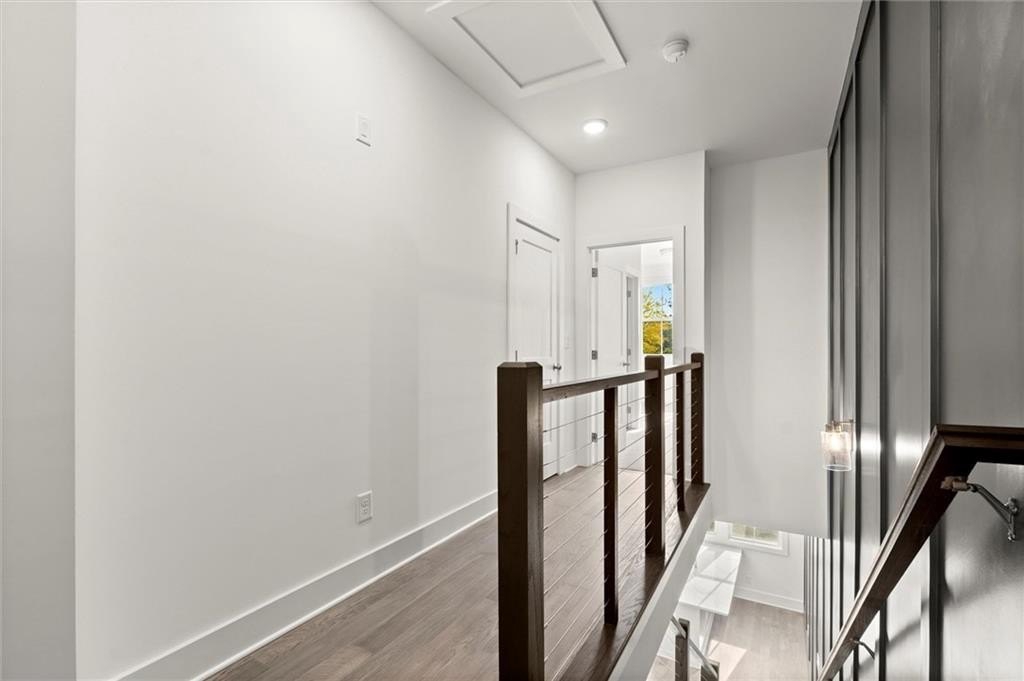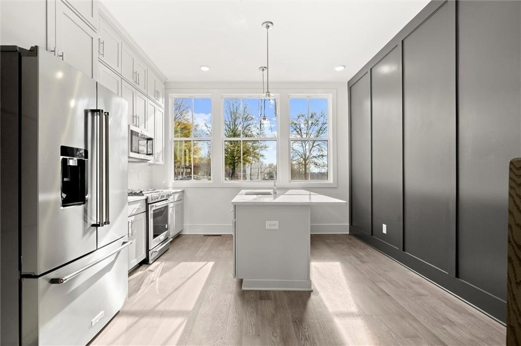 Welcome to The Anniston at The Gathering, a contemporary townhome offering 1,644 sq. ft. of stylish, modern living with 2 bedrooms, a flex space and 3 full baths. Thoughtfully designed and professionally curated, this residence showcases elevated finishes and refined details throughout. Designed for comfort and versatility, the home features numerous upgrades, including custom trim accents in the flex room, living room, stairwell and primary bedroom. The terrace level features a flexible space ideal for a home office, gym, or guest area, complete with a full bath and access to the two-car garage. On the main level, enjoy 10-foot ceilings and an open-concept layout connecting the kitchen, dining, and living areas. The gourmet kitchen includes KitchenAid appliances, quartz countertops, and maple cabinetry, opening to a covered deck for relaxing or entertaining. Upstairs, the primary suite offers a spacious walk-in closet and a spa-inspired bath with dual vanities, quartz counters, and a glass-enclosed shower. A secondary bedroom with its own full bath provides comfort and privacy for guests or family. Located in The Gathering, just minutes from downtown Alpharetta, Avalon, and top-rated schools, residents enjoy direct access to the Alpha Loop plus community amenities including a garden, firepit, and dog park. Even more exciting-plans are underway for a future mixed-use development featuring restaurants, shops, and entertainment, creating an urban lifestyle experience in a suburban setting with unmatched convenience. This home is move-in ready-schedule your tour today! Photos are a representation of actual home. Agent on-site Mon, Tues & Sat (10-6) and Wed & Sun (1-6).
