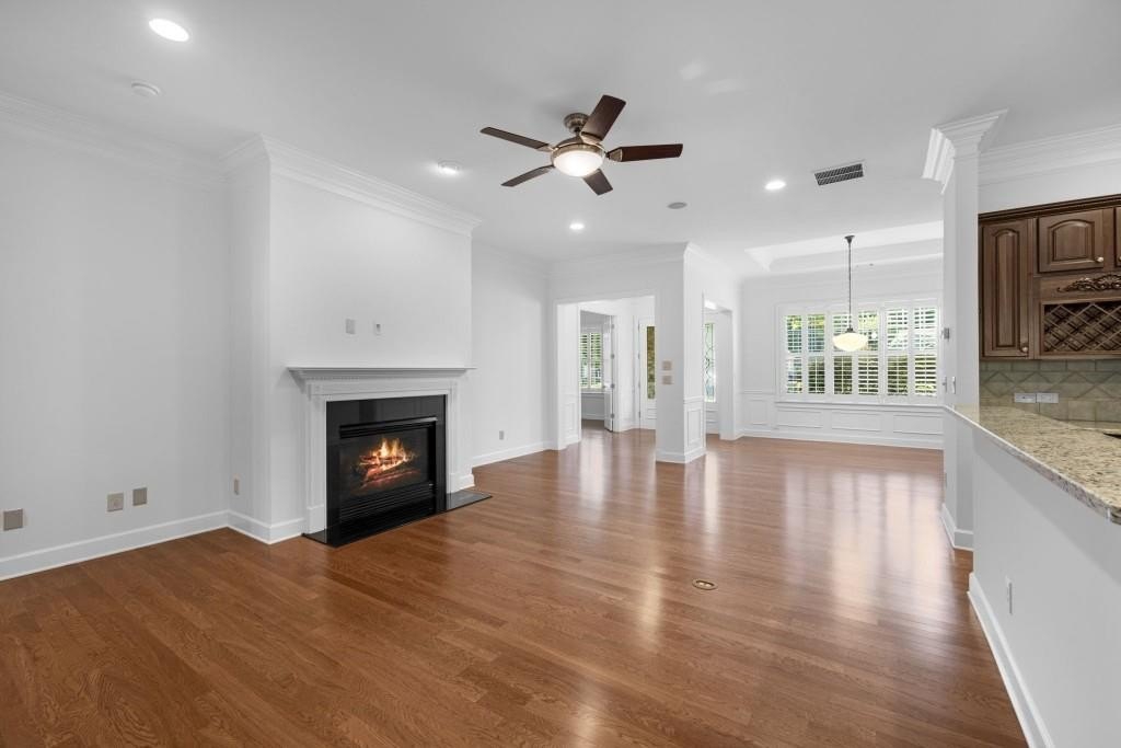Welcome home! This beautifully designed 3-bedroom, 2.5-bathroom home has been freshly painted throughout and sits on a large corner lot overlooking the cul-de-sac. This highly sought after Alabaster floor plan seamlessly connects the living, dining, and kitchen areas and is perfect for entertaining family and friends. Along with two large guest bedrooms, this home offers a sunlit den or office space off the entry way that would offer a lovely respite from the bustling family room. Through the living room you will find the oversized owners suite with 12 ft. vaulted ceilings, two massive walk-in closets and an equally impressive en suite bathroom. Located in a vibrant active adult community, residents enjoy exclusive access to a fantastic clubhouse, greenhouse, pool, and a variety of amenities tailored for an engaging lifestyle. Nestled in the heart of Soleil, this home is ideal for those seeking a blend of tranquility and activity.