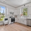 The kitchen has been completely updated to meet the demands of today's culinary enthusiasts. Featuring contemporary cabinetry, sleek countertops, and stainless-steel appliances, this space is both functional and aesthetically pleasing. A classic farmhouse sink adds a touch of traditional charm, while the overall design ensures efficiency and ease of use. Adjacent to the kitchen, the dining area provides a dedicated space for meals, offering a relaxed atmosphere for both everyday dining and special occasions.