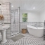 The home's two bathrooms have undergone complete transformations, now presenting as modern, spa-like retreats. Each bathroom features new fixtures, stylish vanities, and contemporary tiling, offering a fresh and clean environment. The primary bathroom includes a generous walk-in shower and a freestanding soaking tub, creating a private oasis for unwinding after a long day. The secondary bathroom is equally well-appointed, ensuring comfort for all occupants and guests.