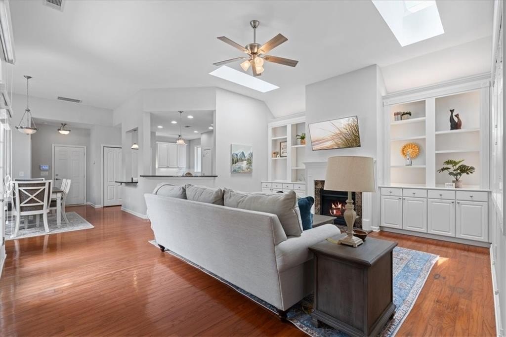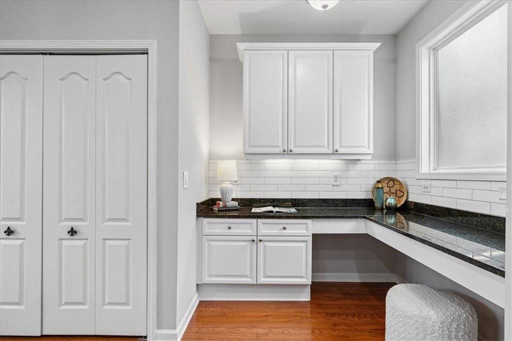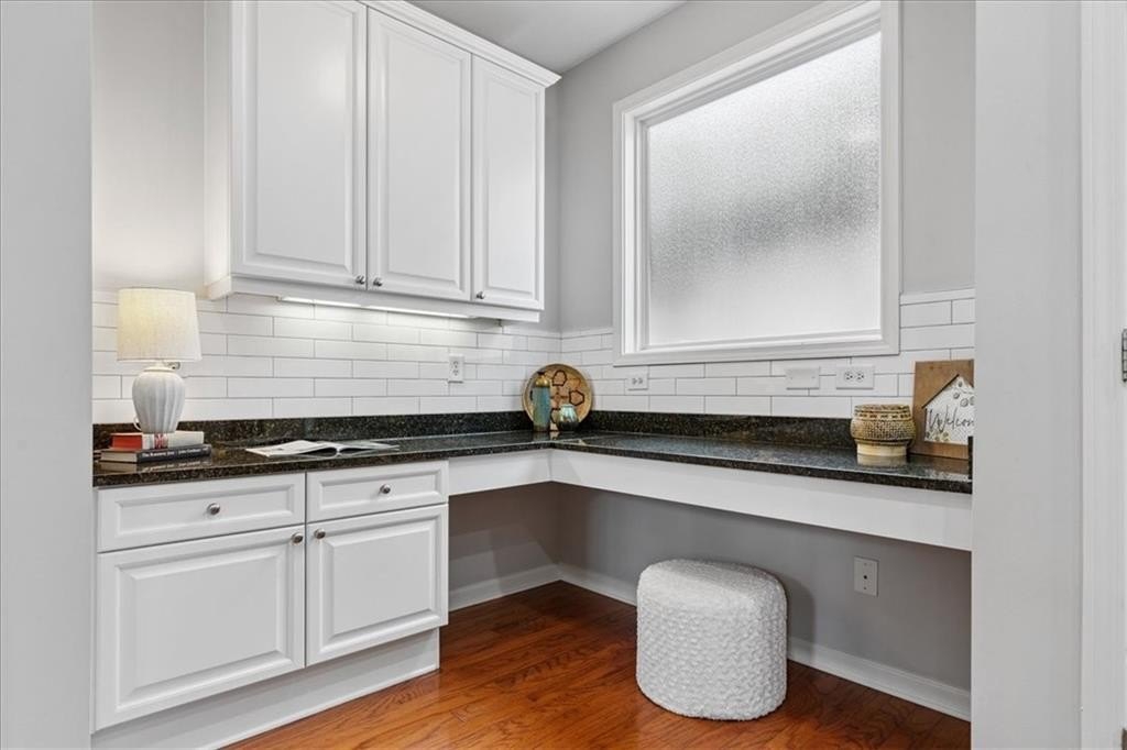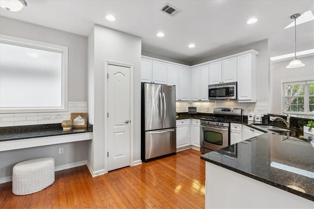 The spacious kitchen is a standout, featuring a huge walk-in pantry, a built-in desk area, updated appliances, counters, backsplash, and under-cabinet-lighting. The kitchen flows seamlessly into the dining area and light-filled great room—creating the perfect setting for everyday living and entertaining. Enjoy your morning coffee or wind down in the evenings in your private courtyard.