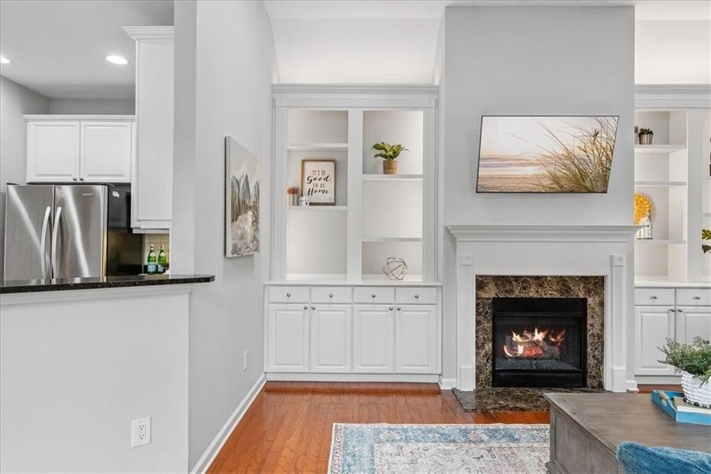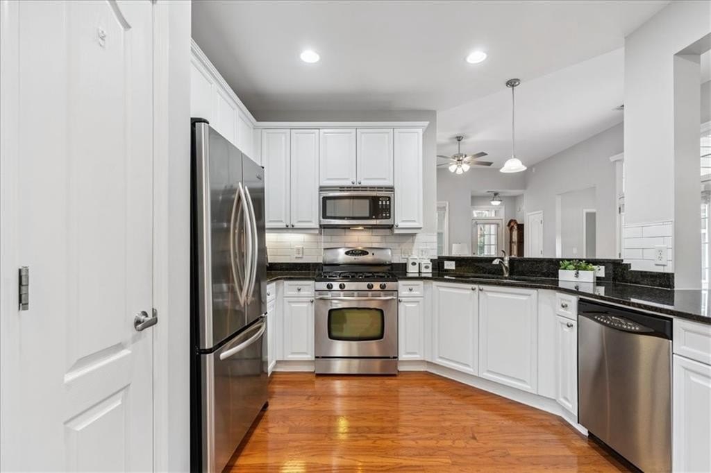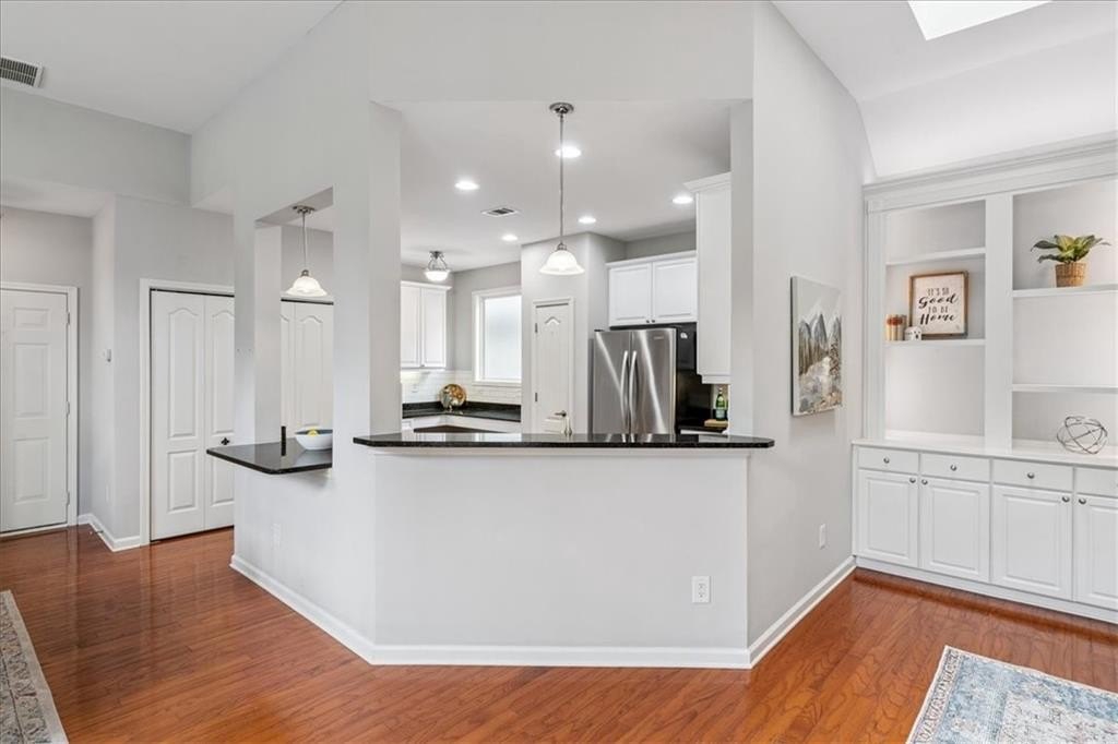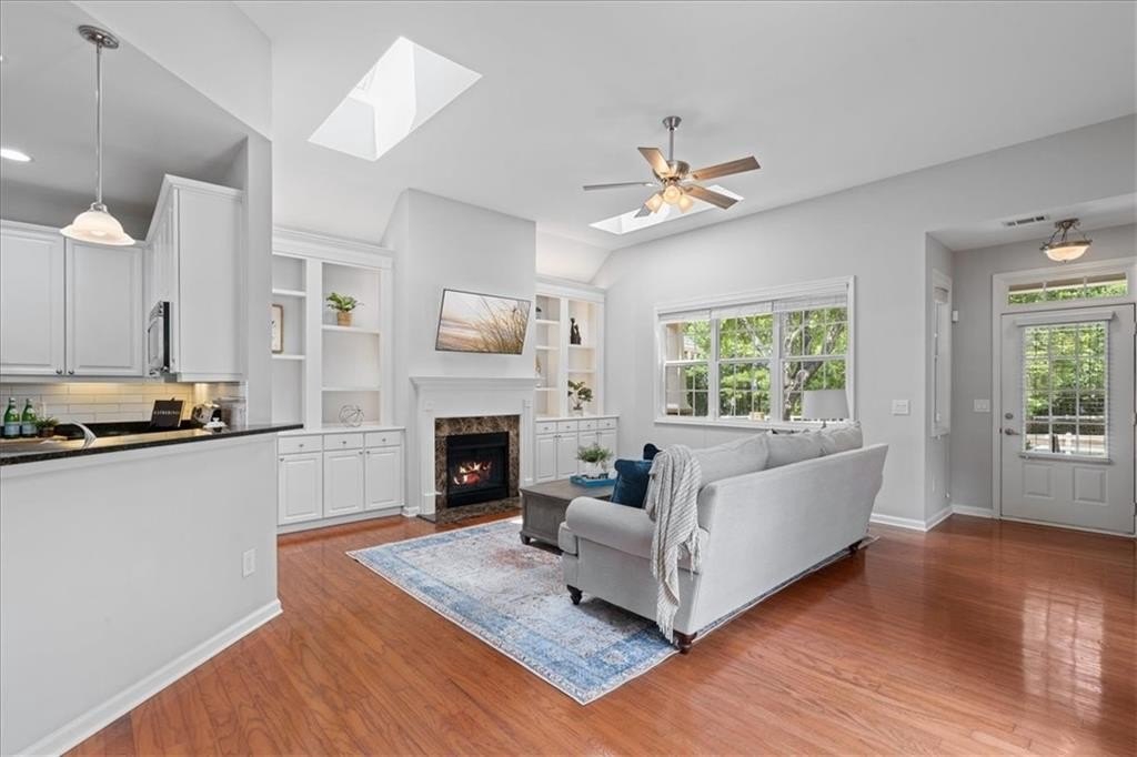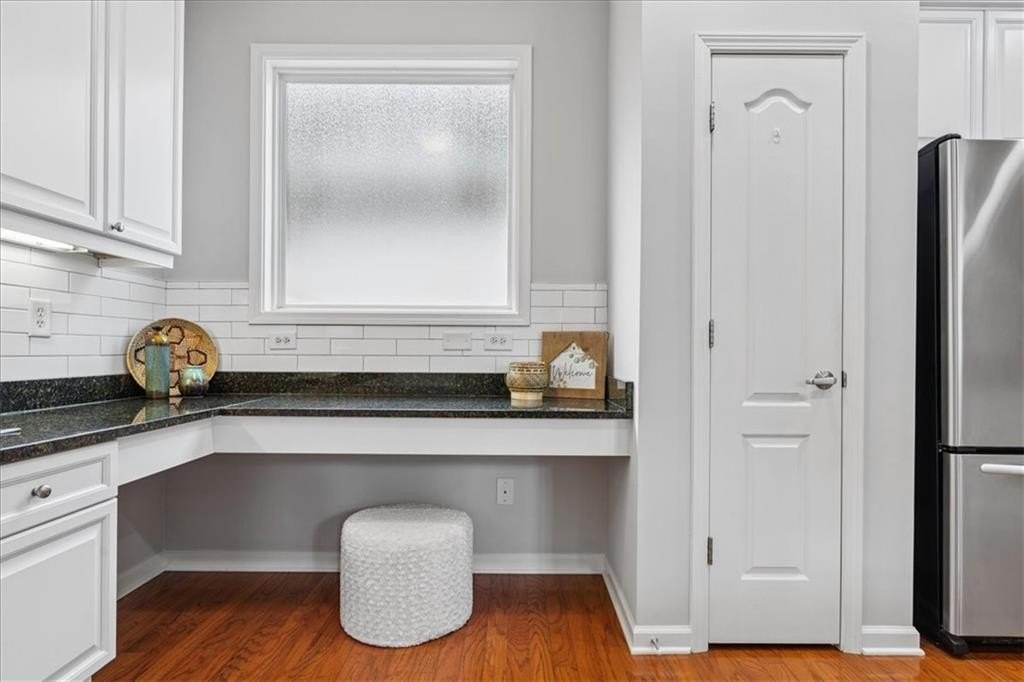 The spacious kitchen is a standout, featuring a huge walk-in pantry, a built-in desk area, updated appliances, counters, backsplash, and under-cabinet-lighting. The kitchen flows seamlessly into the dining area and light-filled great room—creating the perfect setting for everyday living and entertaining. Enjoy your morning coffee or wind down in the evenings in your private courtyard.