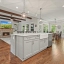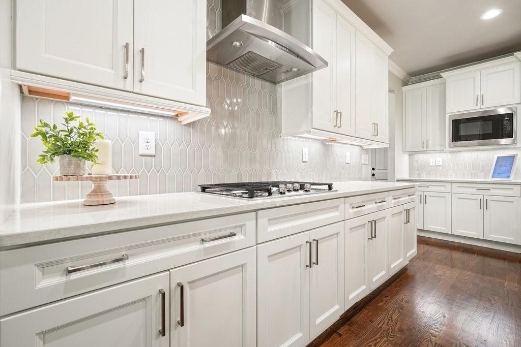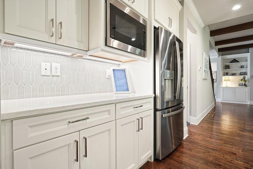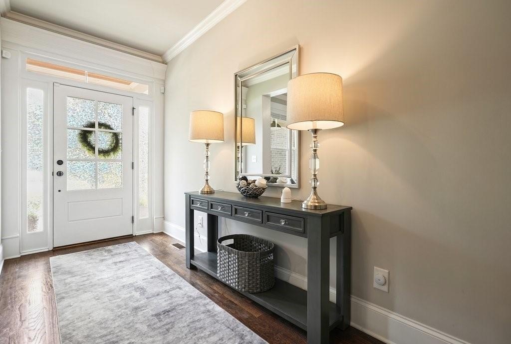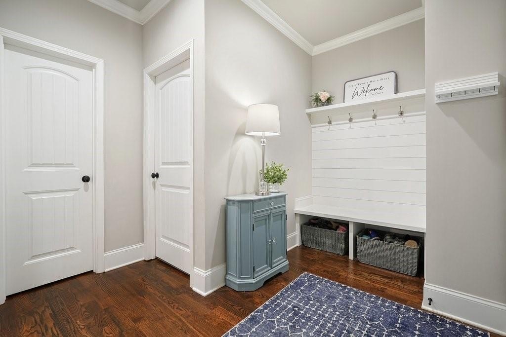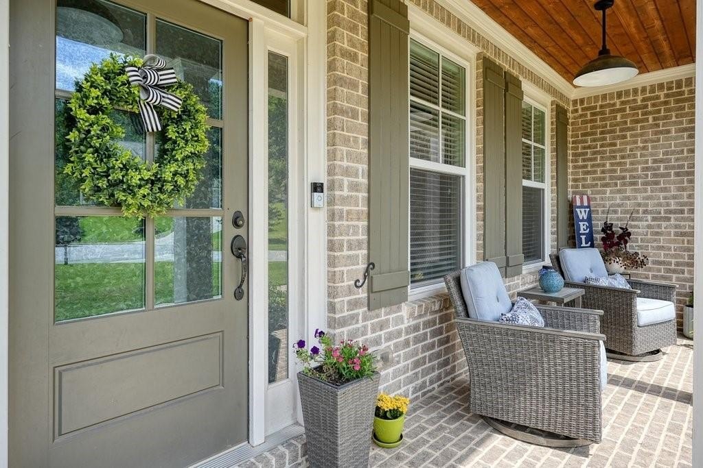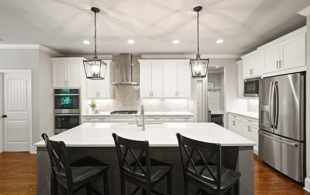 As you enter into the foyer you are welcomed to a sophisticated dining room or versatile sitting room with stunning hardwood floors. Then make your way into an open concept family room featuring a cozy brick gas lit fireplace, flanking custom built-ins. Along with rustic cedar ceiling beams. The open- concept kitchen is a chef's dream featuring gorgeous Quartz counters, double oven and gas cooktop. The large island with farmhouse sink, is an entertainers dream. A walk-in pantry cleverly hidden behind the kitchen. An elegant butler's pantry adds sophistication and ease for entertaining. A mudroom off the three-car garage with custom built-ins. An ample spaced laundry room, includes a convenient main-level laundry room with a sink. A powered room right off the kitchen is prefect for guest.