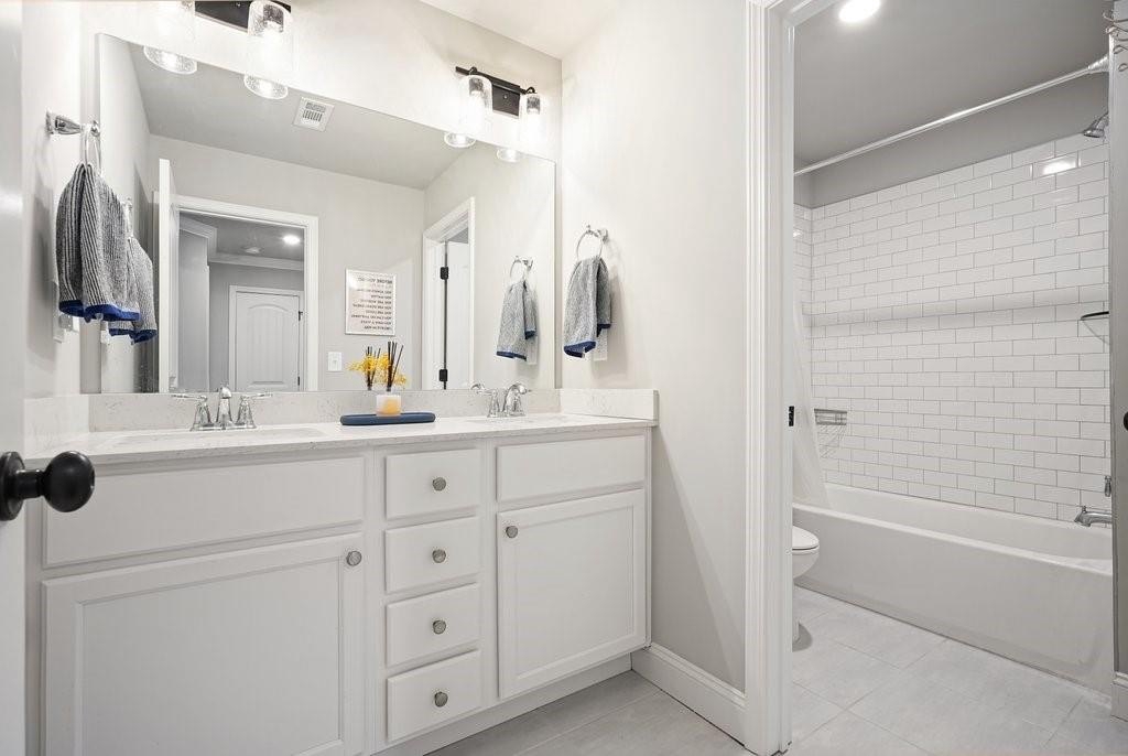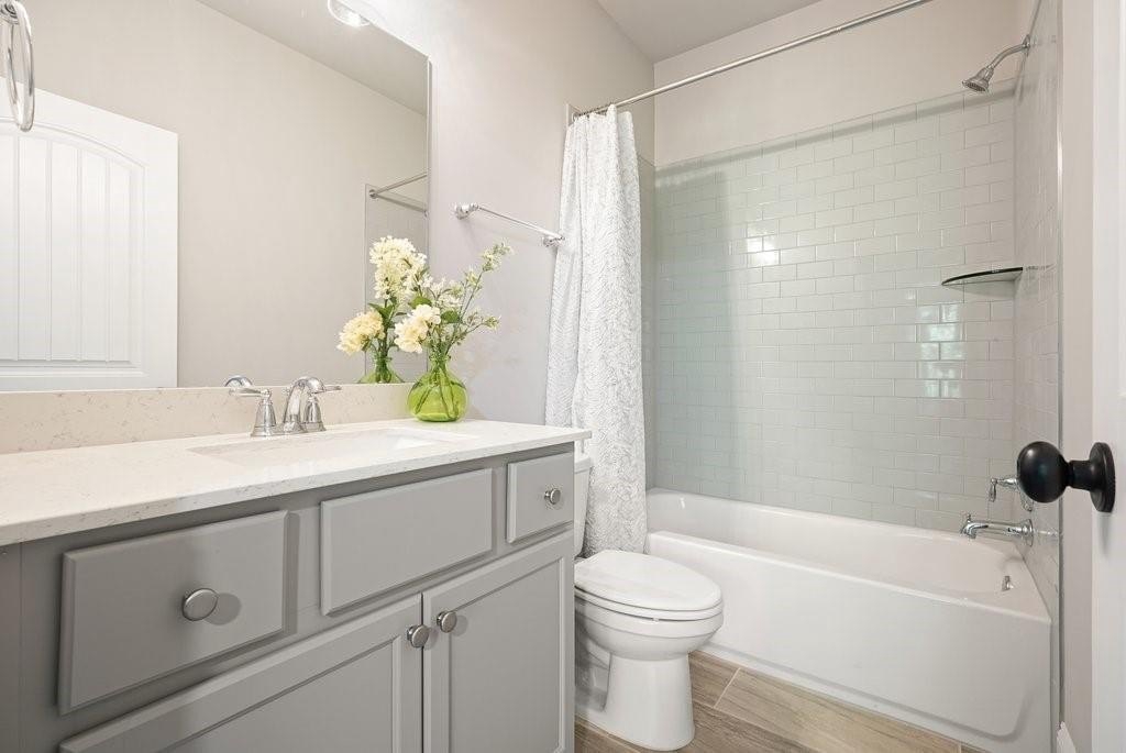 The upper level you’ll find 4 oversized bedrooms -2 full bathrooms; One of the bedrooms doubles as a teen suite. Enjoy the convenience of a beautifully designed hall bath connecting three of the bedrooms The loft/media space has been converted to a bedroom. A perfect space for a media room, office or play room!