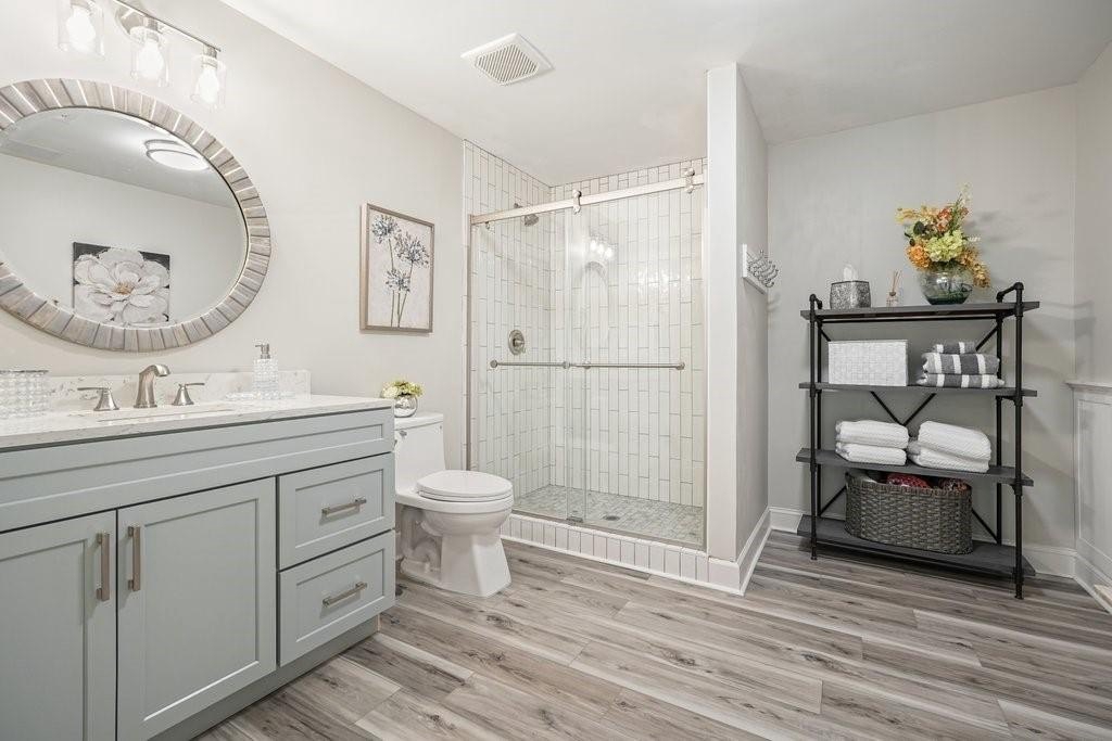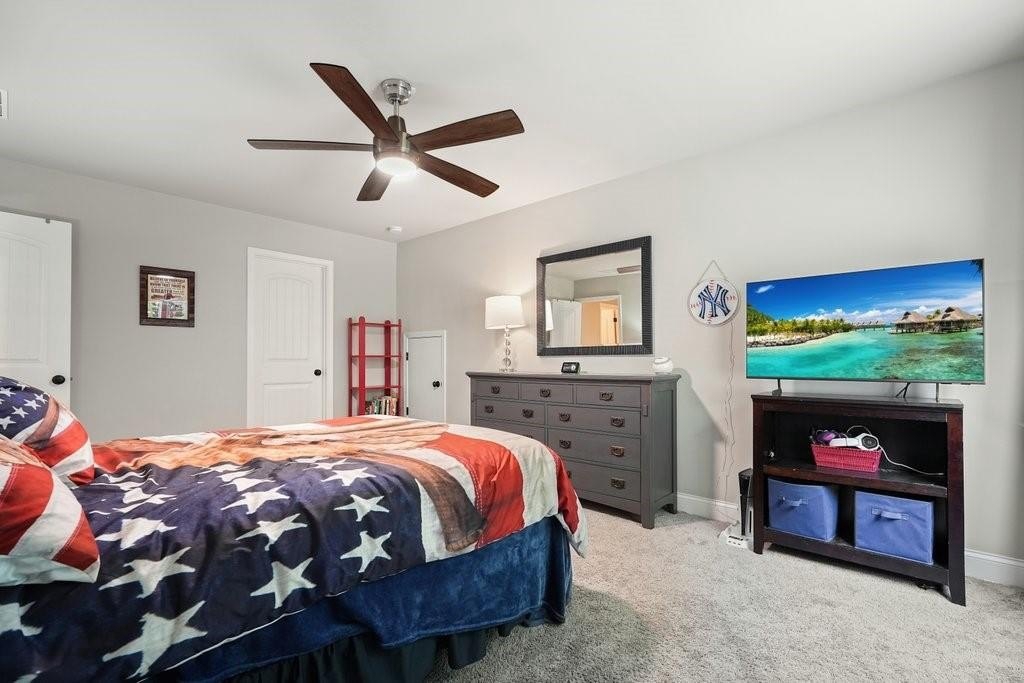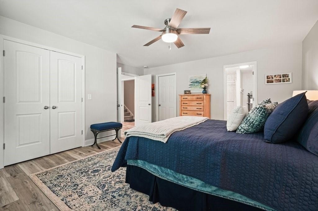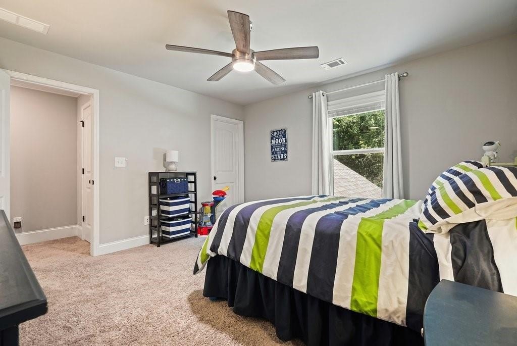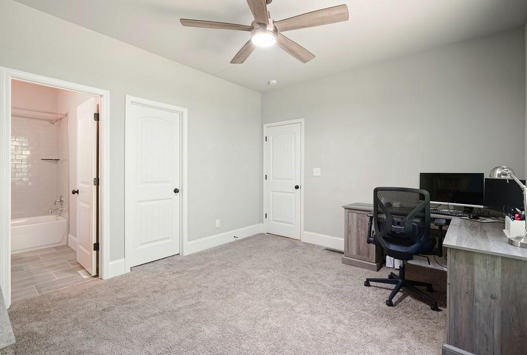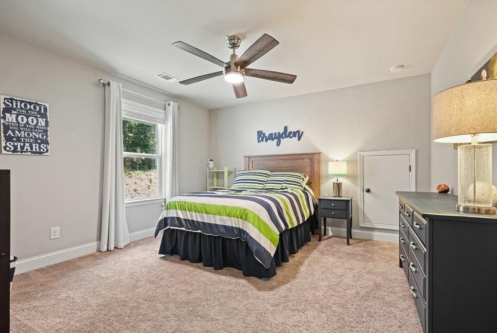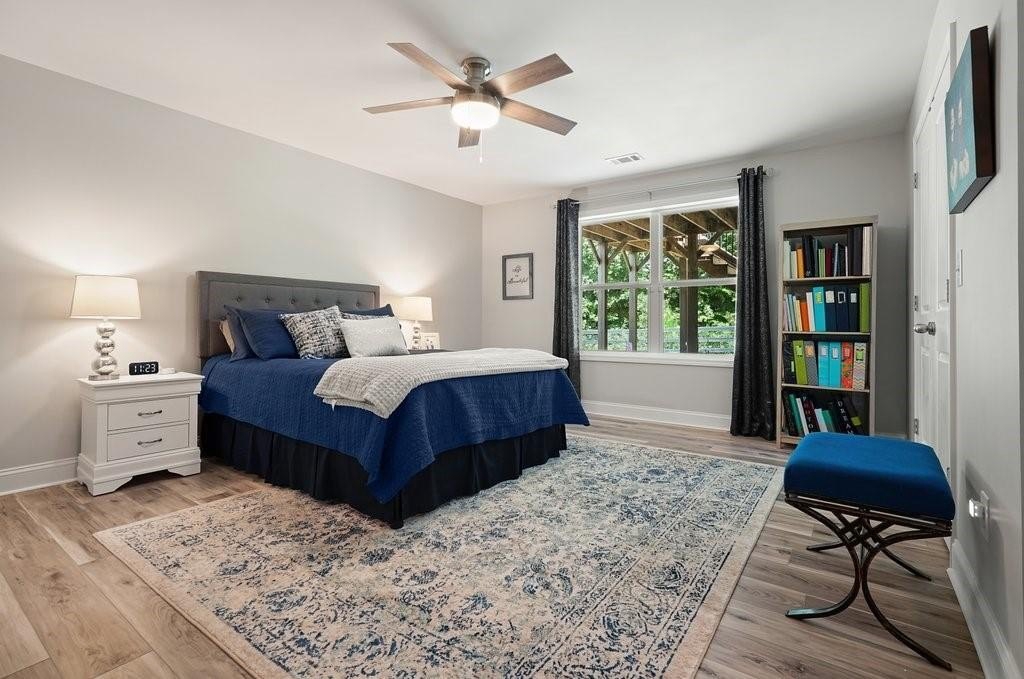 A secondary bedroom located on the main level. Perfect for guests or multigenerational living. Complete with en-suite bath and large closet.