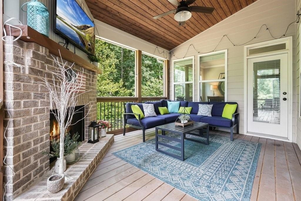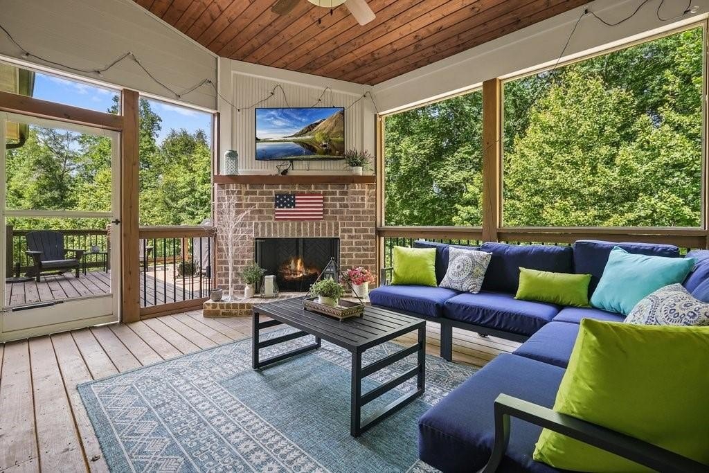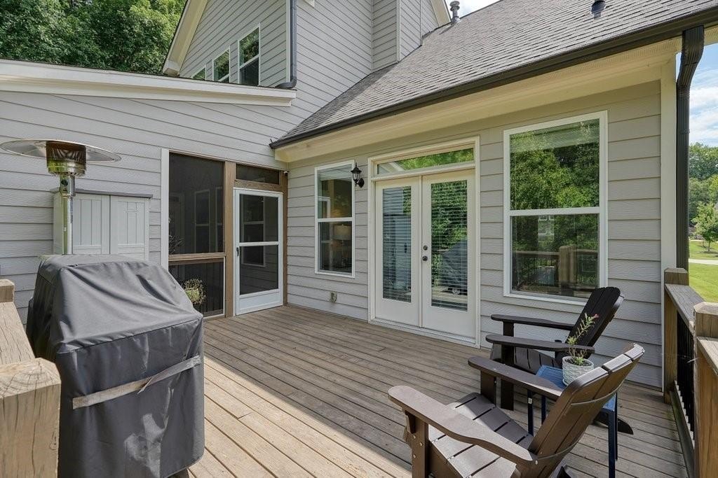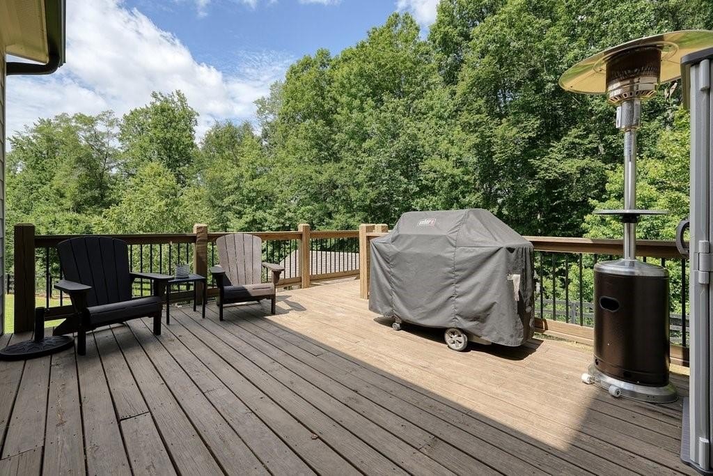 Adjoining the breakfast nook is a charming covered screened in deck. Featuring a gas fireplace to cozy up to. Step out into your secluded backyard featuring wooded views. A separate grilling porch off the main level adds convenience and functional entertaining. The ultimate setting for year-round entertaining and relaxation.