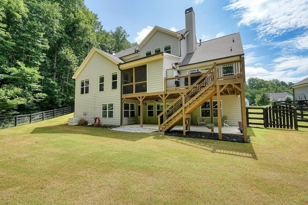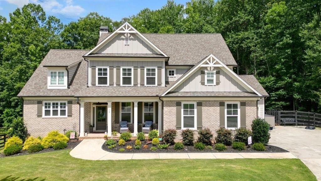 Welcome to, 117 Silky Sullivan Way. A tree lined street of beautiful upscaled farmhouse styled homes. Nestled on the perfect cul-de-sac lot surrounded by picturesque wooded views. Featuring 7 bedrooms 5.5 bathrooms and three car garage. Designed for everyday comfort and effortless entertaining, the home strikes a perfect balance between serenity and convenience-located just minutes from Alpharetta and Milton. The exterior is finished in a charming combination of brick and concrete fiber siding, with timeless farmhouse character.