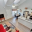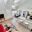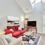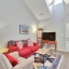 Step inside through a level front walkway into a luminous open-concept layout, where soaring ceilings and skylights flood the living room with natural light, creating a warm and inviting ambiance. Luxury vinyl flooring installed in 2021 flows seamlessly throughout the main living areas, adding an elegant foundation to the thoughtful design. The bright, airy kitchen features updated stainless steel appliances (2022), abundant cabinetry, and a cozy breakfast nook—perfect for morning coffee or hosting with style.