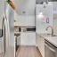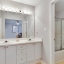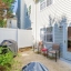 Both bedrooms function as private suites, each offering walk-in closets and spa-inspired en-suite bathrooms. The main-level suite is a true sanctuary, complete with a dual vanity and private access to the tranquil, fenced-in patio—an ideal setting for alfresco dining, quiet relaxation, or elegant entertaining. Custom window treatments, including premium room-darkening blinds in both bedrooms, further elevate the home’s tailored interior.
