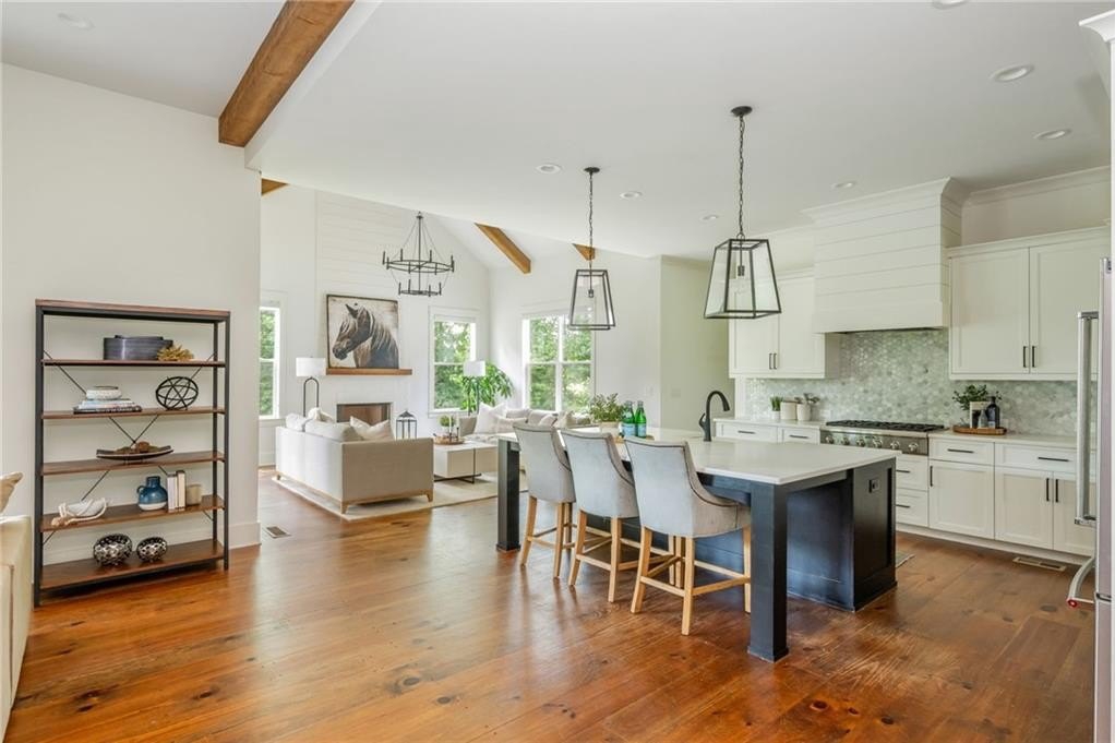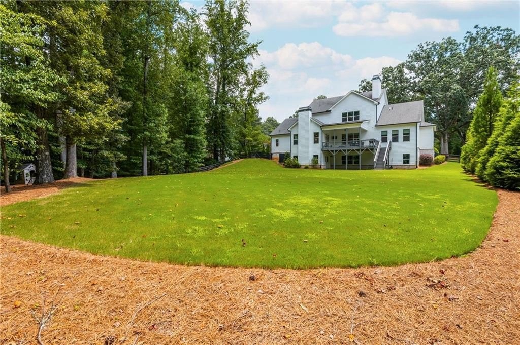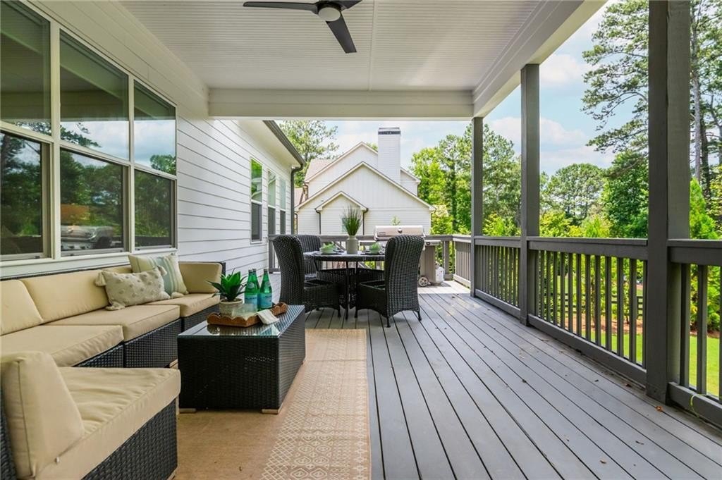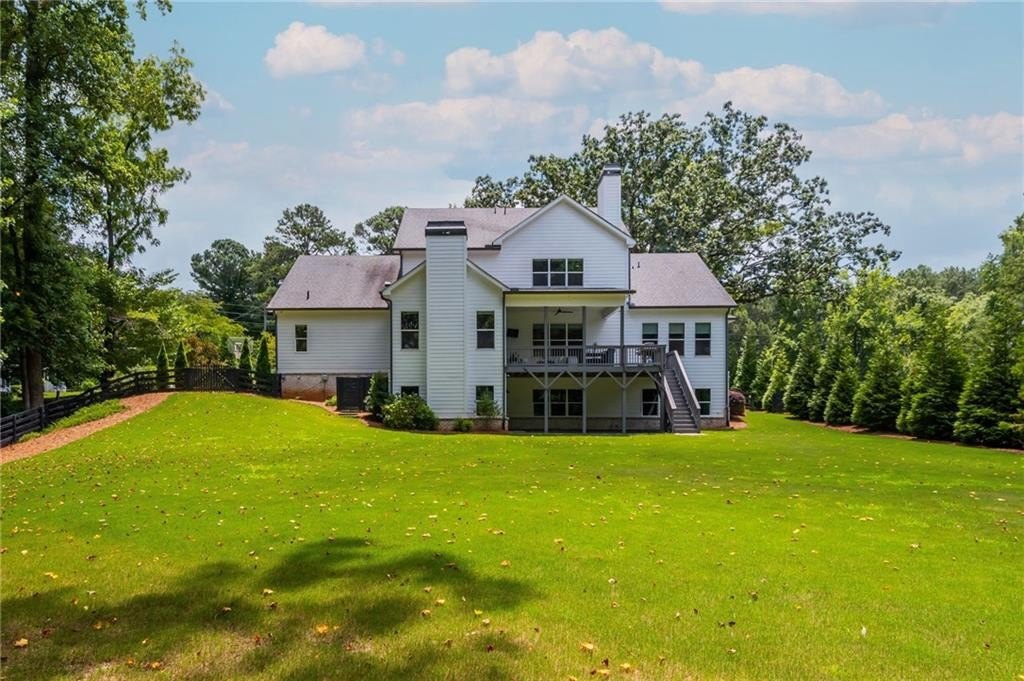 Welcome to 15430 Birmingham Highway! This is an exceptional opportunity to own a custom-built, gated home in the highly sought-after Birmingham Falls/Northwestern/Milton school district, all for under $1.5 million. Set on a beautifully landscaped property with over $100K in recent outdoor enhancements, this 5-bedroom, 5.5-bath home offers timeless design, thoughtful upgrades, and abundant living space inside and out. A charming front porch overlooks the lush front yard and leads into a warm, inviting interior where gorgeous heart of pine floors and beamed ceilings capture your heart. The open-concept layout features a spacious family room with fireplace and custom built-ins, elegant separate dining room with butler’s pantry, and a large chef’s kitchen with 6-burner gas range, double ovens, large walk-in pantry, built-in microwave, and a generous island with seating for six. Adjacent is a cozy fireside keeping room, perfect for relaxed gatherings or everyday living. Highly desirable primary suite on the main level includes vaulted, beamed ceilings, double vanities, a soaking tub, oversized walk-in shower, and a custom walk-in closet. A main-level guest suite offers flexibility for visitors, multigenerational living, or is perfect as an office. Tucked away you will also find a well-designed mudroom and laundry room with a sink and storage. Upstairs are three additional bedrooms, two full baths, a large bonus/media room, and even more finished space (Approx. 513 sq. ft.) thanks to the newly finished bonus room ($60K) above the garage, complete with 3 storage areas. The unfinished daylight basement includes a recently installed full bathroom and HVAC system with duct work to all areas. The basement is also partially wired with electrical outlets and low voltage for TV and internet. The fully fenced flat backyard is a true highlight with fresh sod, trees, and irrigation. Enjoy views of the well manicured lawn and mature trees surrounding the property from the expansive deck. The 3-car garage is equipped with a 240-volt outlet for electric car charger. Other notable upgrades include a new upper-level HVAC system, security gate with internet control, whole home external security cameras, home automation lighting control, uNiFi access points on all levels, irrigation system throughout the property, landscape lighting, and a separate parking pad. This is a prime opportunity to own a move-in ready, thoughtfully maintained property with high-end finishes, modern conveniences, and room to grow all in one of Milton’s most coveted school zones within close proximity to popular Scottsdale Farms, 7 Acre Barn & Grille, Publix, and more!