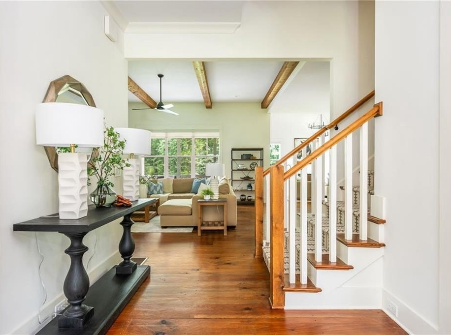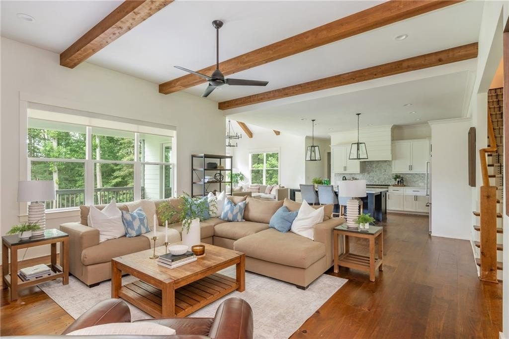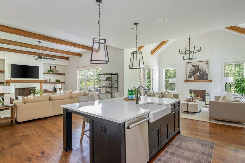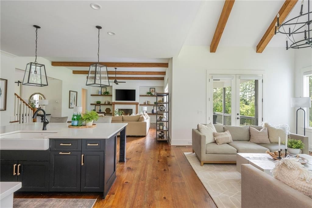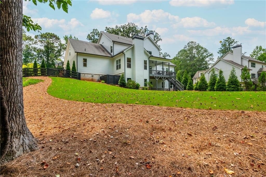 Welcome to 15430 Birmingham Highway! This is an exceptional opportunity to own a custom-built, gated home in the highly sought-after Birmingham Falls/Northwestern/Milton school district, all for under $1.5 million. Set on a beautifully landscaped property with over $100K in recent outdoor enhancements, this 5-bedroom, 5.5-bath home offers timeless design, thoughtful upgrades, and abundant living space inside and out. A charming front porch overlooks the lush front yard and leads into a warm, inviting interior where gorgeous heart of pine floors and beamed ceilings capture your heart. The open-concept layout features a spacious family room with fireplace and custom built-ins, elegant separate dining room with butler’s pantry, and a large chef’s kitchen with 6-burner gas range, double ovens, large walk-in pantry, built-in microwave, and a generous island with seating for six. Adjacent is a cozy fireside keeping room, perfect for relaxed gatherings or everyday living. Highly desirable primary suite on the main level includes vaulted, beamed ceilings, double vanities, a soaking tub, oversized walk-in shower, and a custom walk-in closet. A main-level guest suite offers flexibility for visitors, multigenerational living, or is perfect as an office. Tucked away you will also find a well-designed mudroom and laundry room with a sink and storage. Upstairs are three additional bedrooms, two full baths, a large bonus/media room, and even more finished space (Approx. 513 sq. ft.) thanks to the newly finished bonus room ($60K) above the garage, complete with 3 storage areas. The unfinished daylight basement includes a recently installed full bathroom and HVAC system with duct work to all areas. The basement is also partially wired with electrical outlets and low voltage for TV and internet. The fully fenced flat backyard is a true highlight with fresh sod, trees, and irrigation. Enjoy views of the well manicured lawn and mature trees surrounding the property from the expansive deck. The 3-car garage is equipped with a 240-volt outlet for electric car charger. Other notable upgrades include a new upper-level HVAC system, security gate with internet control, whole home external security cameras, home automation lighting control, uNiFi access points on all levels, irrigation system throughout the property, landscape lighting, and a separate parking pad. This is a prime opportunity to own a move-in ready, thoughtfully maintained property with high-end finishes, modern conveniences, and room to grow all in one of Milton’s most coveted school zones within close proximity to popular Scottsdale Farms, 7 Acre Barn & Grille, Publix, and more!