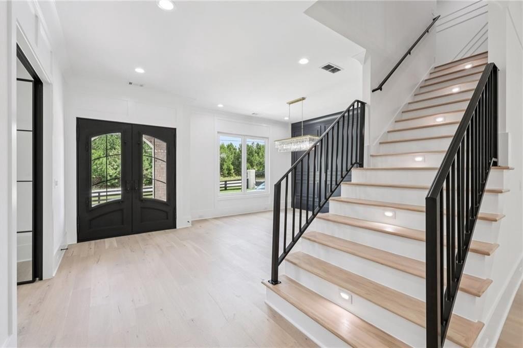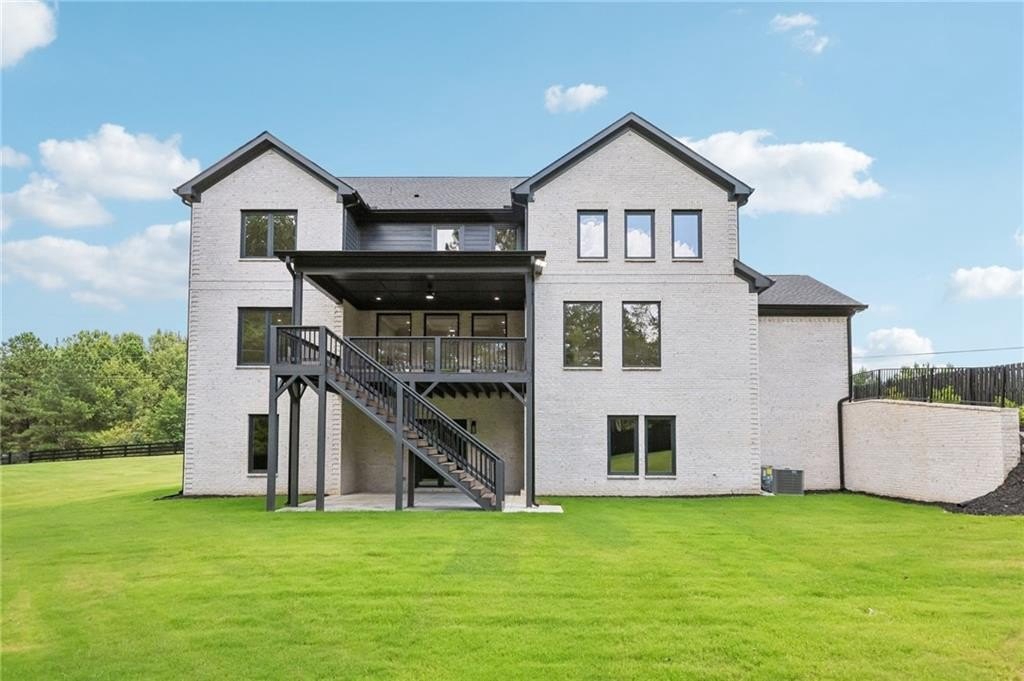 MOVE IN READY! Welcome to this exceptional custom-built residence offering timeless elegance, modern luxury, and room to grow—perfectly situated on a privately gated, fully fenced 0.74-acre level lot in a prime location just minutes from HWY 316, fine dining, and shopping. Crafted with impeccable attention to detail, this home showcases 10-foot ceilings throughout, custom trim work, designer tile finishes, and hardwood flooring that flows beautifully from room to room. The main level features a dramatic grand foyer, a formal dining room, and a private office with custom built-ins—ideal for working from home in style. Guests or extended family will enjoy the spacious in-law suite with its own private spa-style en suite bathroom. Every element of this home reflects thoughtful craftsmanship, with upscale enhancements such as custom European-style windows that bathe the interiors in natural light, advanced sound-controlled insulation, a high-efficiency tankless water heater, and a professionally designed irrigation system that ensures lush landscaping with ease. At the heart of the home lies the gourmet chef’s kitchen, complete with high-end gas appliances, custom cabinetry, and a striking quartz waterfall island. This space flows seamlessly into the inviting living room and extends outdoors to an expansive covered porch, ideal for entertaining or enjoying the serene surroundings with future pool potential. Upstairs, retreat to the oversized primary suite, a true sanctuary featuring a spa-inspired en suite with a soaking tub, oversized frameless shower, and a custom walk-in closet. Two additional bedrooms each offer private baths, while a second living room with built-ins and fireplace, a flex room, and an additional full bath provide the perfect blend of comfort and versatility. At the foundation of it all is a full daylight unfinished basement, already stubbed and ready for your dream expansion. Whether you envision a home theater, gym, wine cellar, or guest suite, the possibilities are limitless. This one-of-a-kind estate embodies luxurious design, quality finishes, and long-term flexibility—all in an ideal location close to everything yet quietly tucked away in your private oasis