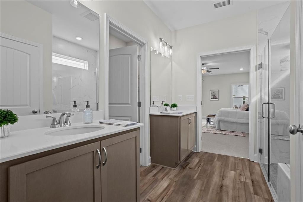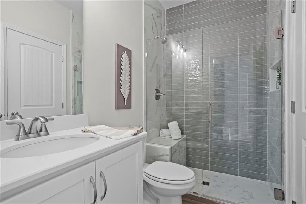 New construction and move-in ready! Situated on a spacious corner lot, this rare and highly desirable step-less ranch-style floor plan offers 3 bedrooms, 3 full bathrooms, with lots of windows and natural light. The main level features luxury vinyl plank flooring, a spacious living room with a stone fireplace, and an open-concept kitchen with stainless steel appliances, granite countertops, an oversized island, and a walk-in pantry. The primary suite is located on the main level and offers two walk-in closets, including one with direct access to the laundry room for exceptional convenience. The primary bath includes double vanities, a stepless tiled shower with glass doors and built-in seat, and raised-height toilets. Also on the main are a secondary bedroom and full bathroom. Upstairs, you'll find an oversized third bedroom, a full bathroom, and an open flex space ideal for a home office, study, or hobby area. A covered back patio provides a peaceful space for outdoor relaxation, while the two-car garage offers additional storage. Located in Stratford at NatureWalk, a premier active adult community, residents will enjoy an exclusive adult-only clubhouse and pool, along with full access to the award-winning Seven Hills amenities including tennis and pickleball courts, basketball, a newly renovated main clubhouse, a full-time activities director, a dog park, scenic nature trails, and proximity to top-rated golf courses. Be sure to ask about the Seller's $10,000 contribution toward Buyer-paid closing costs!
